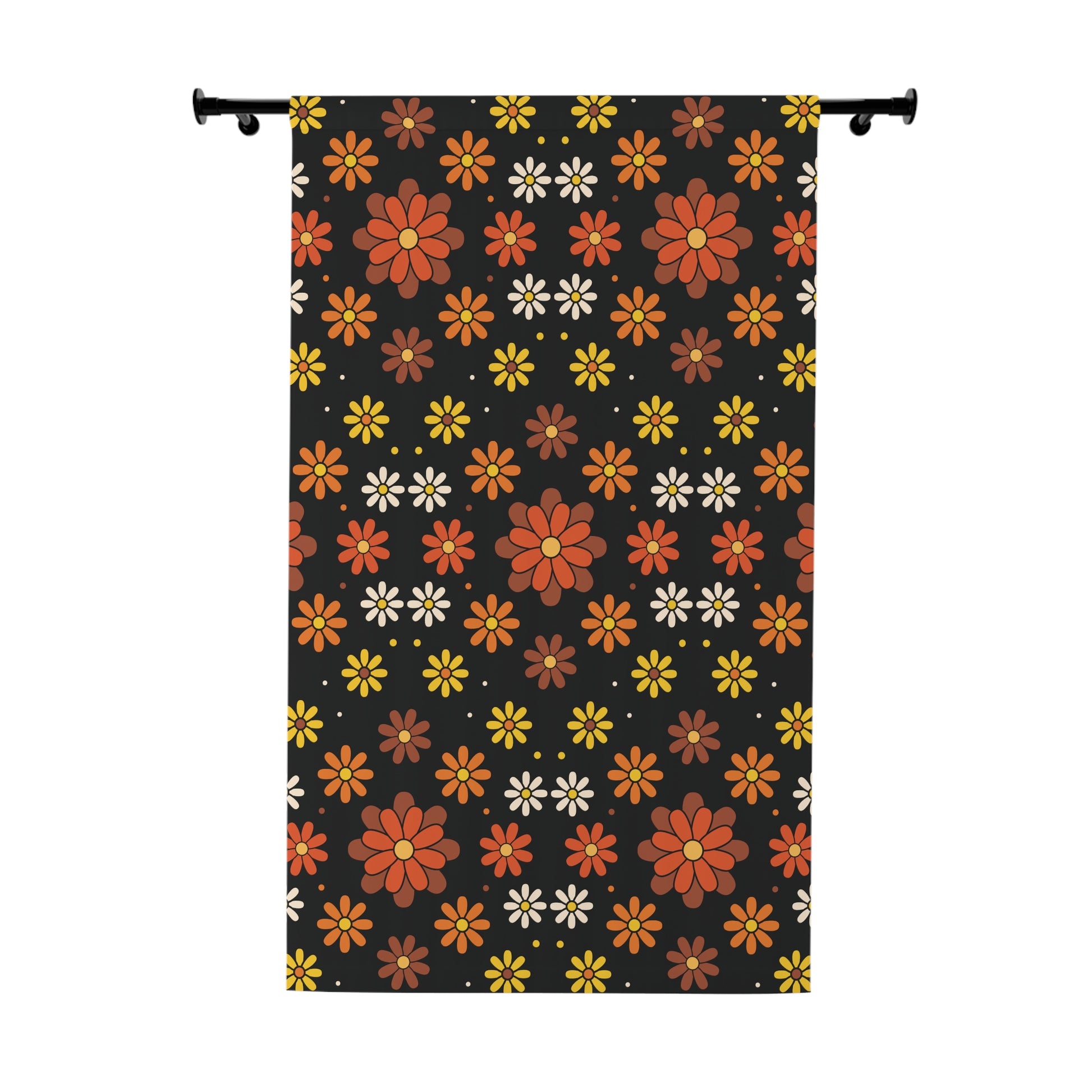 Retro 60s 70s Groovy Mod Daisy Floral Mid Century Black, Brown & Orange Blackout Window Curtain