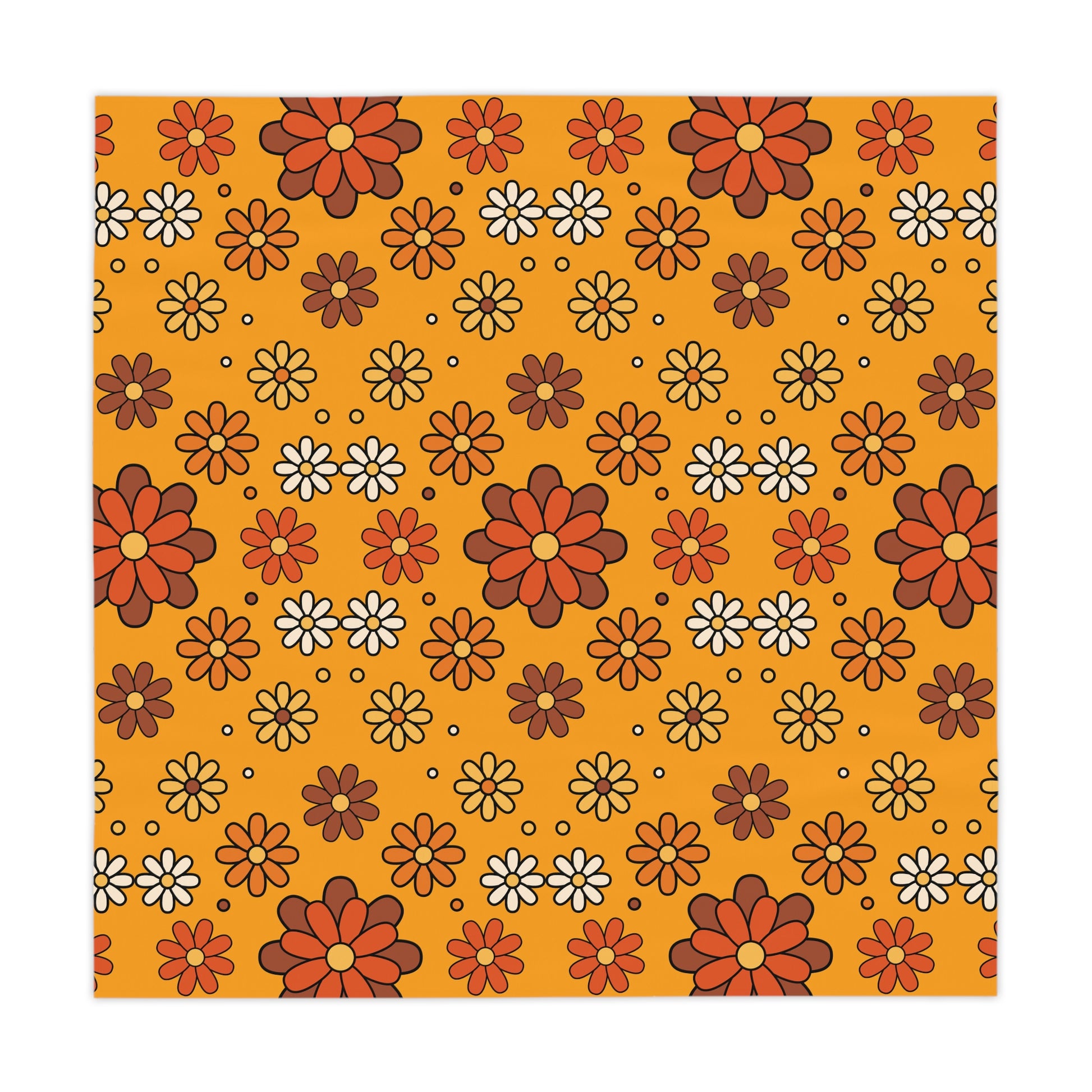 Retro 60s 70s Groovy Mod Daisy Mid Century Modern Brown, Orange & Mustard Tablecloth