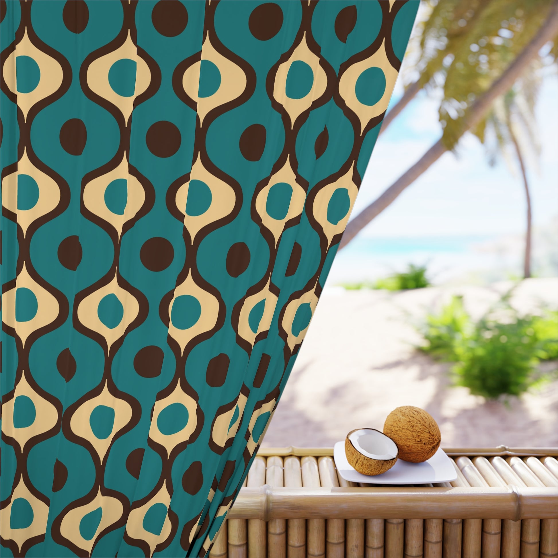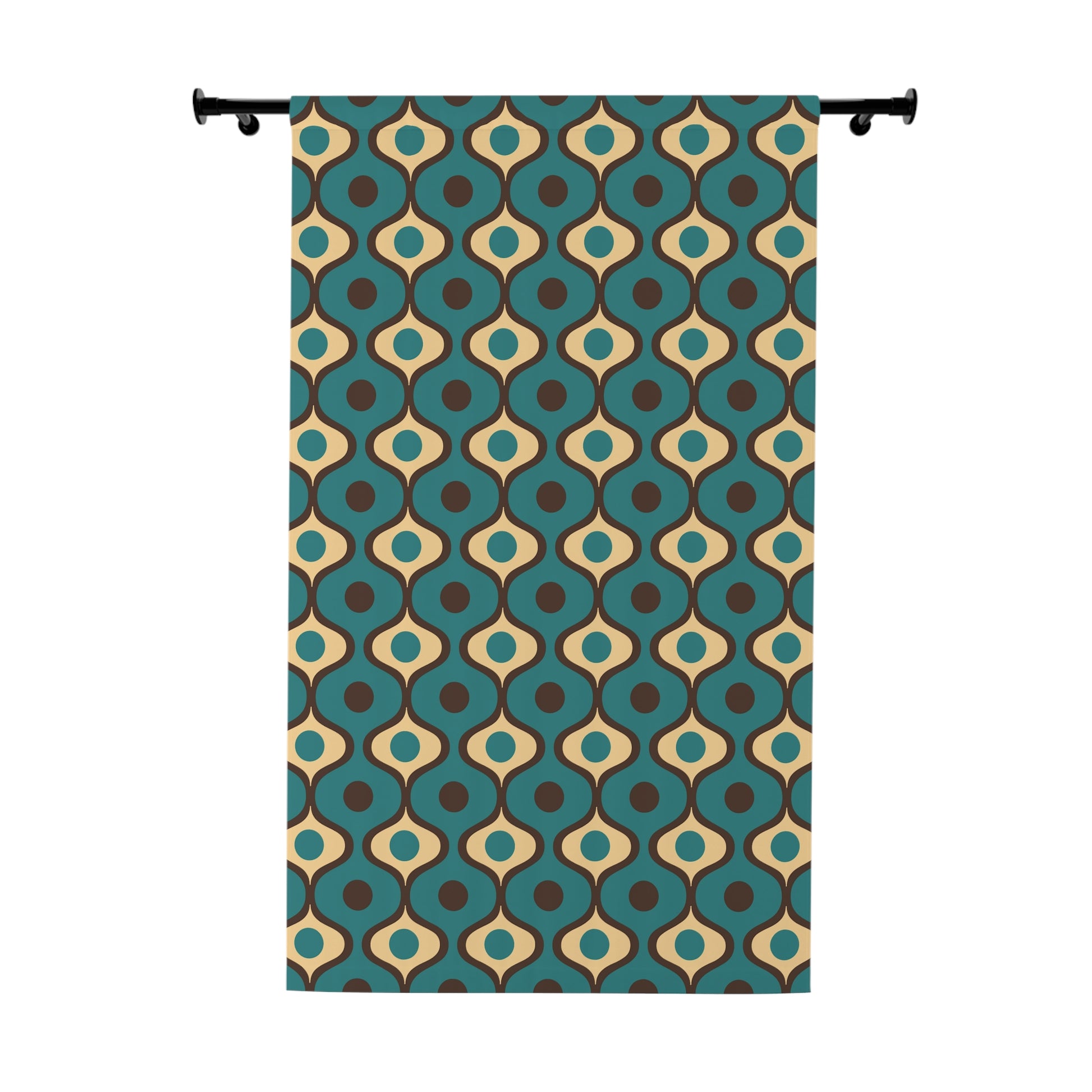 Retro 60s 70s Mid Century Mod Funky Geo Blue, Cream & Brown Blackout Window Curtain