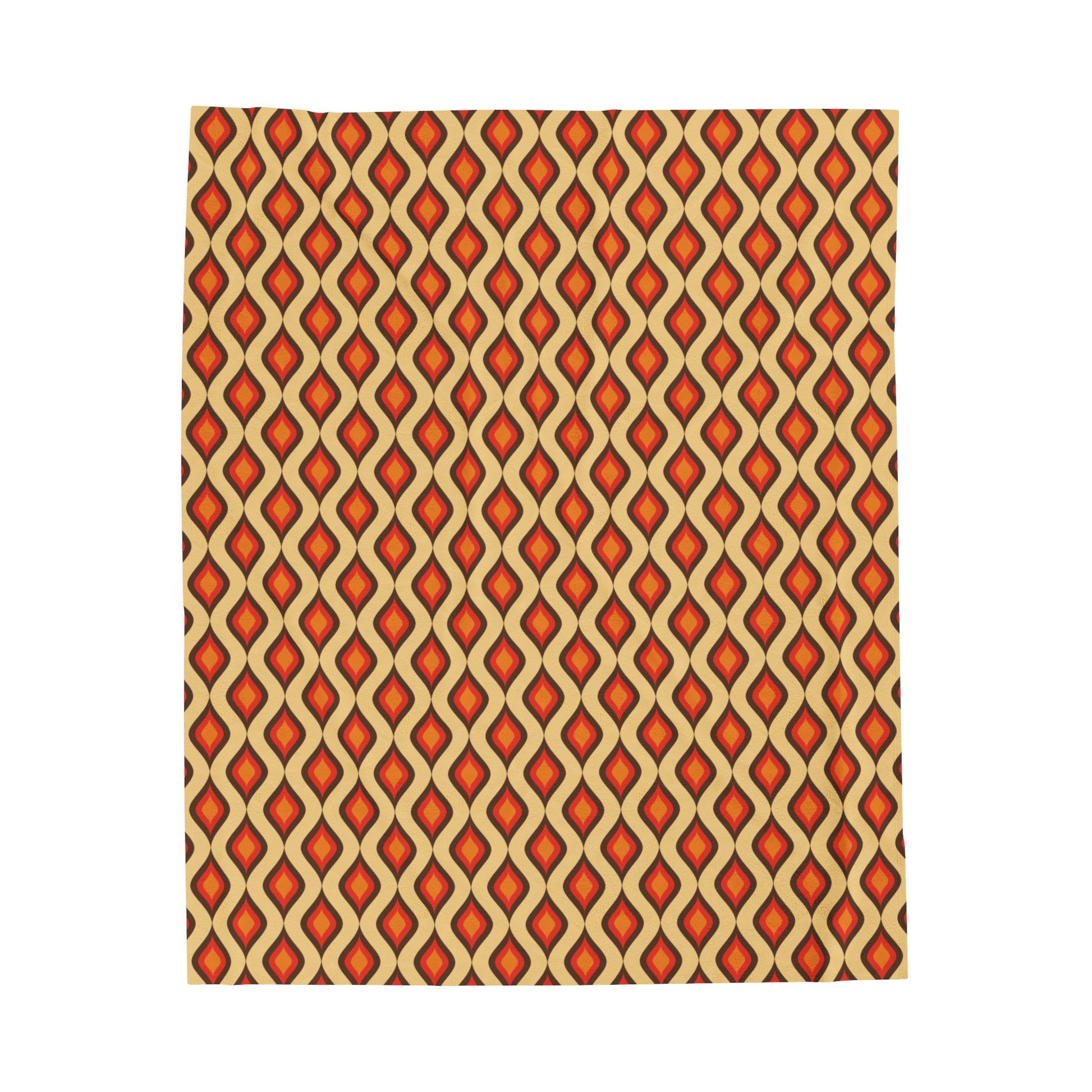 Retro 60s 70s Mid Century Mod Funky Geo Mustard, Orange & Brown Lightweight Velveteen Blanket
