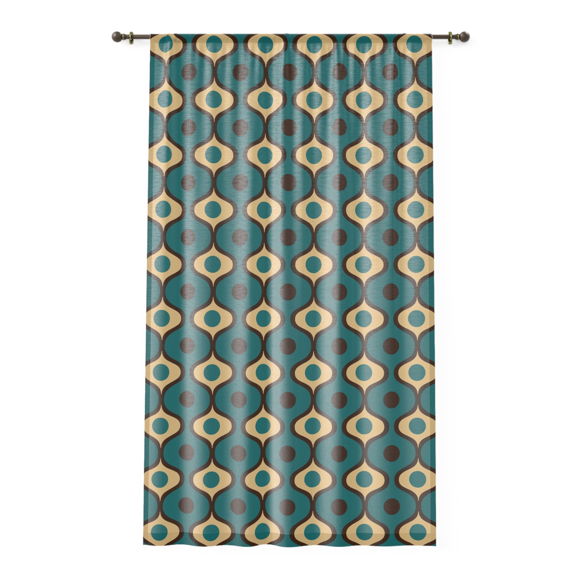 This sheer window curtain features a funky 60's and 70's mod design in a fab retro blue & brown color palette, that adds style to your room, while softening the light coming through the window. Changing your curtains is one of the most cost effective ways to make a dramatic impact on the look of your room! These curtains are sheer which means they are lightweight and mostly see-through.