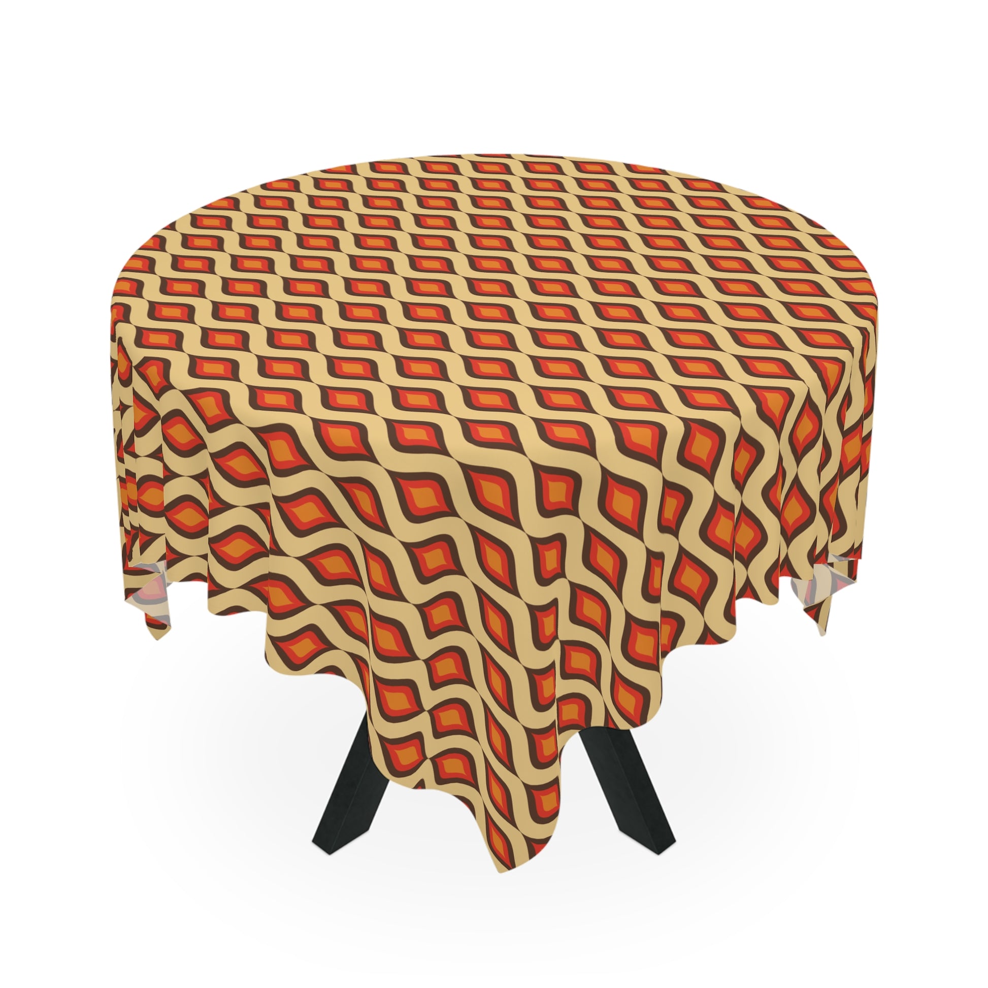 Dress your table with our funky mid century mod tablecloth for some retro style! This tablecloth features a geometric design in a color palette straight out of the 60's and 70's!