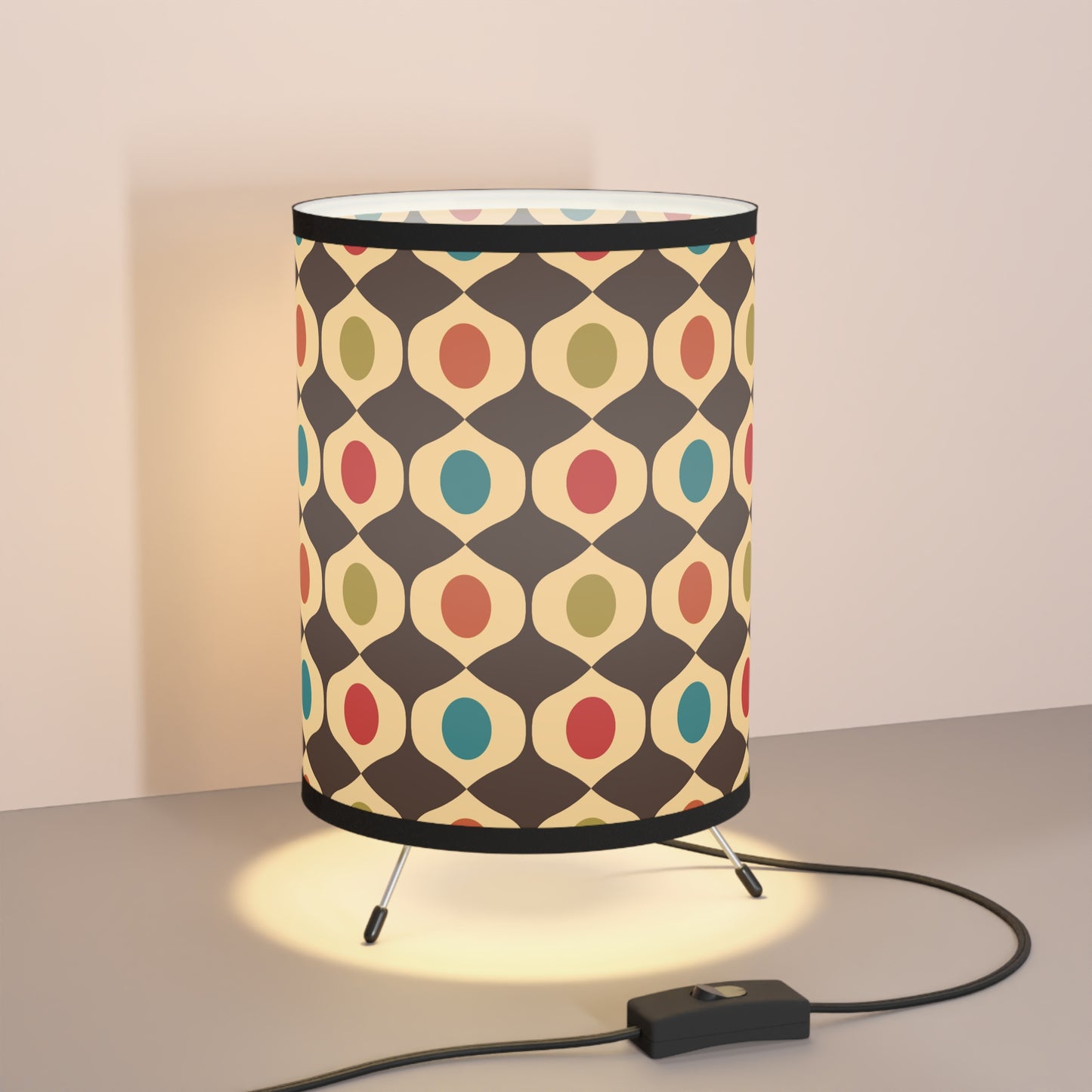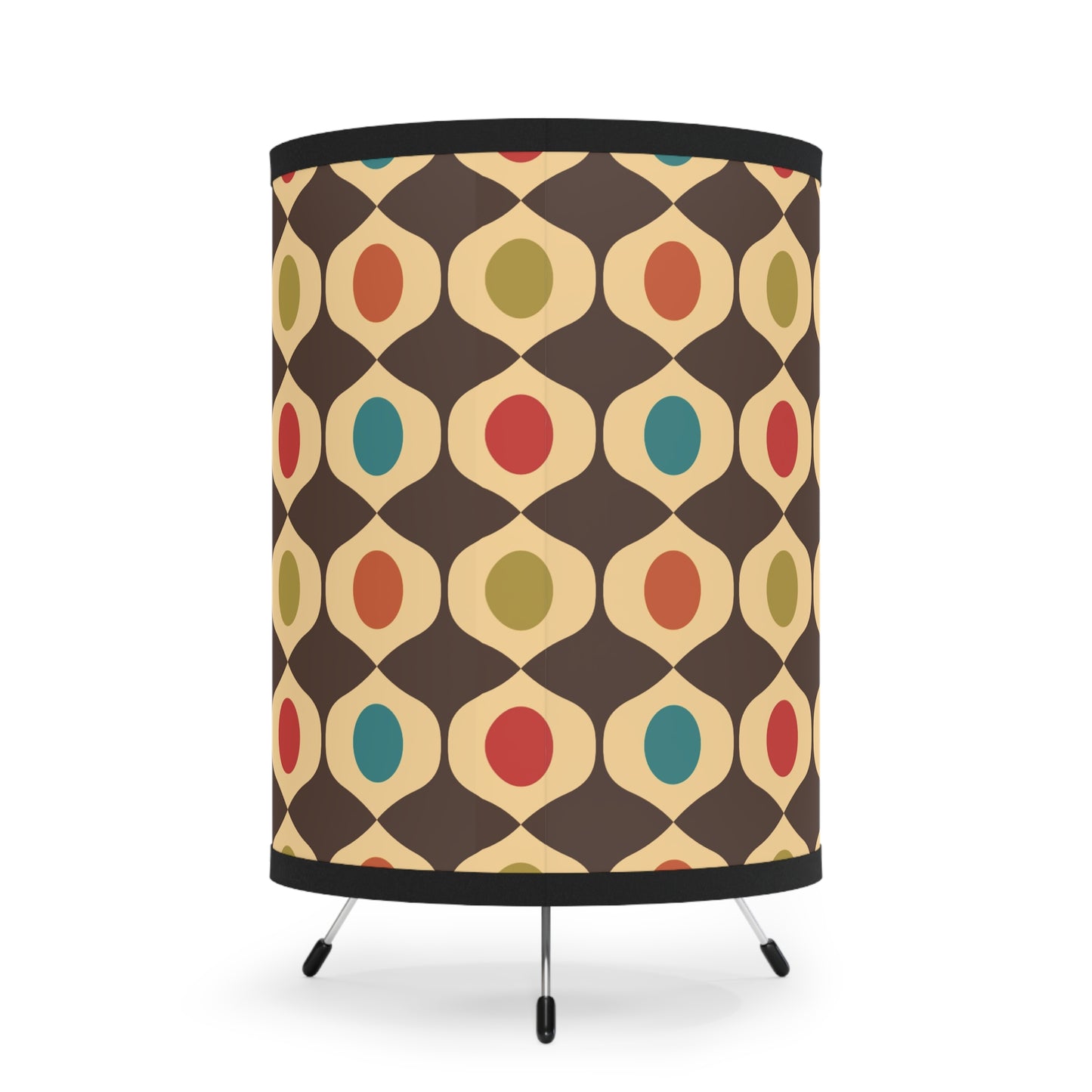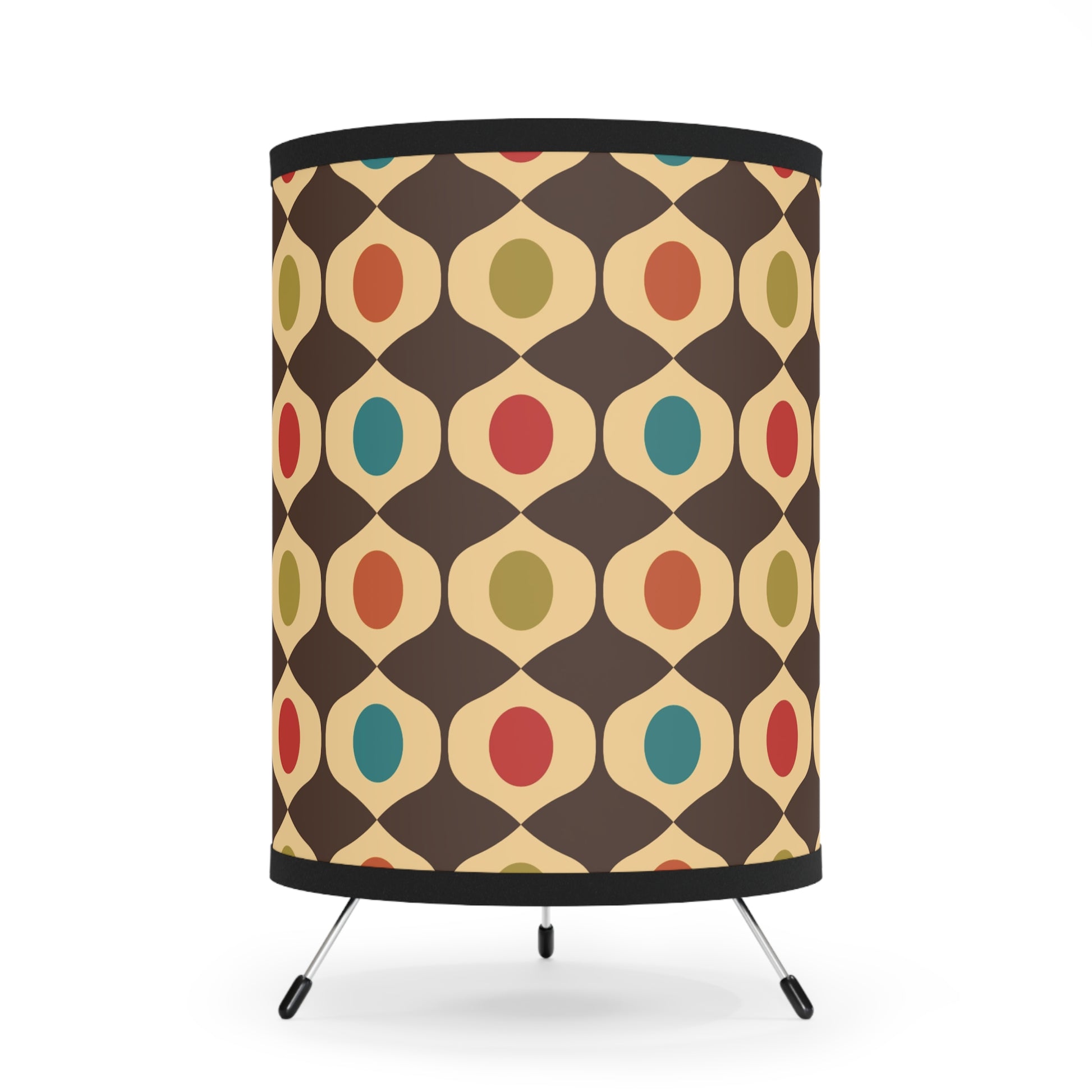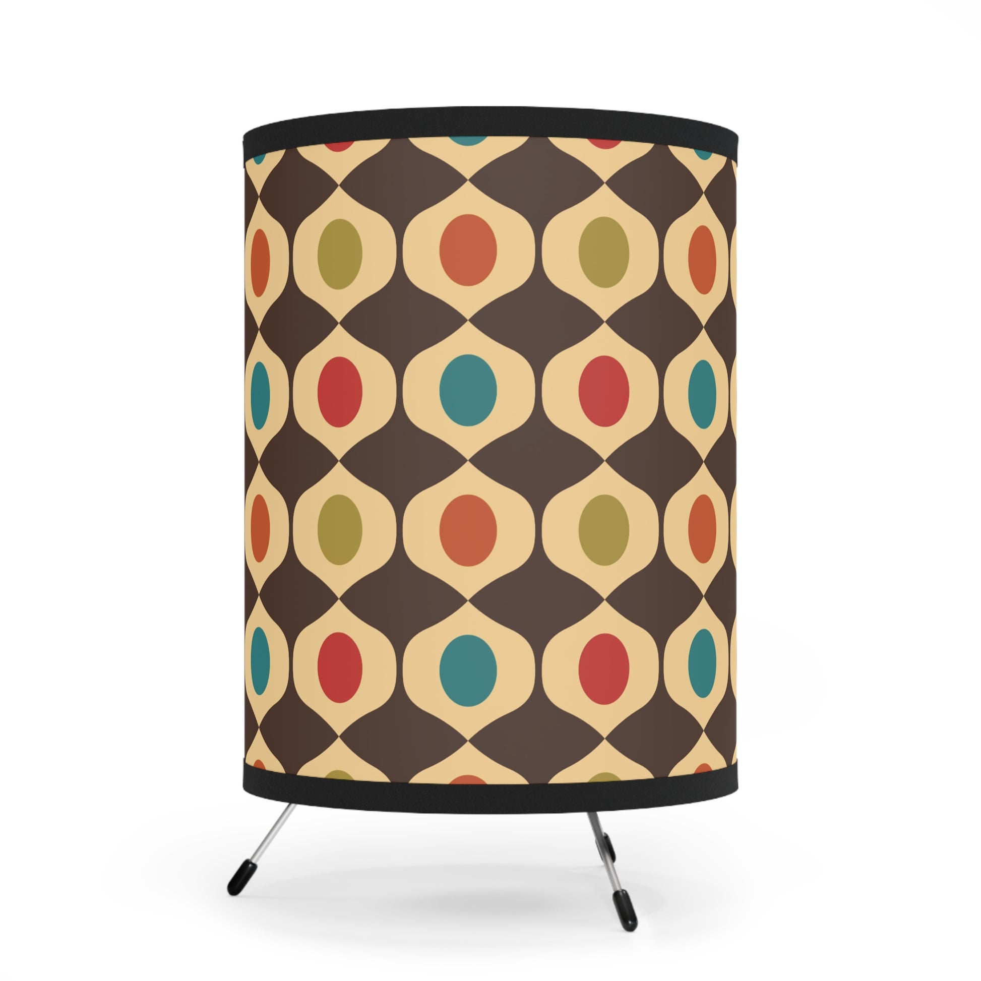 Our retro inspired tabletop tripod lamp blends the undeniable charm of mid century design with modern functionality. The colorful 60s and 70s geometric design combined with the soft, warm glow of the light is perfect for adding a retro vibe to any space!