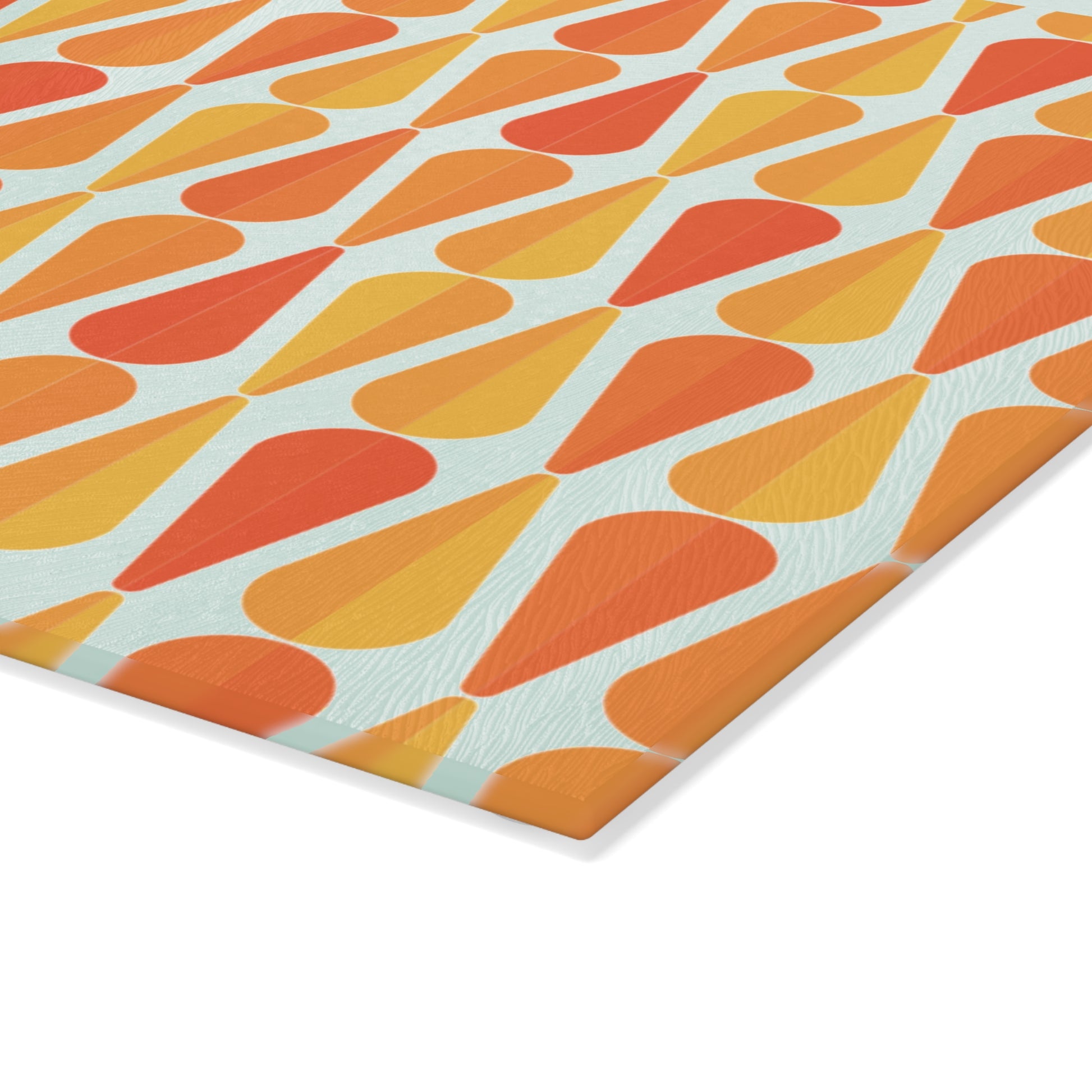 Retro 60s 70s Mid Century Modern Geometric Orange and Yellow Glass Cutting Board