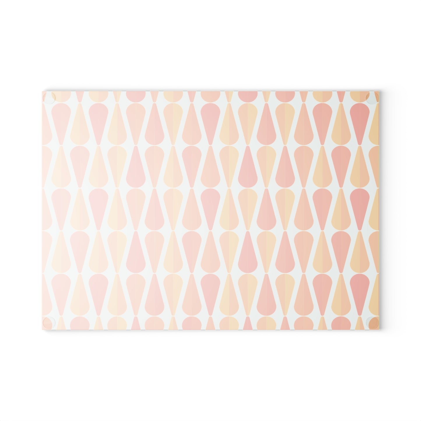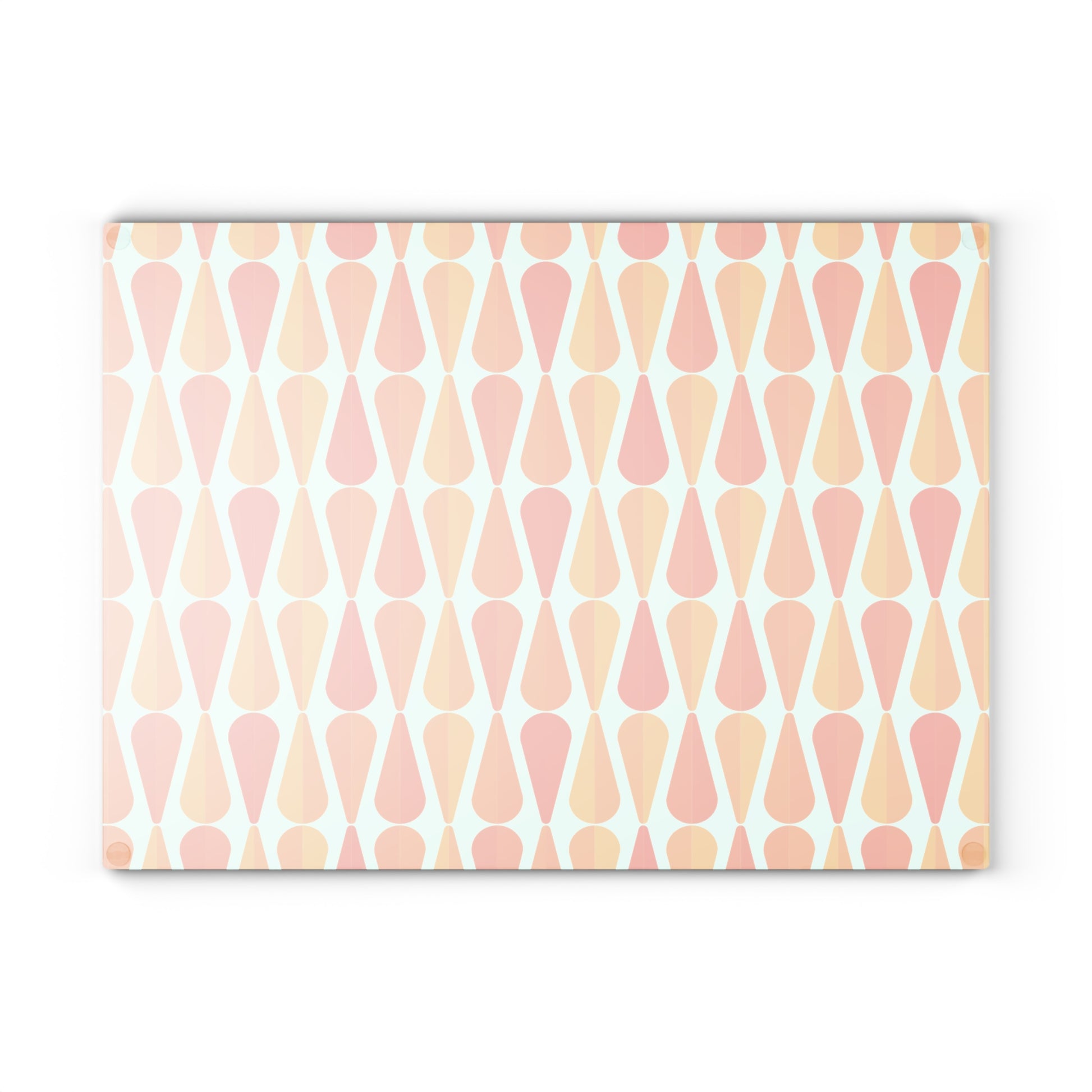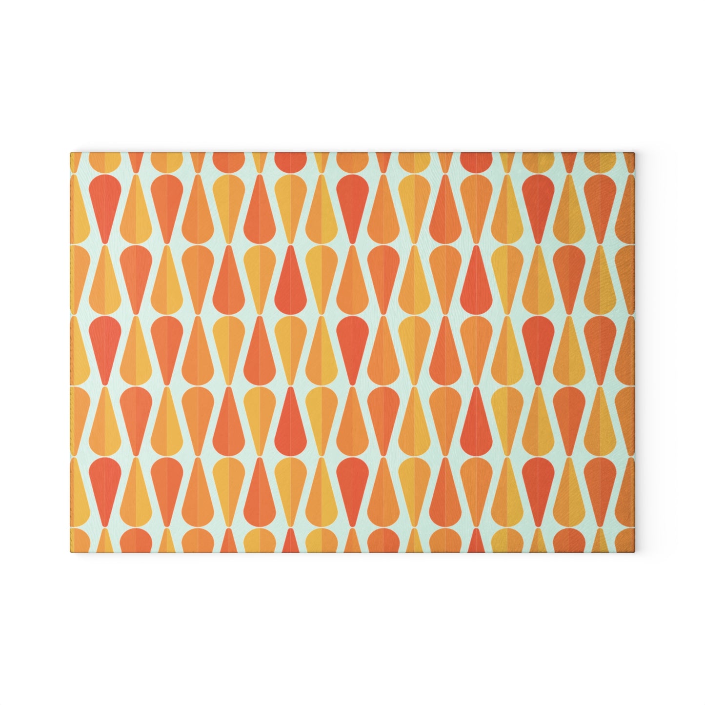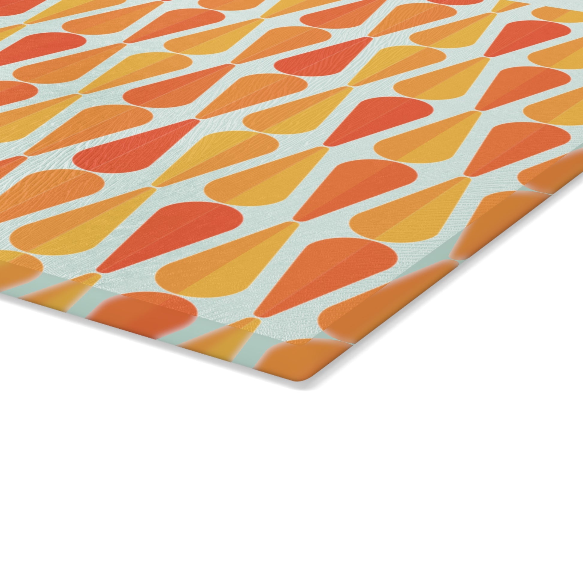 Bring some cheery 60s and 70s vibes to your kitchen, with our mid century modern inspired glass cutting board, featuring a retro geometric design in a fun mcm color palette of orange and yellow!