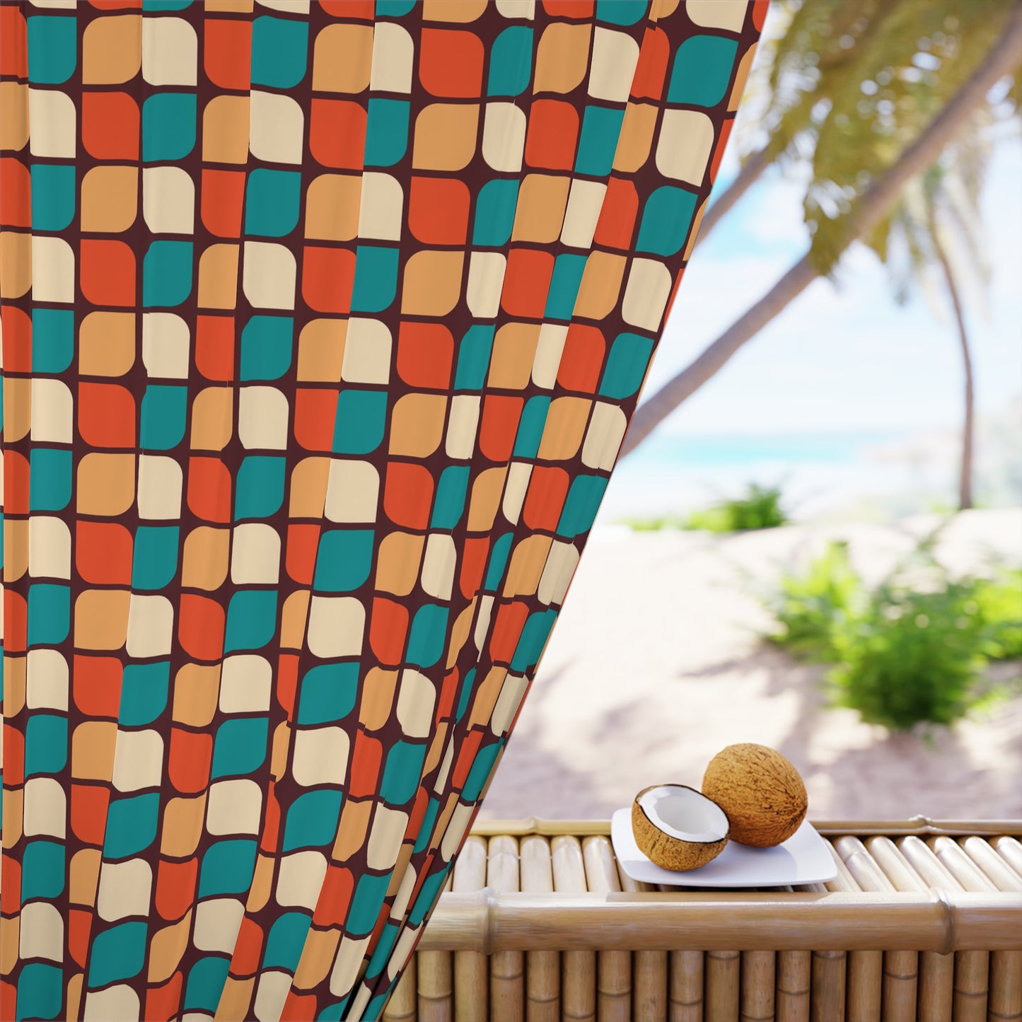 Retro 60s 70s Mid Century Modern Multicolor Blackout Window Curtain Panel