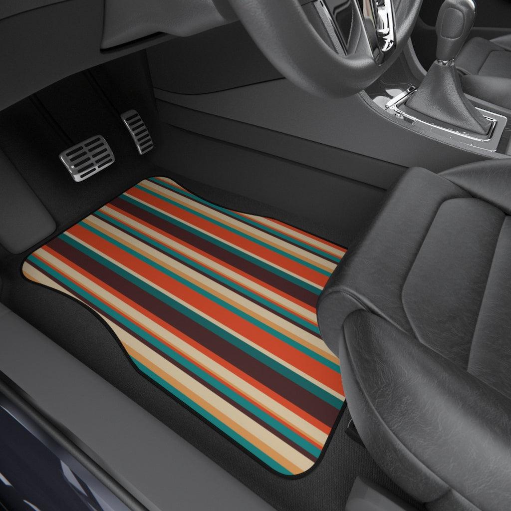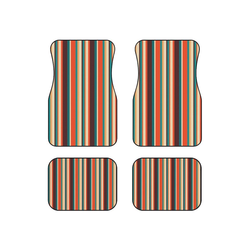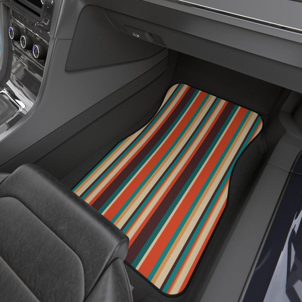 Retro 60s 70s Mid Century Stripes Brown, Orange & Blue Car Mats (Set of 4)