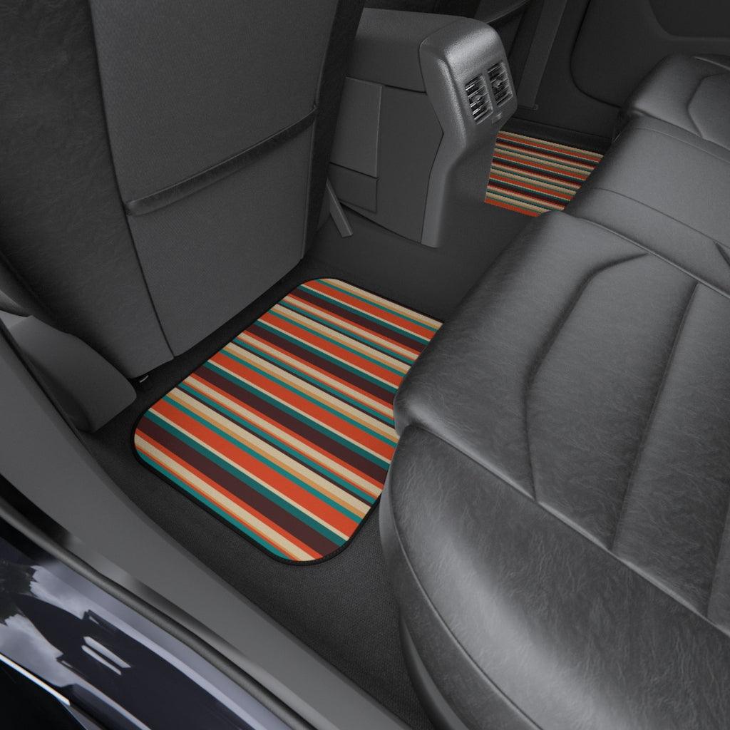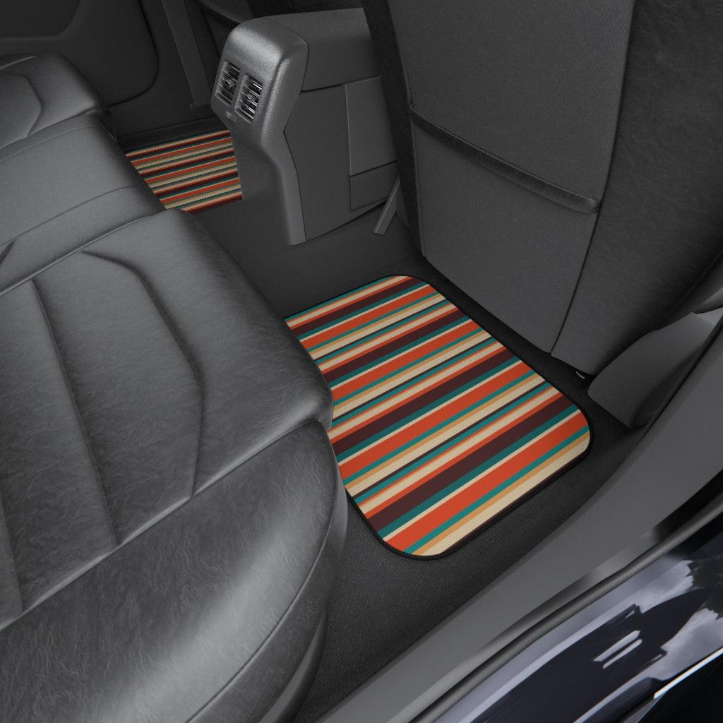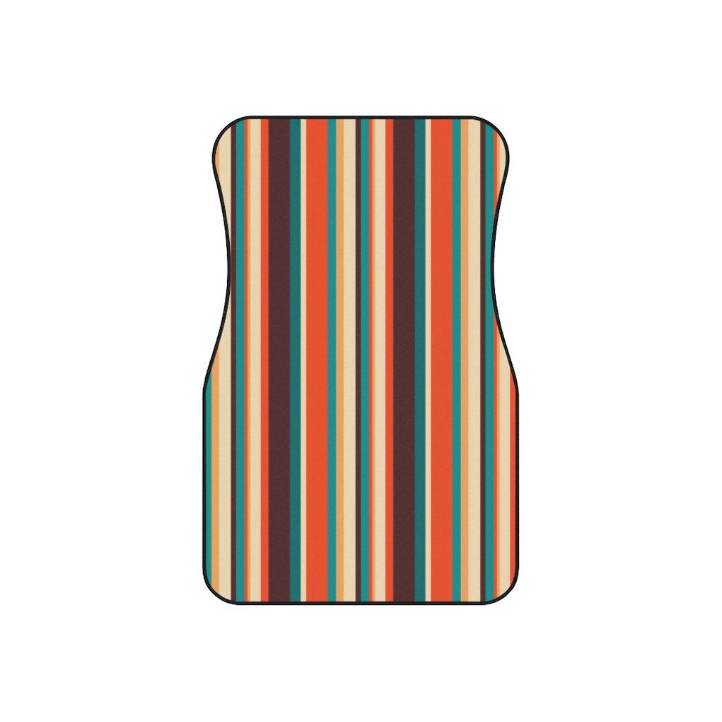 Retro 60s 70s Mid Century Stripes Brown, Orange & Blue Car Mats (Set of 4)