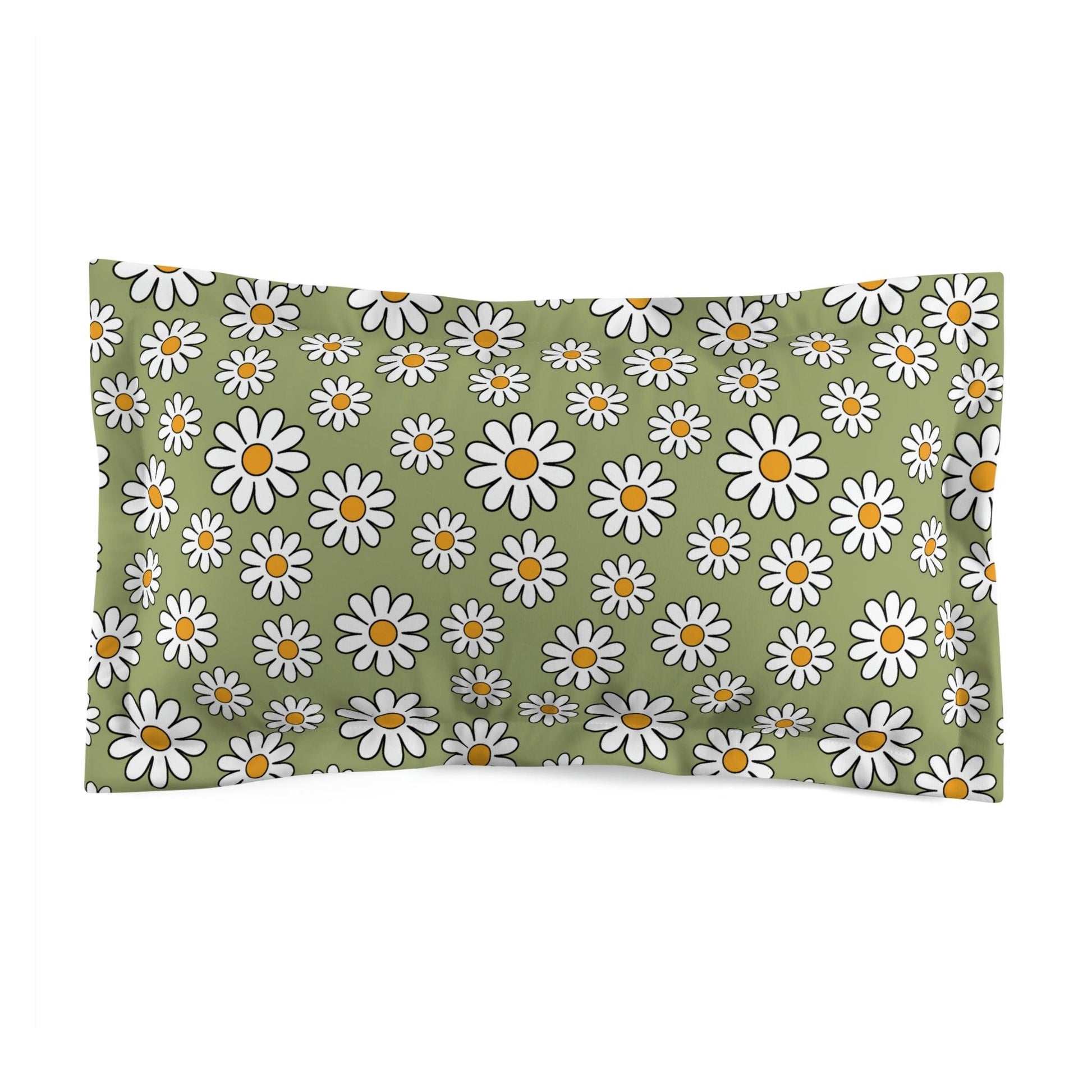 Retro 60s Boho Daisy Sage Green MCM Pillow Sham