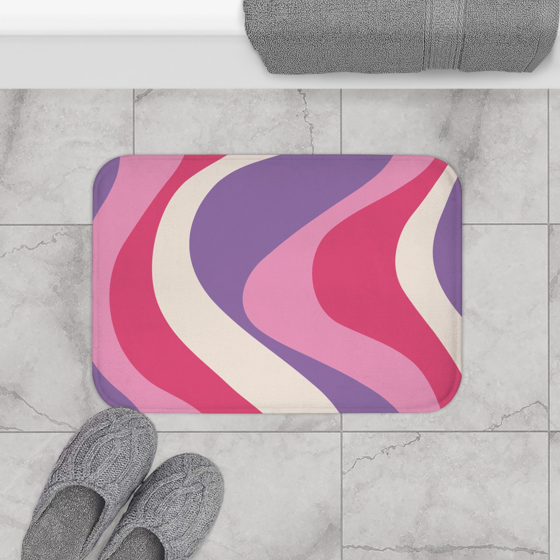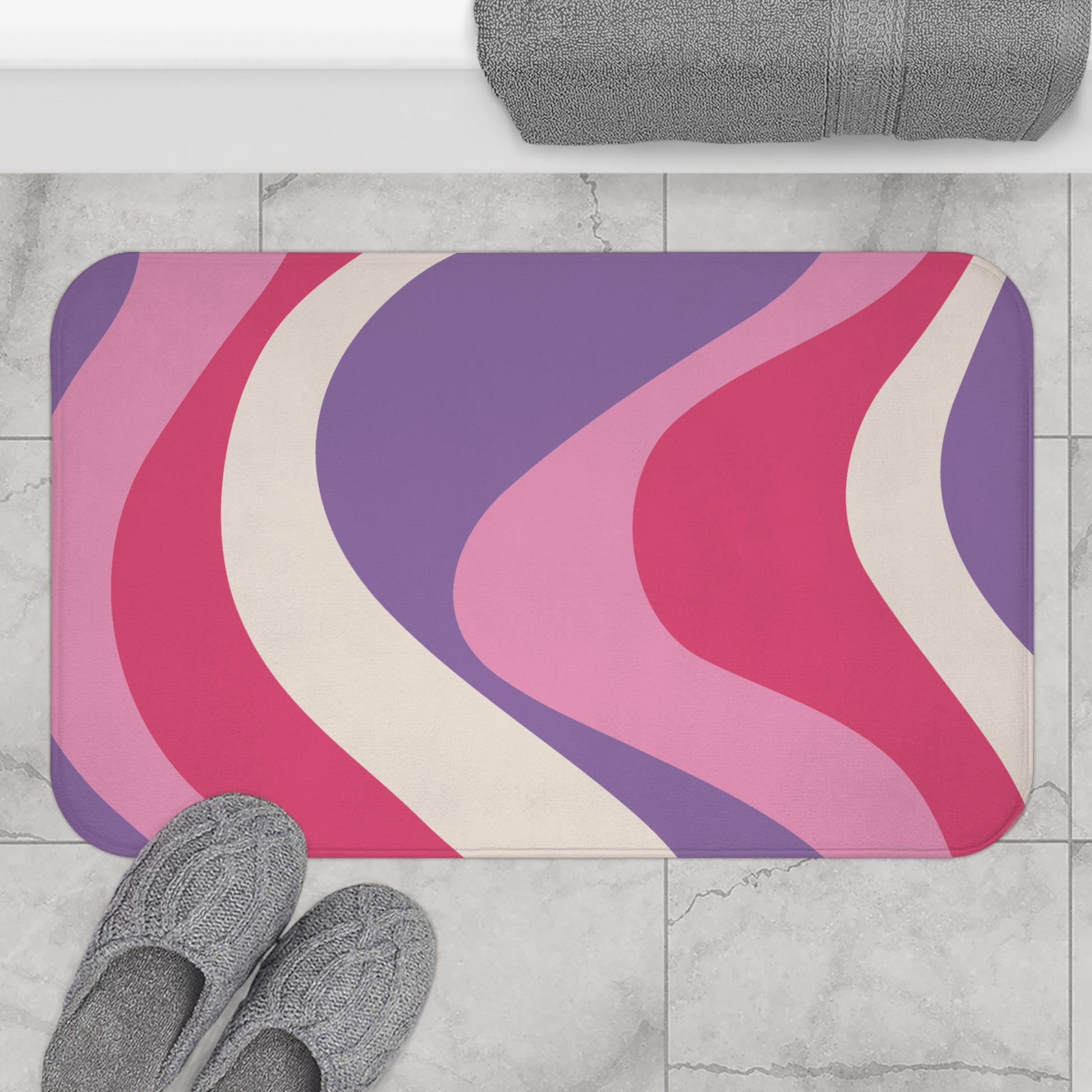 Retro 60s Groovy Hippie Swirl MCM Pink & Purple Bath Mat