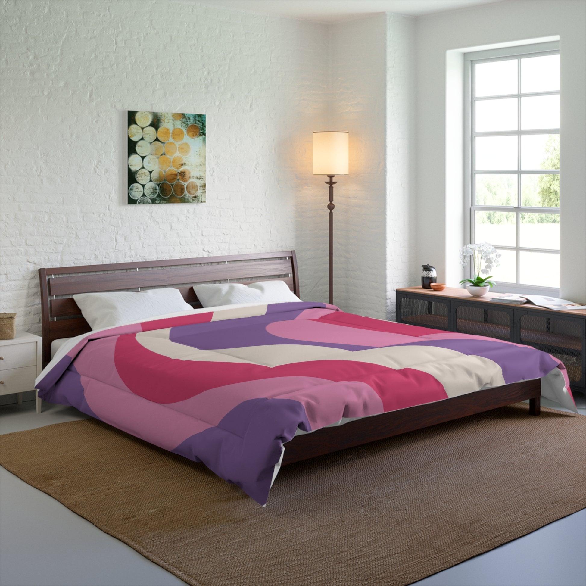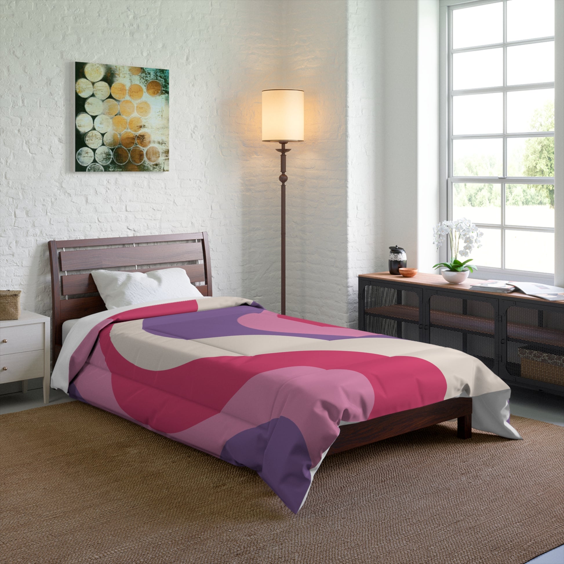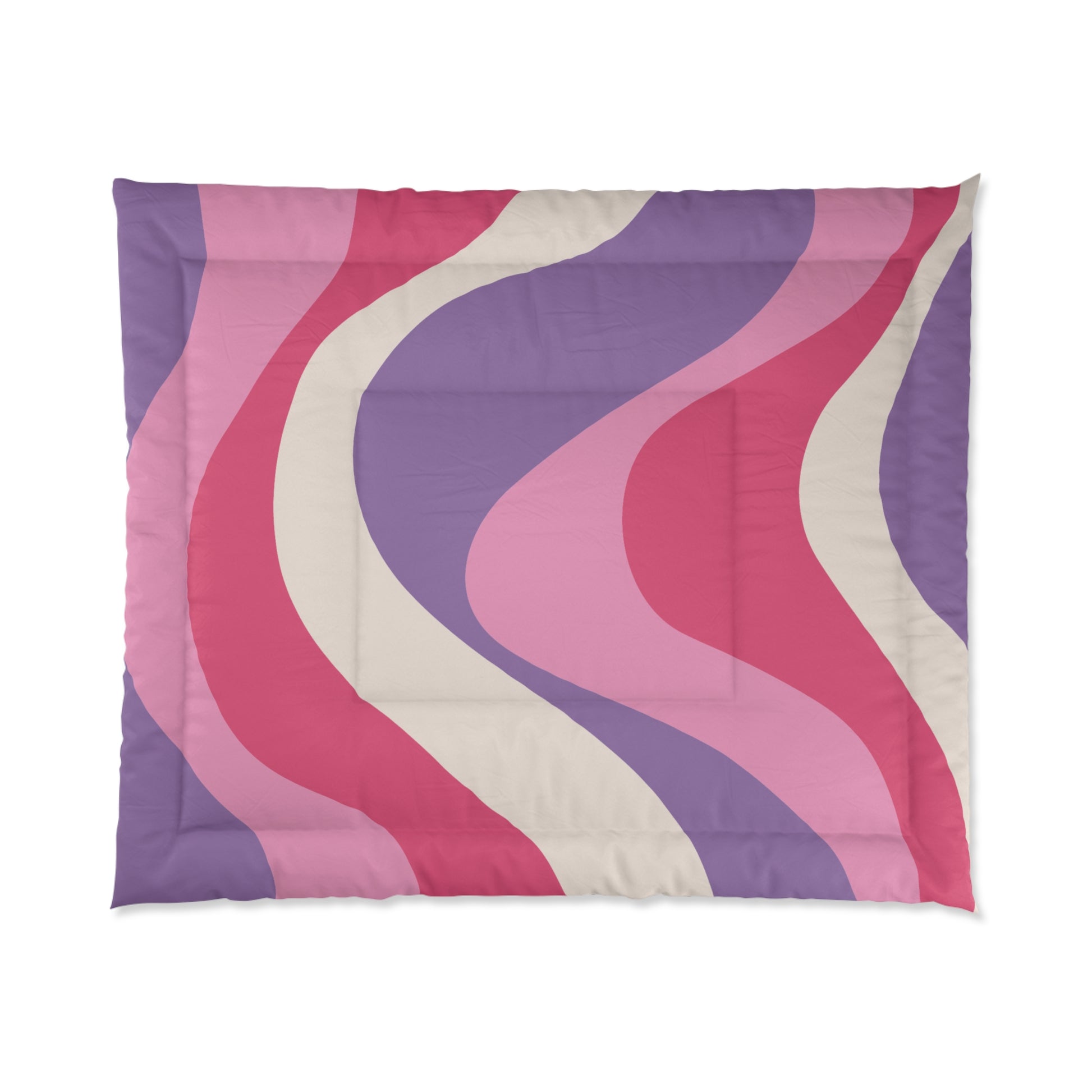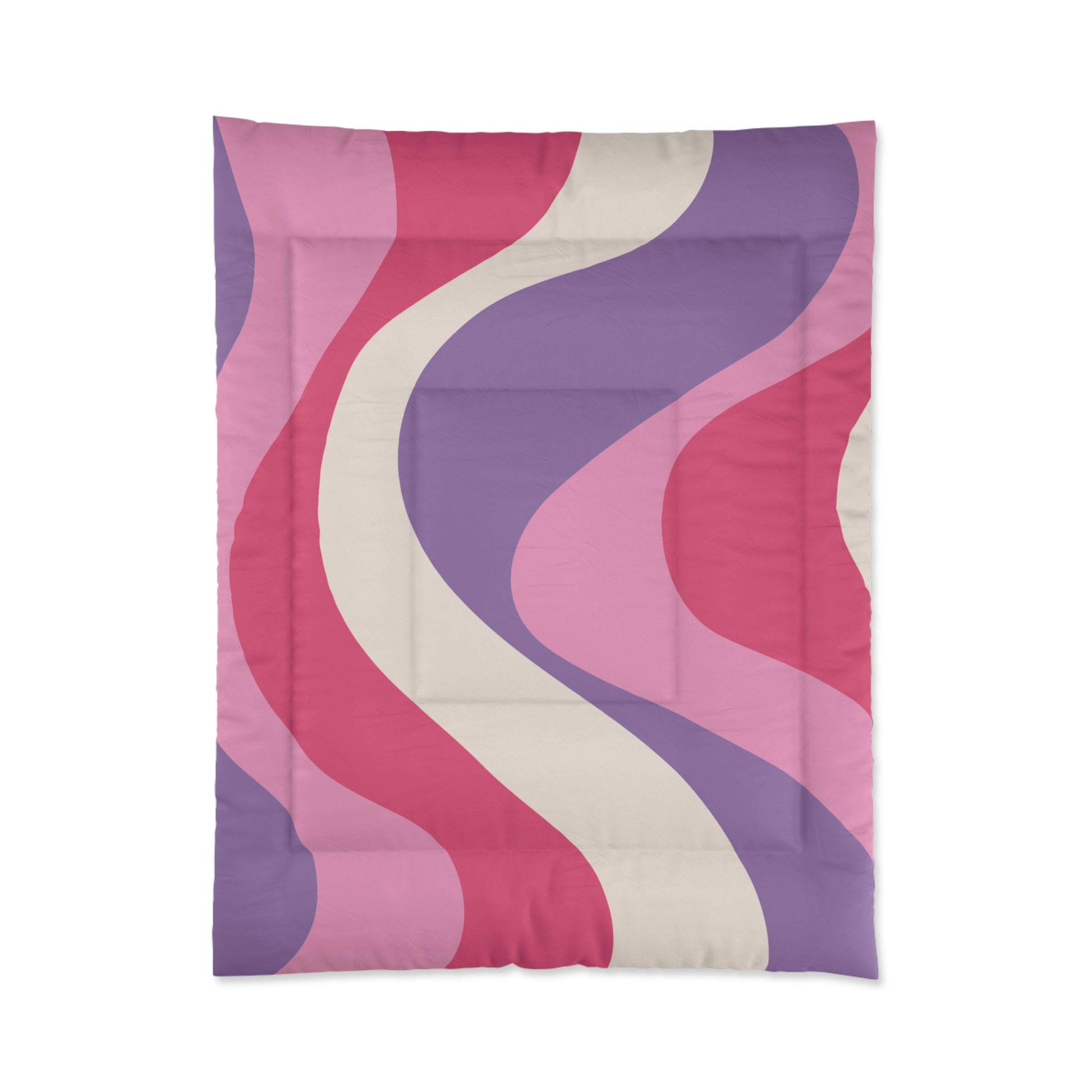 Retro 60s Groovy Hippie Swirl MCM Pink & Purple Comforter