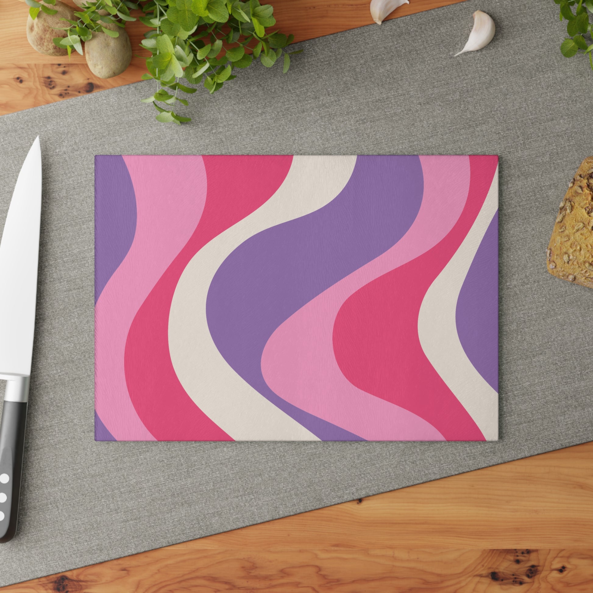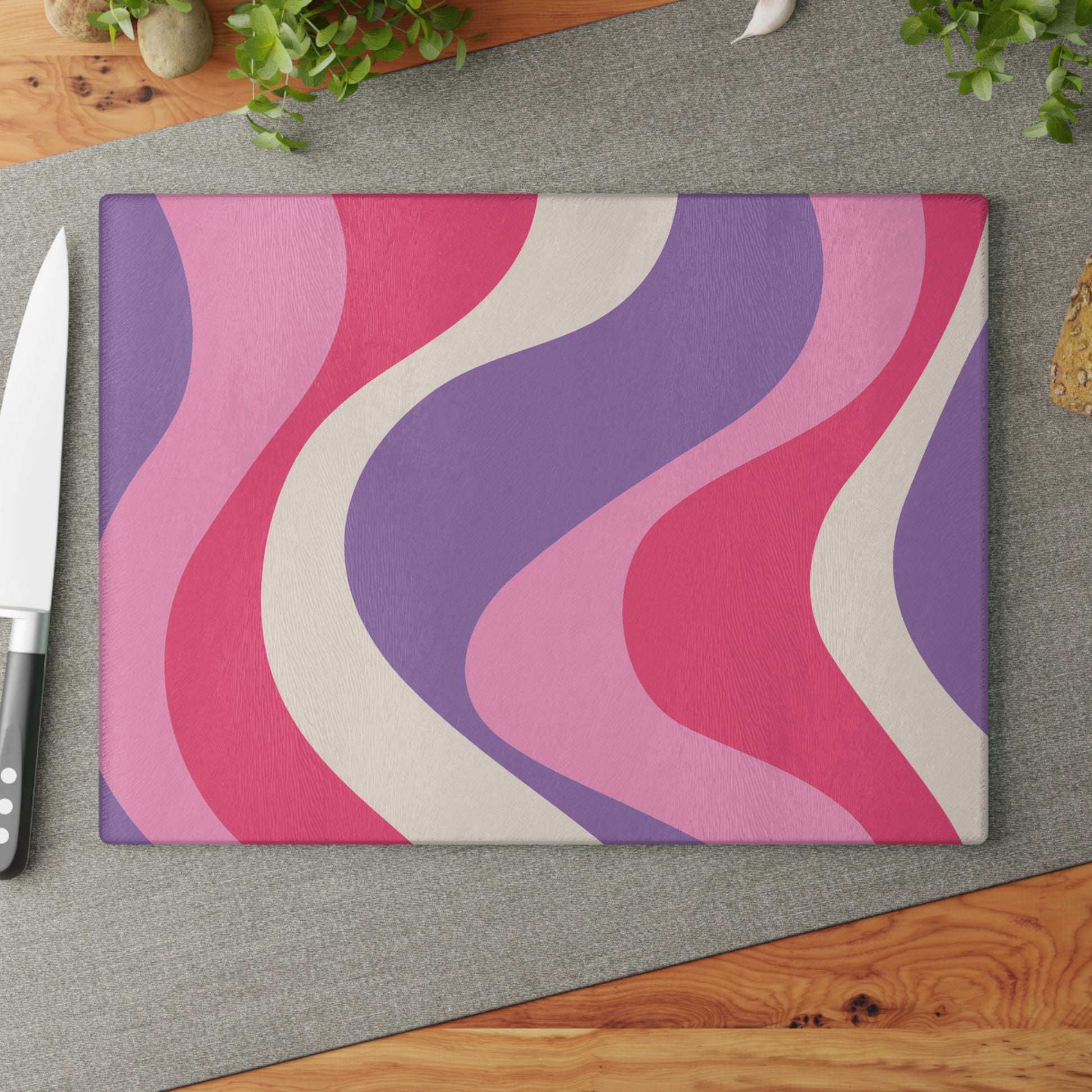 Retro 60s Groovy Hippie Swirl MCM Pink & Purple Glass Cutting Board