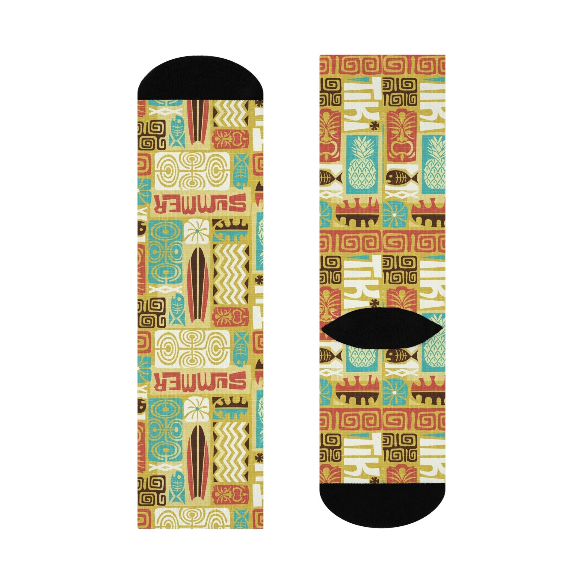 Whether you're at work, a luau or just need a mental escape, these fun Tiki socks are guaranteed to add some flair to your footwear, with the added comfort of a cushioned sole. Why settle for boring socks when you can have a pair that takes you on a mini-vacation with every step? Get your Tiki socks now and let the good times roll!