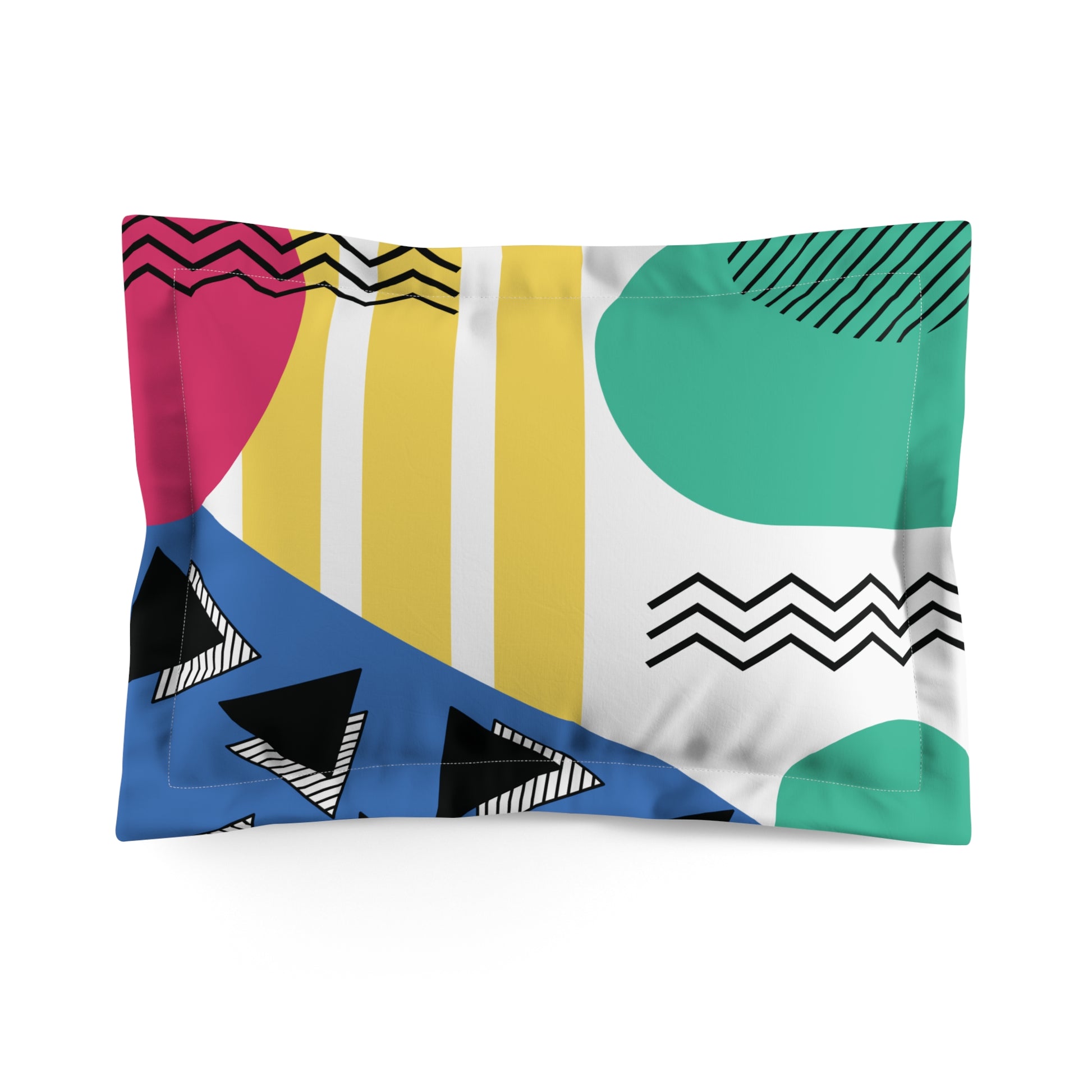 Retro 80's 90's Memphis Inspired Geometric, Throwback Aesthetic Multicolor Pillow Sham