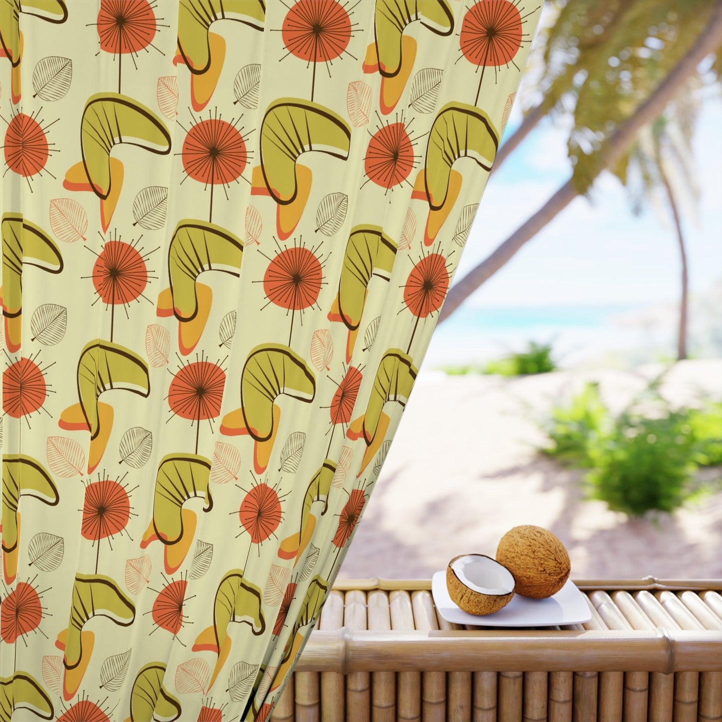 Retro Atomic Boomerangs & Leaves MCM Orange, Green & Yellow Blackout Window Curtain