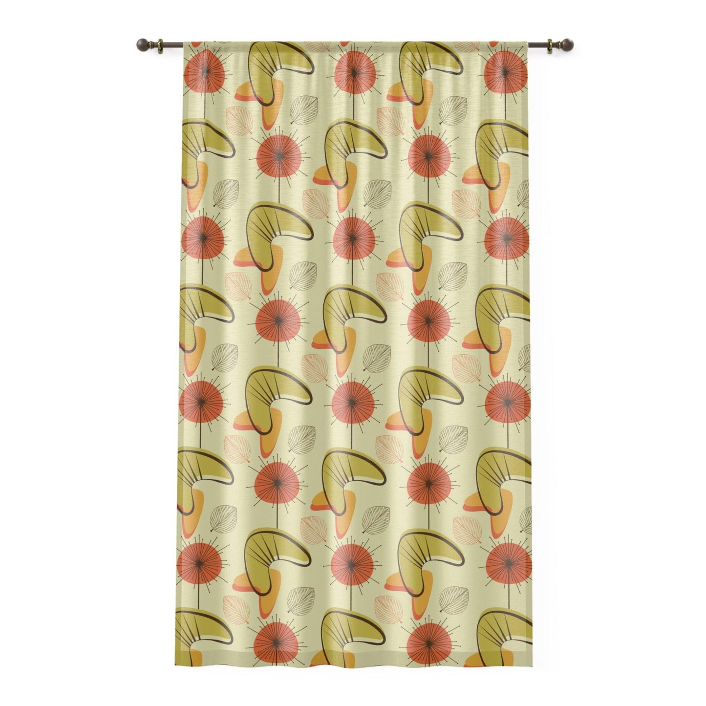 Retro Atomic Boomerangs & Leaves MCM Orange, Green & Yellow Sheer Window Curtain