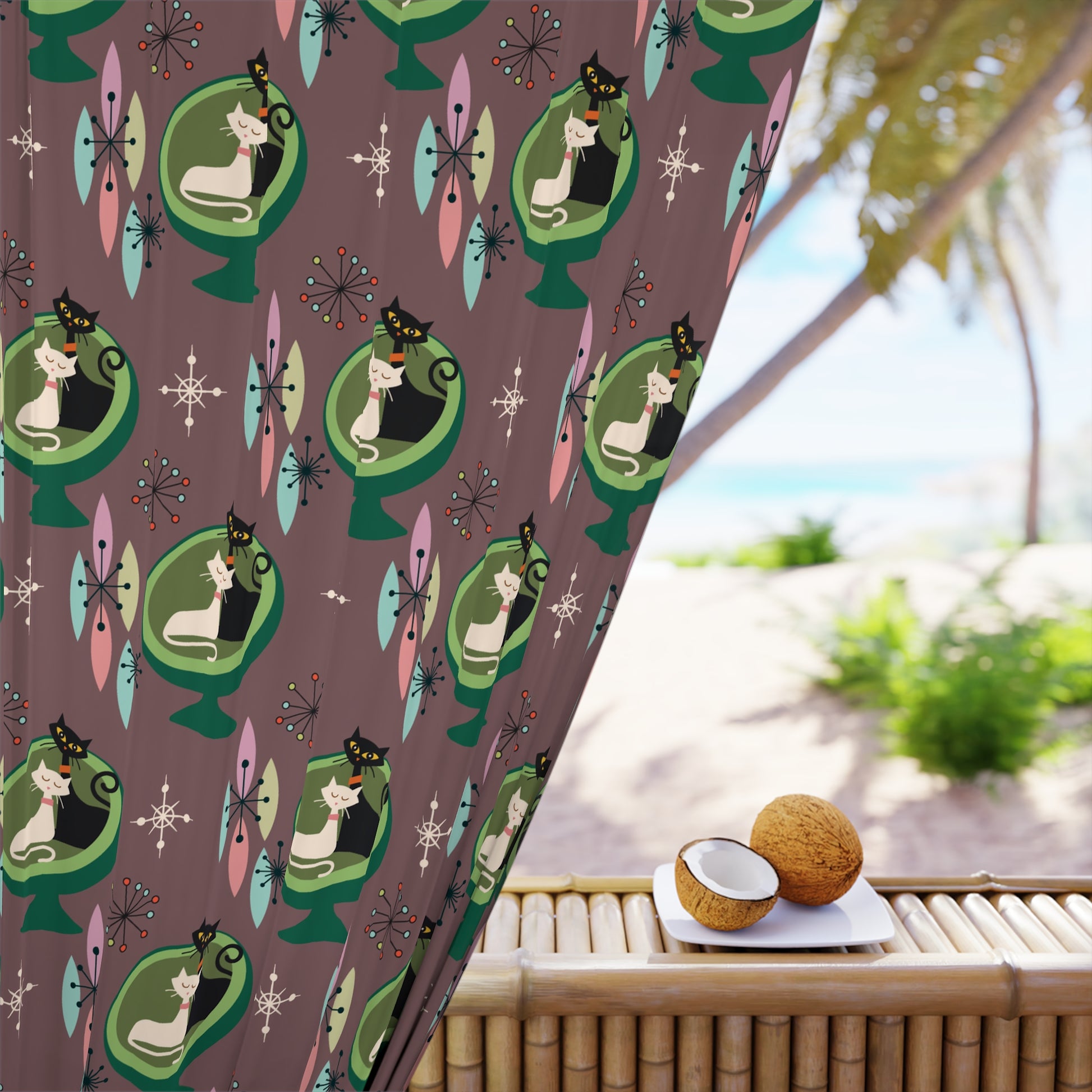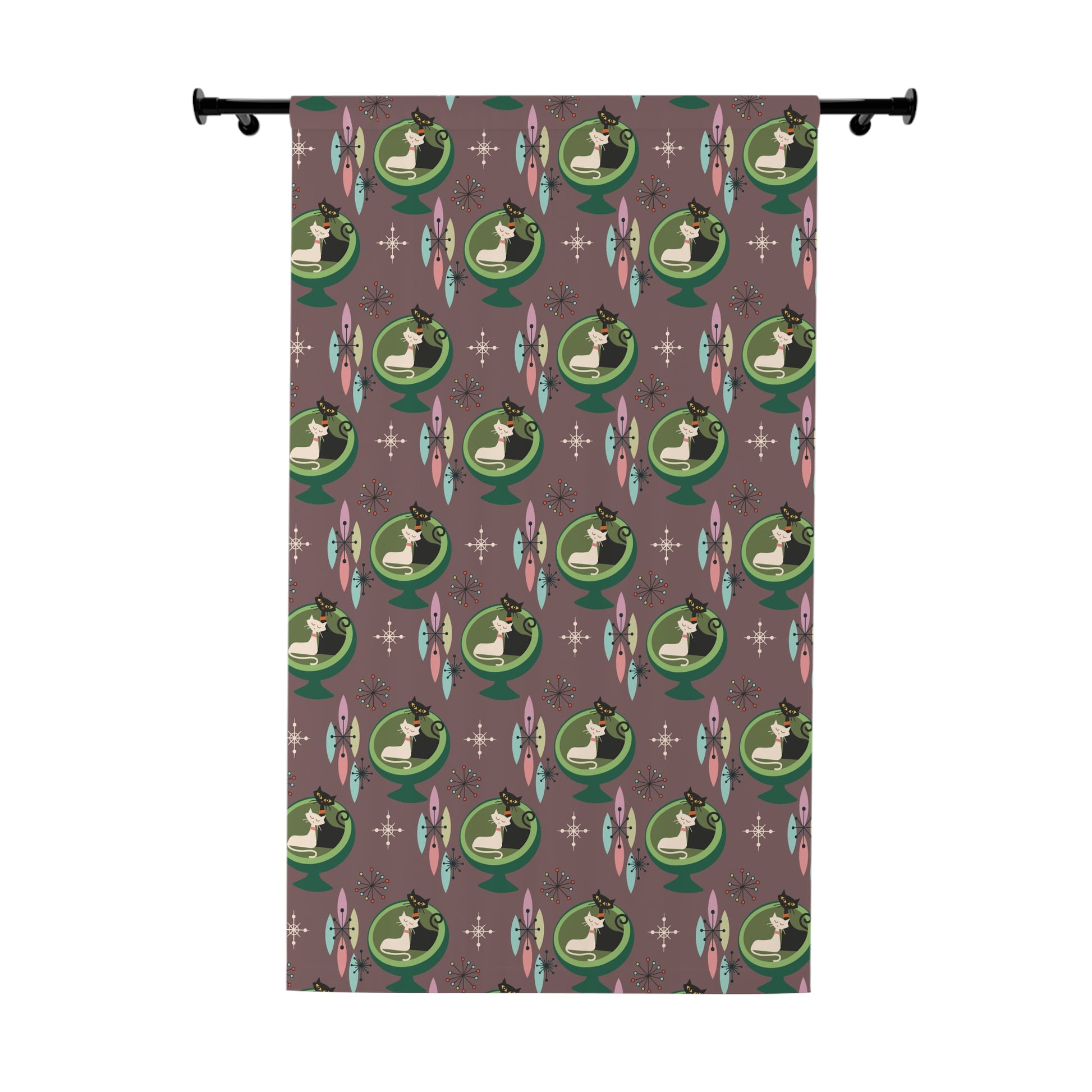 Retro Atomic Cat 50s Ball Chair Mid Century Mod Taupe and Green Blackout Window Curtain