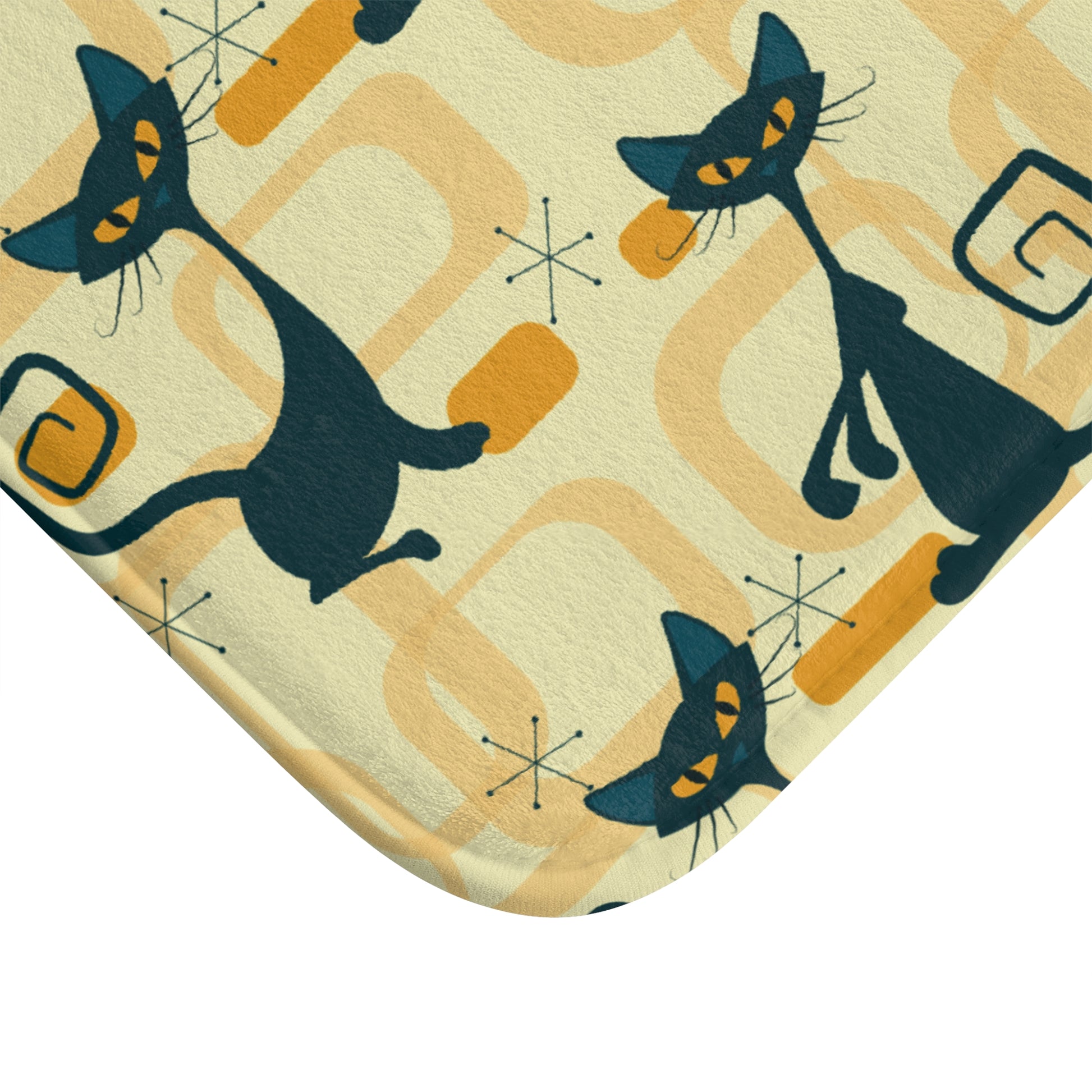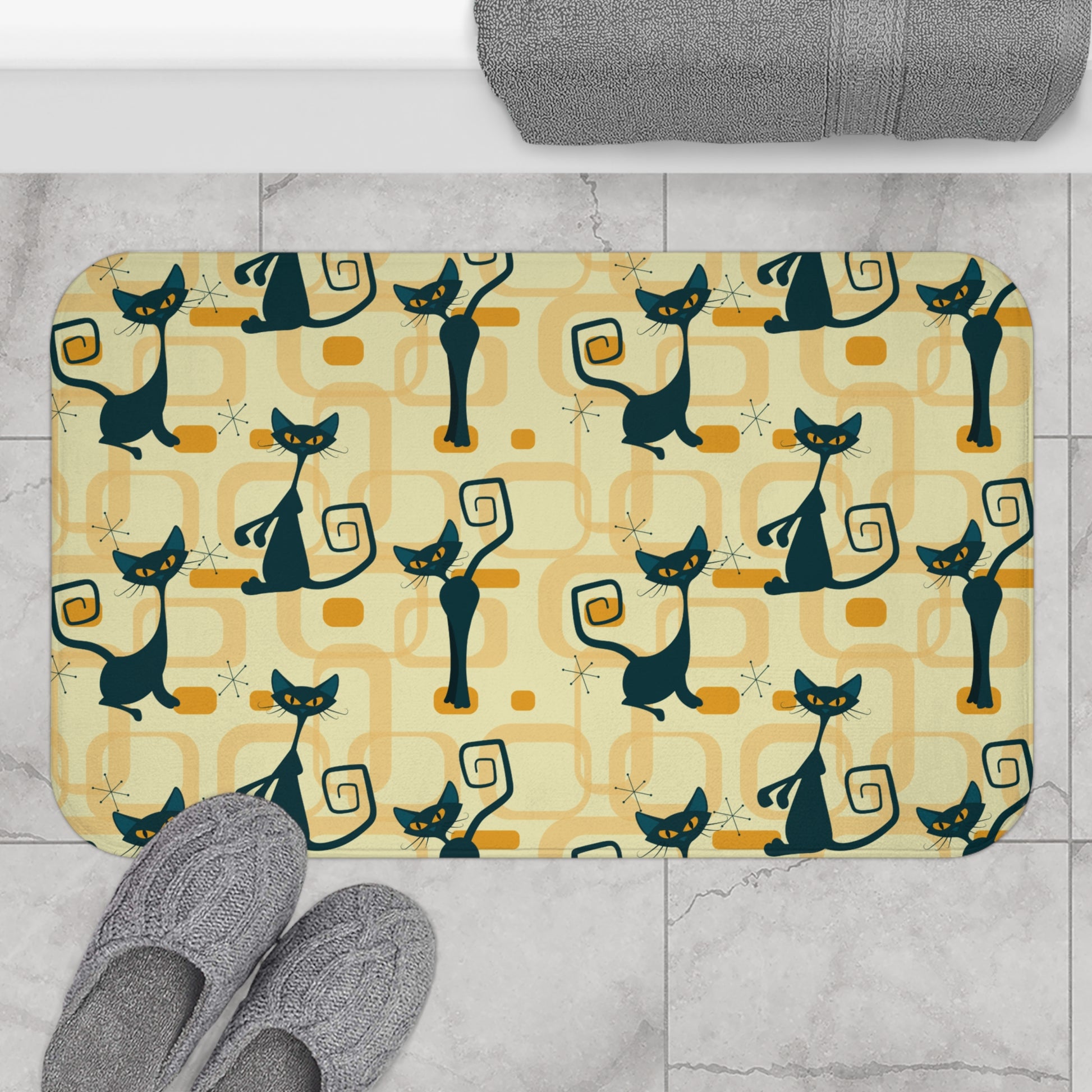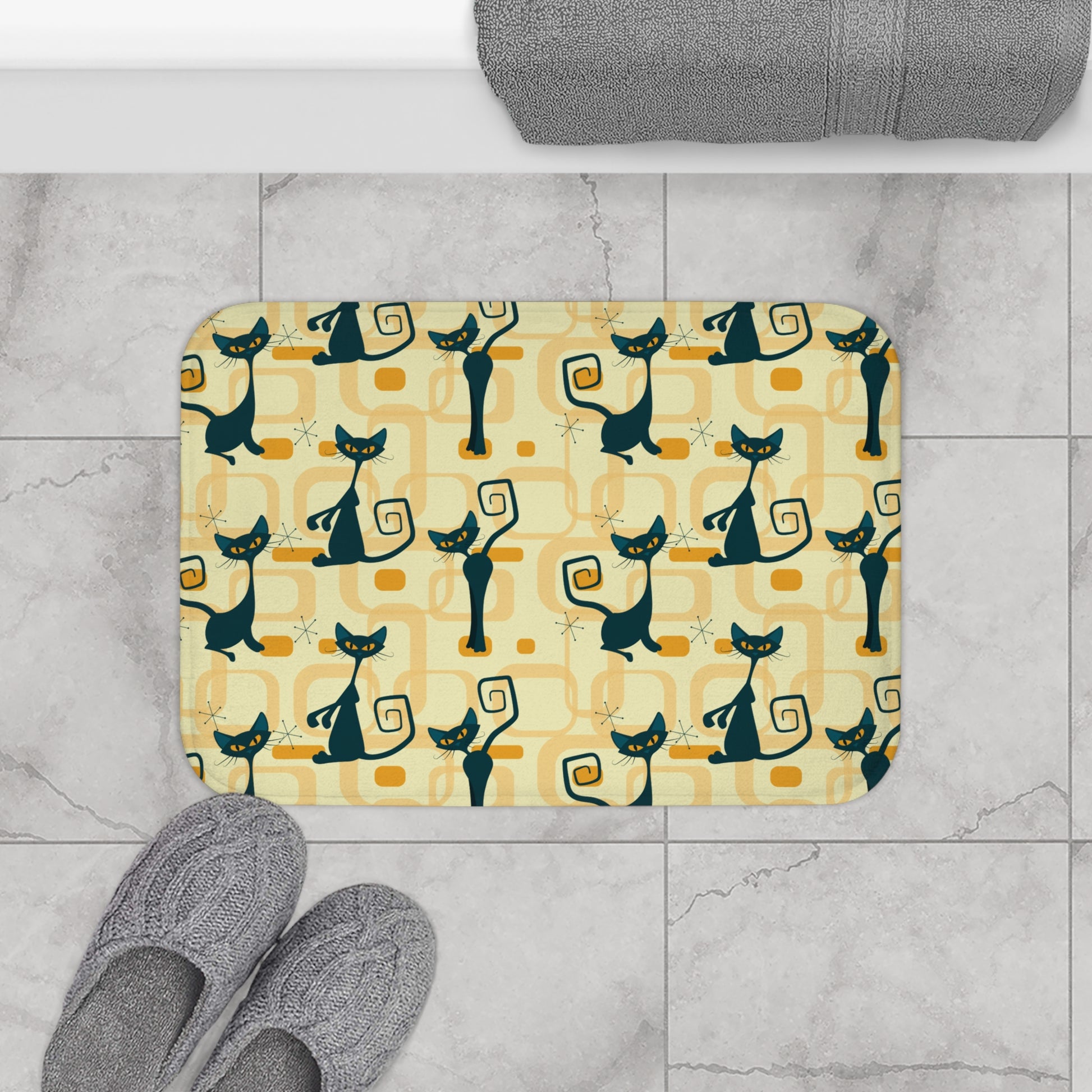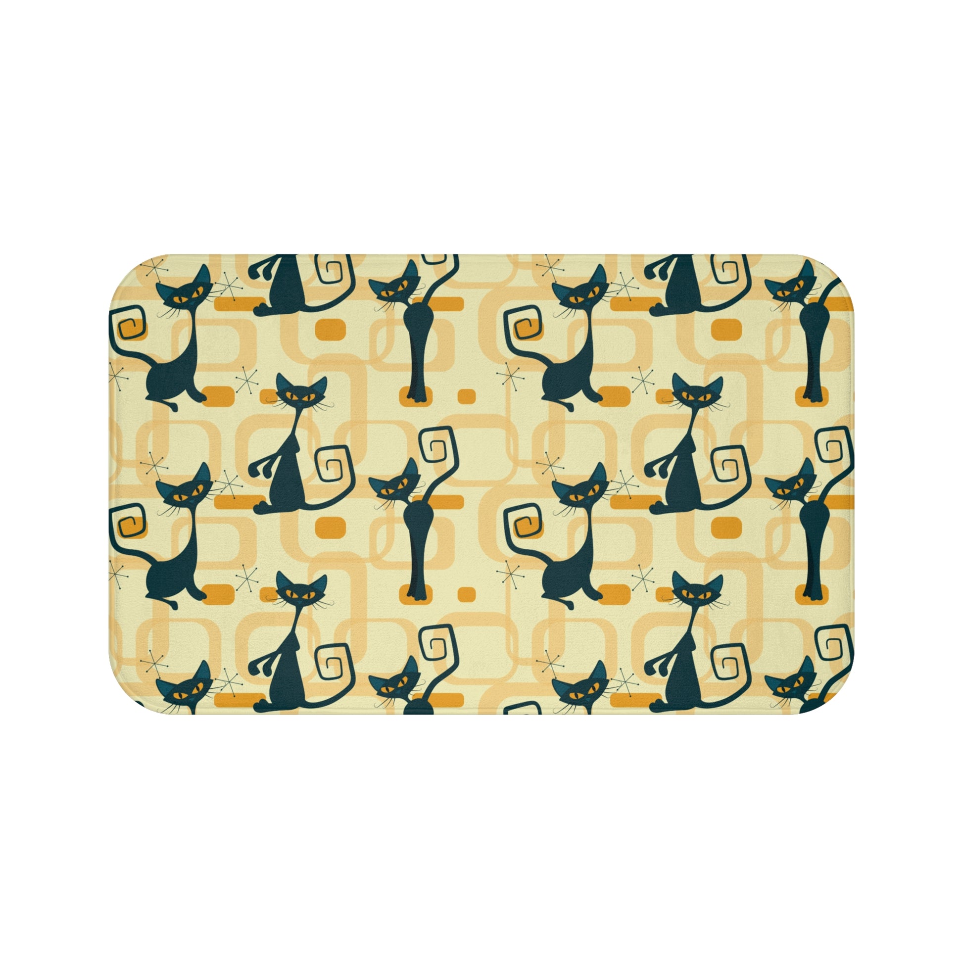 Retro Atomic Cat Mid Century Mod Yellow Bath Mat