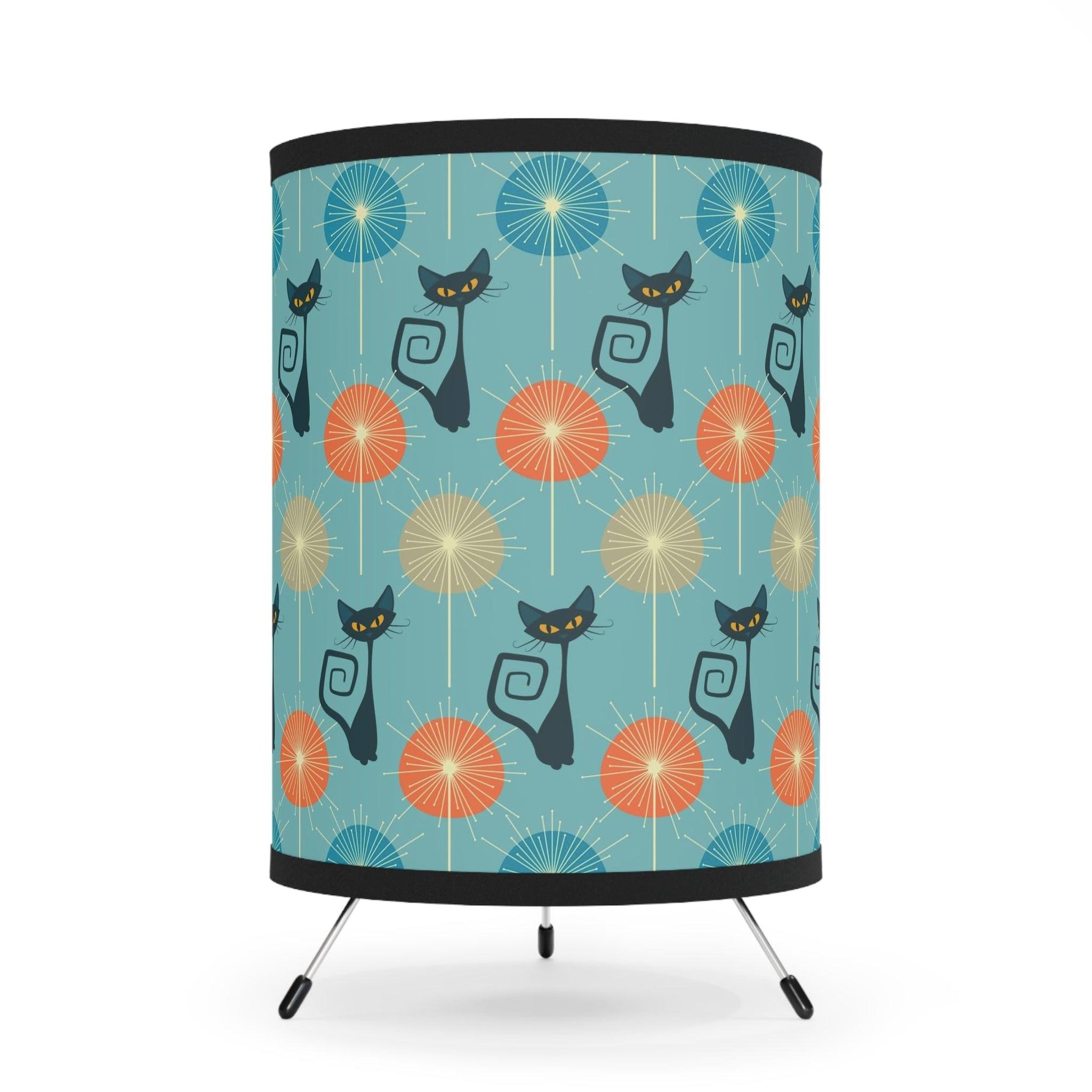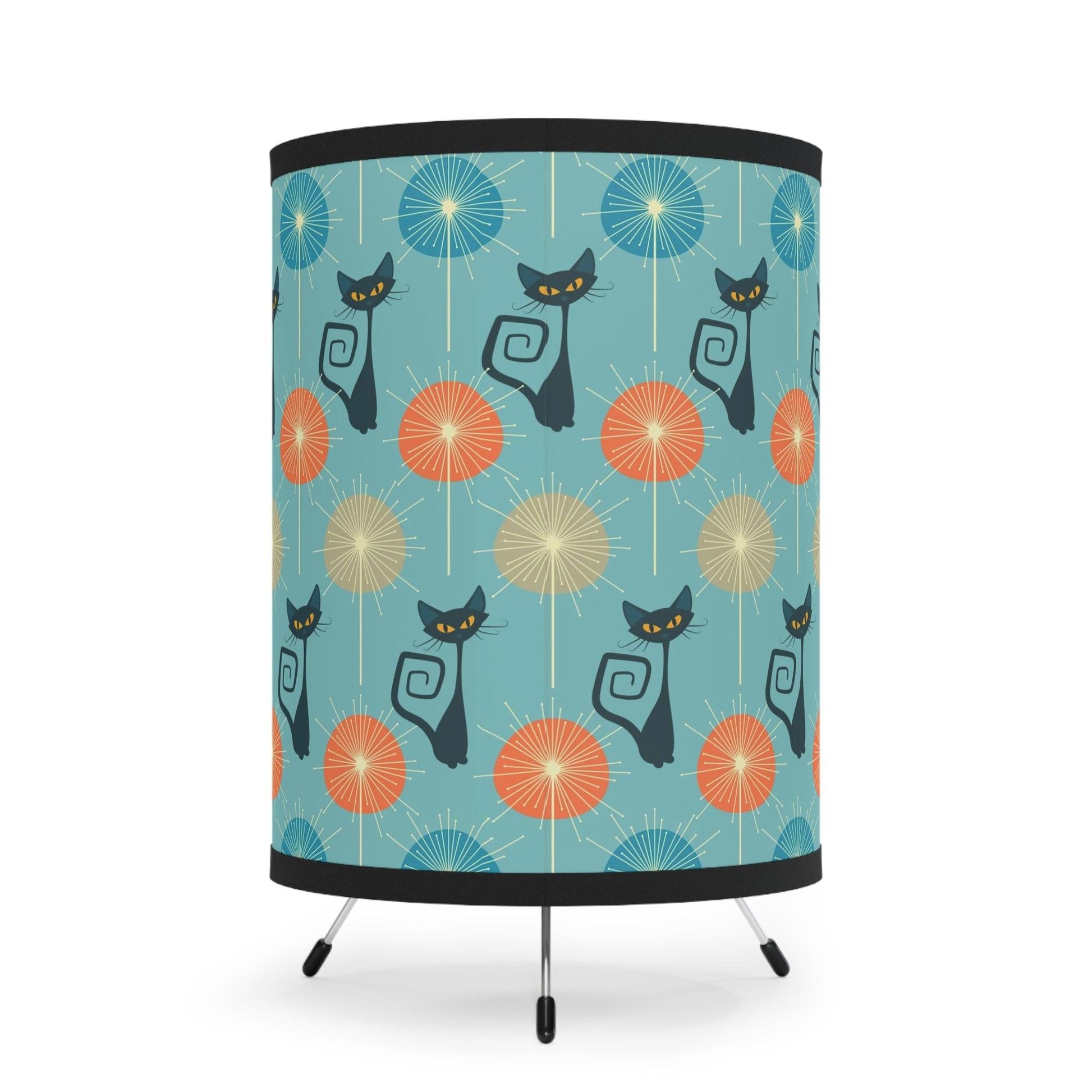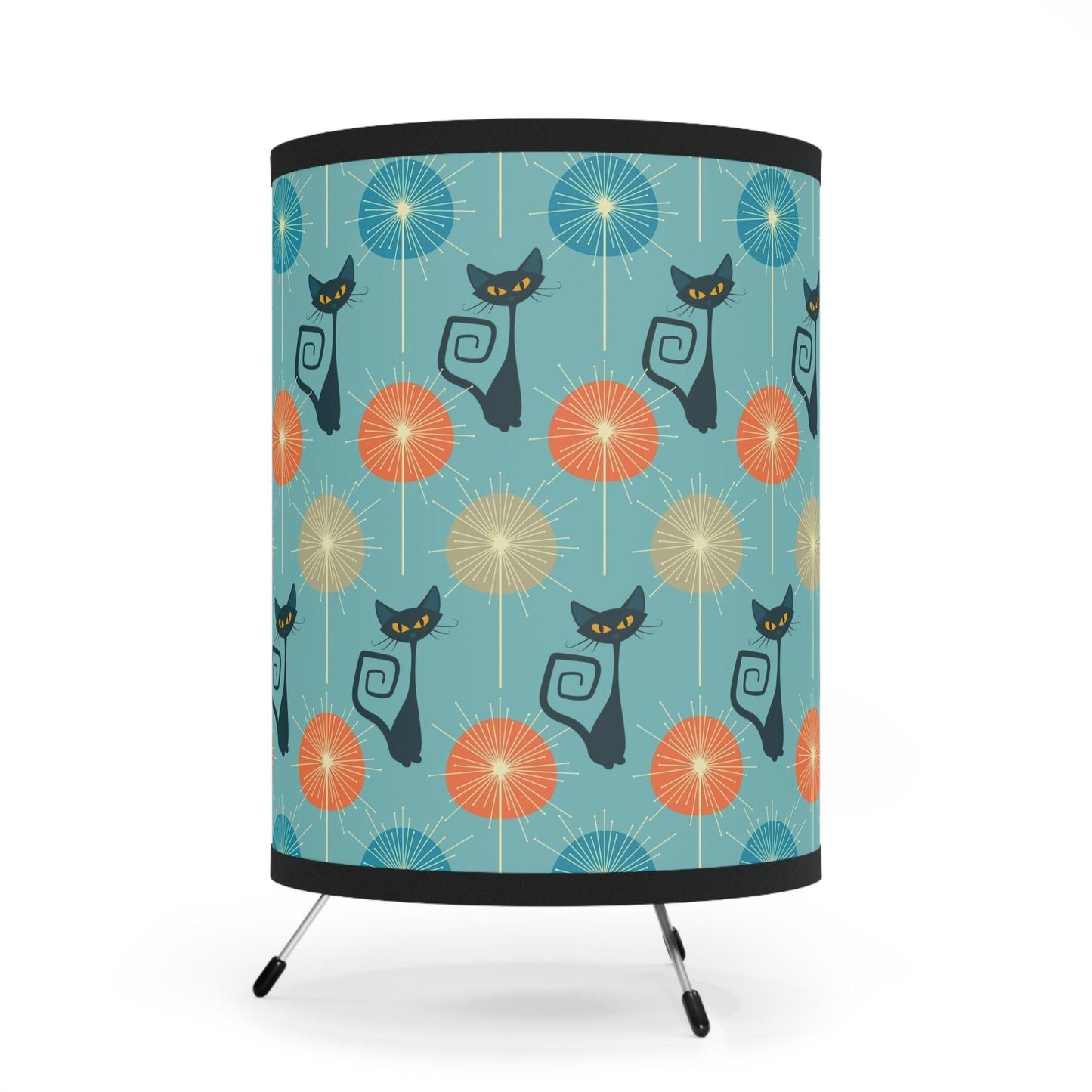 Our tripod accent lamp is sure to add a playful retro touch to any room in your home, with its eye-catching design featuring kitschy atomic cats. Whether you're a cat lover, a fan of mid-century modern design, or just looking for a lamp that's a little bit different, this is the perfect choice for you.