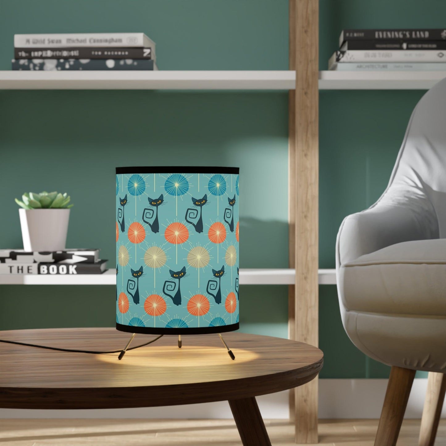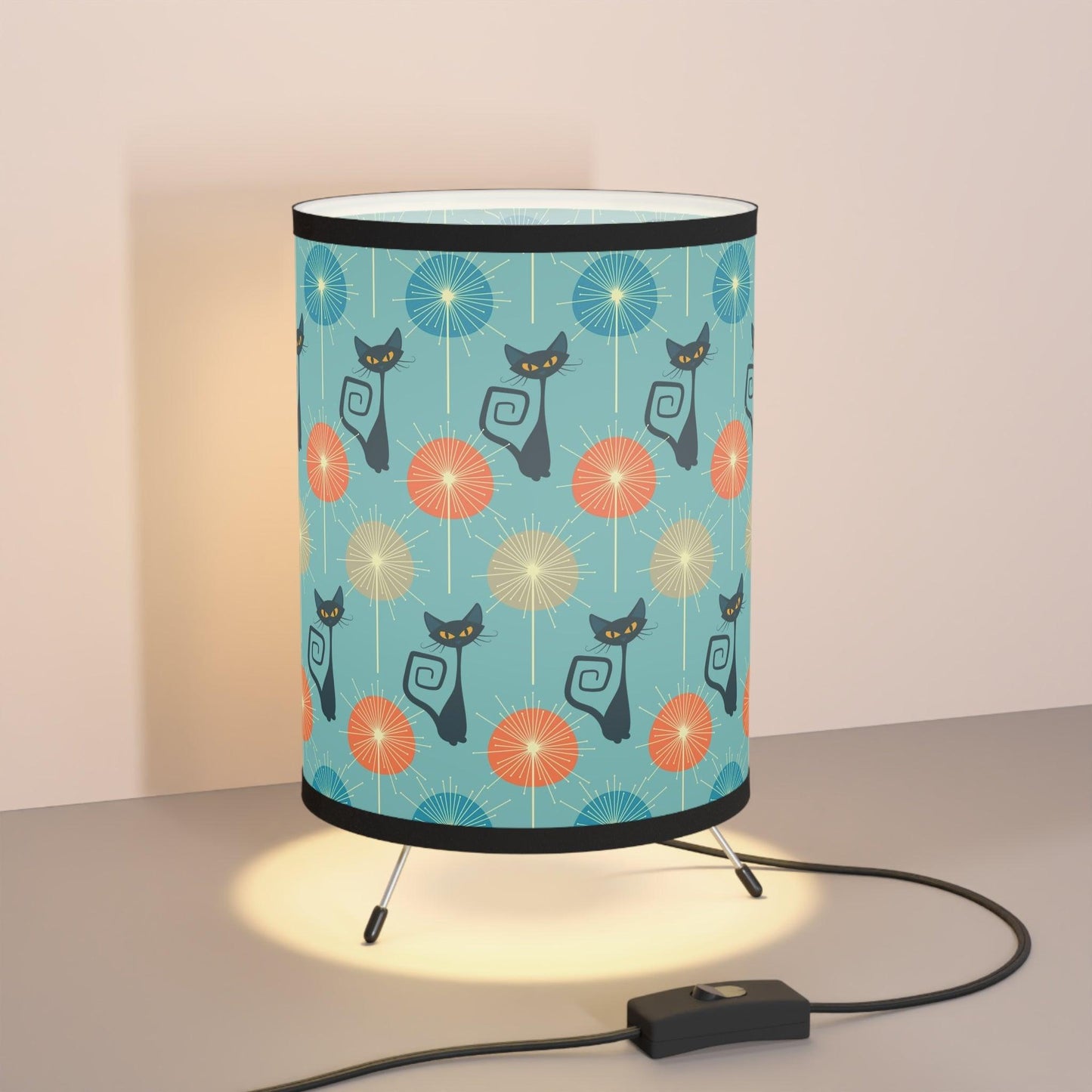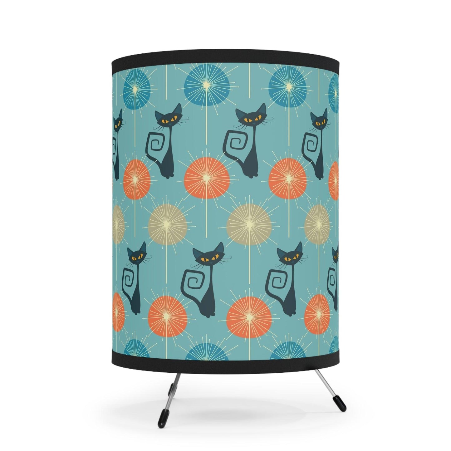 Our tripod accent lamp is sure to add a playful retro touch to any room in your home, with its eye-catching design featuring kitschy atomic cats. Whether you're a cat lover, a fan of mid-century modern design, or just looking for a lamp that's a little bit different, this is the perfect choice for you.