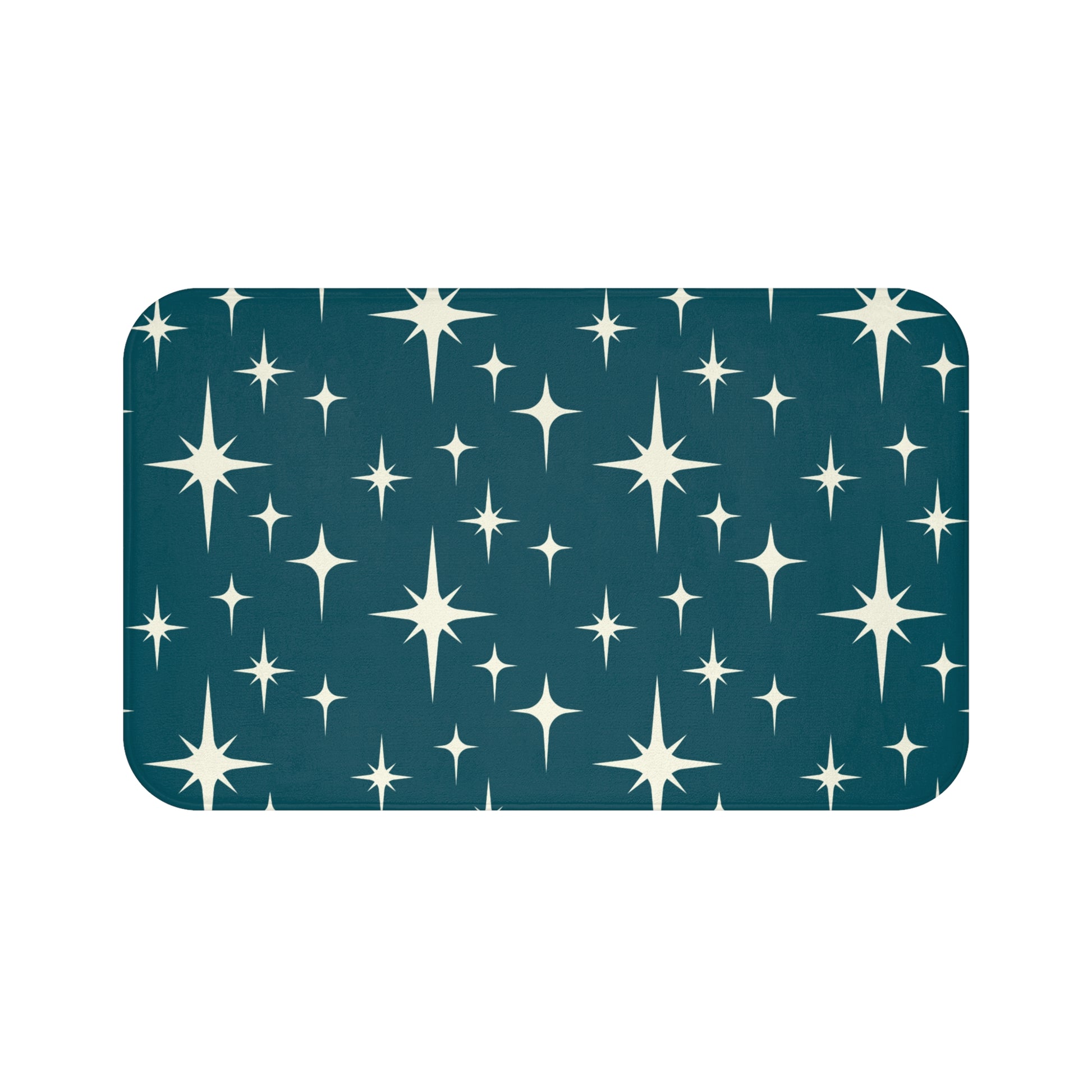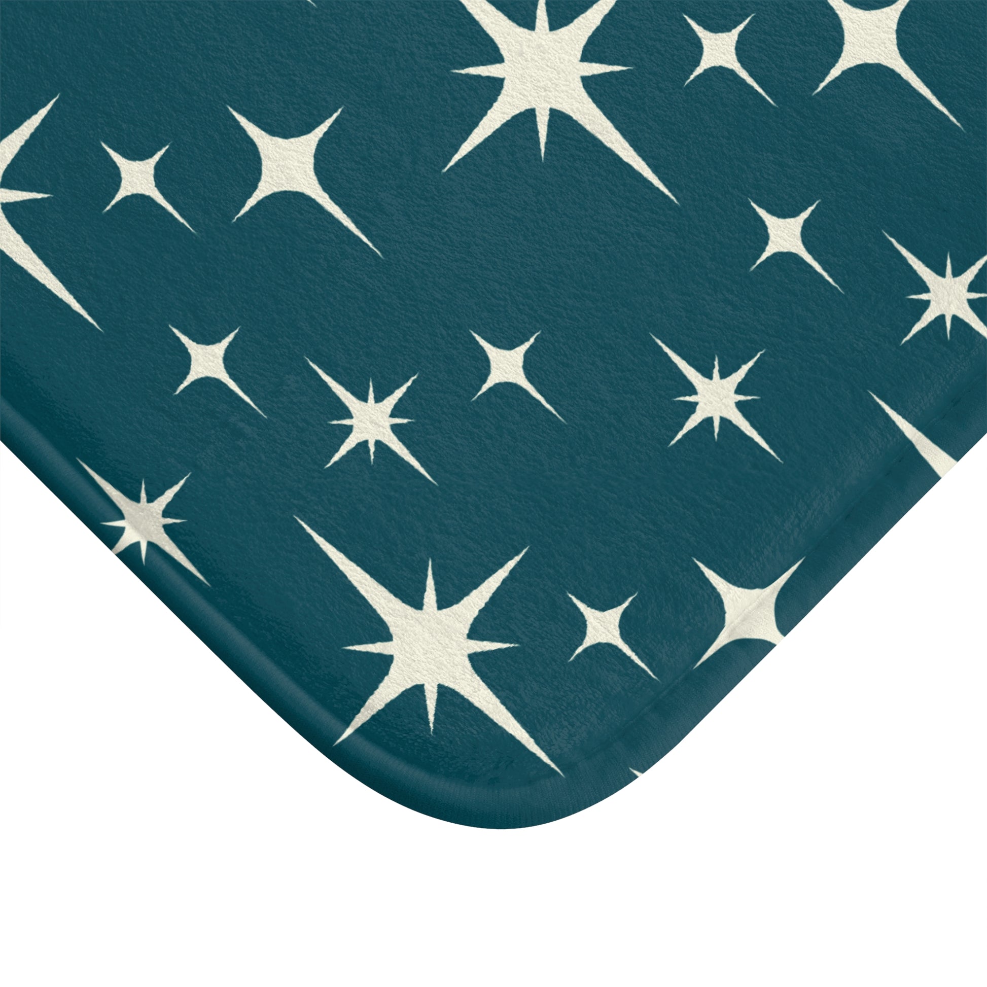 Retro 50s Atomic Starburst Off-White and Blue MCM Bath Mat