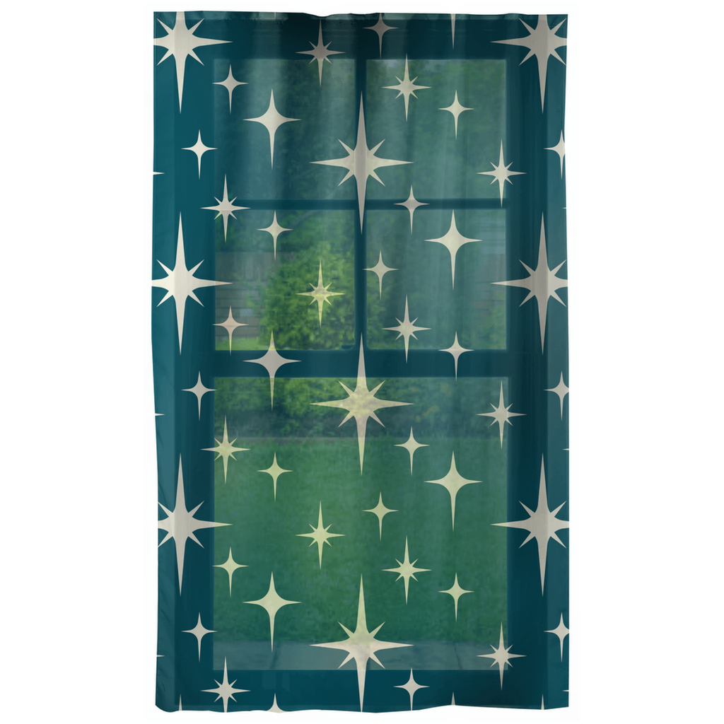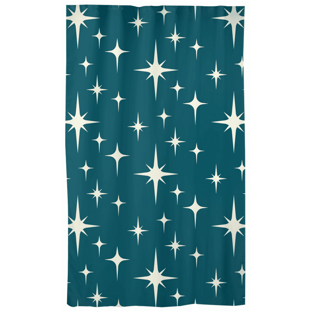 Our retro 50's atomic starburst cream on blue curtains are the perfect excuse to host a cocktail party for friends, or simply lounge around in your vintage best. Cheers to stylish mid century living!