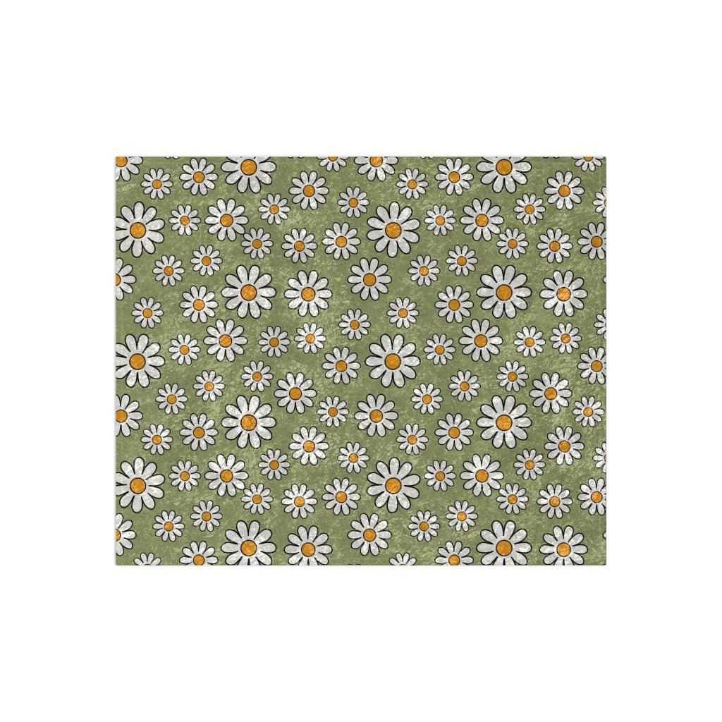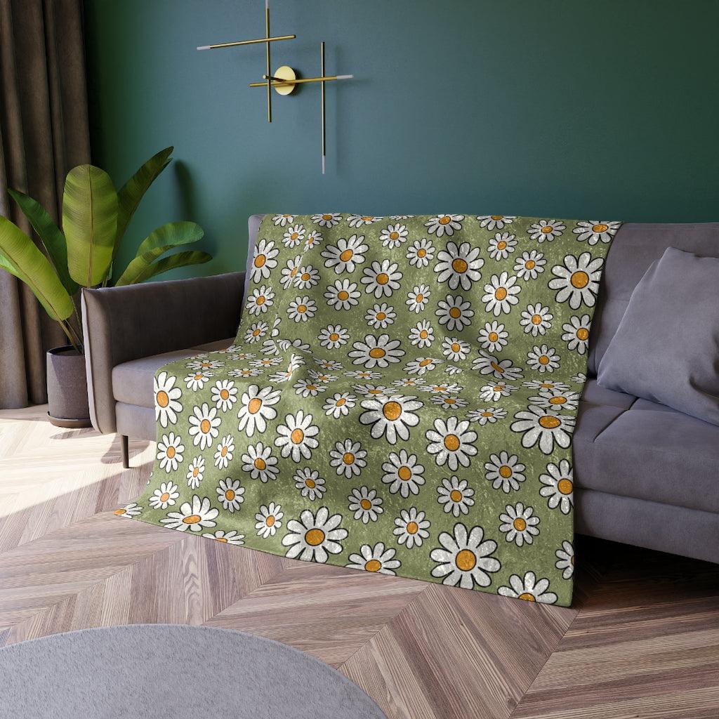 Retro Boho Daisy Sage Green MCM Crushed Velvet Blanket