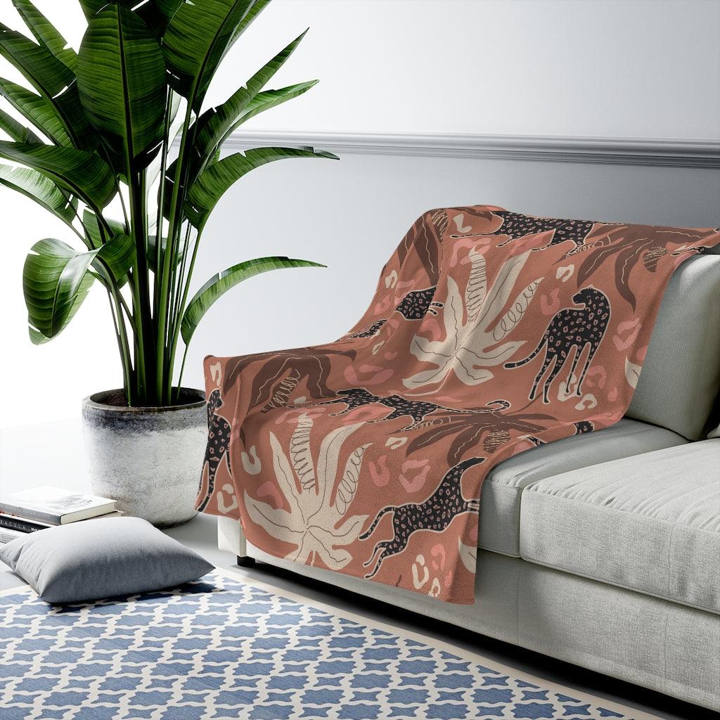 Retro Boho Leopard in Pink/Brown Jungle Lightweight Velveteen Blanket
