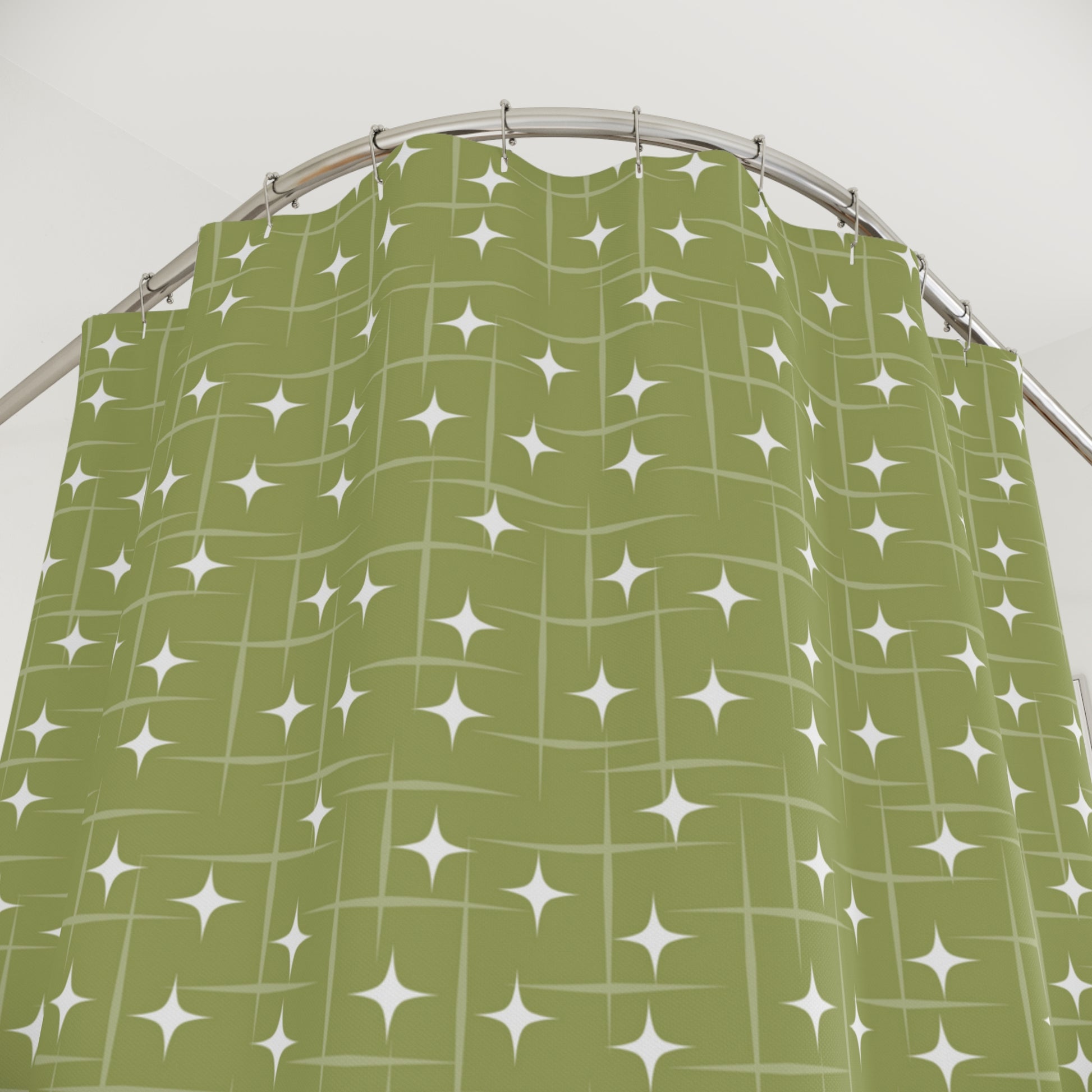 Retro Burst 1950s Mid Century Modern Green Shower Curtain