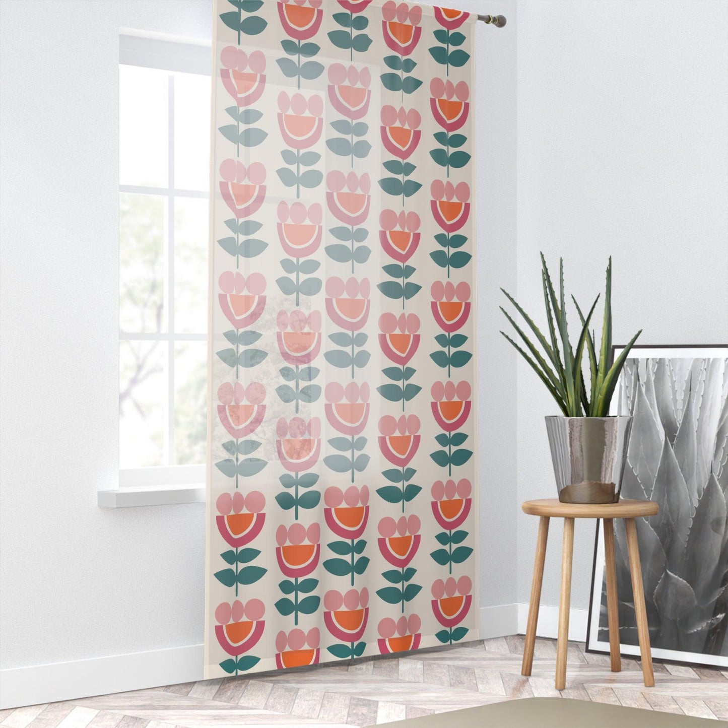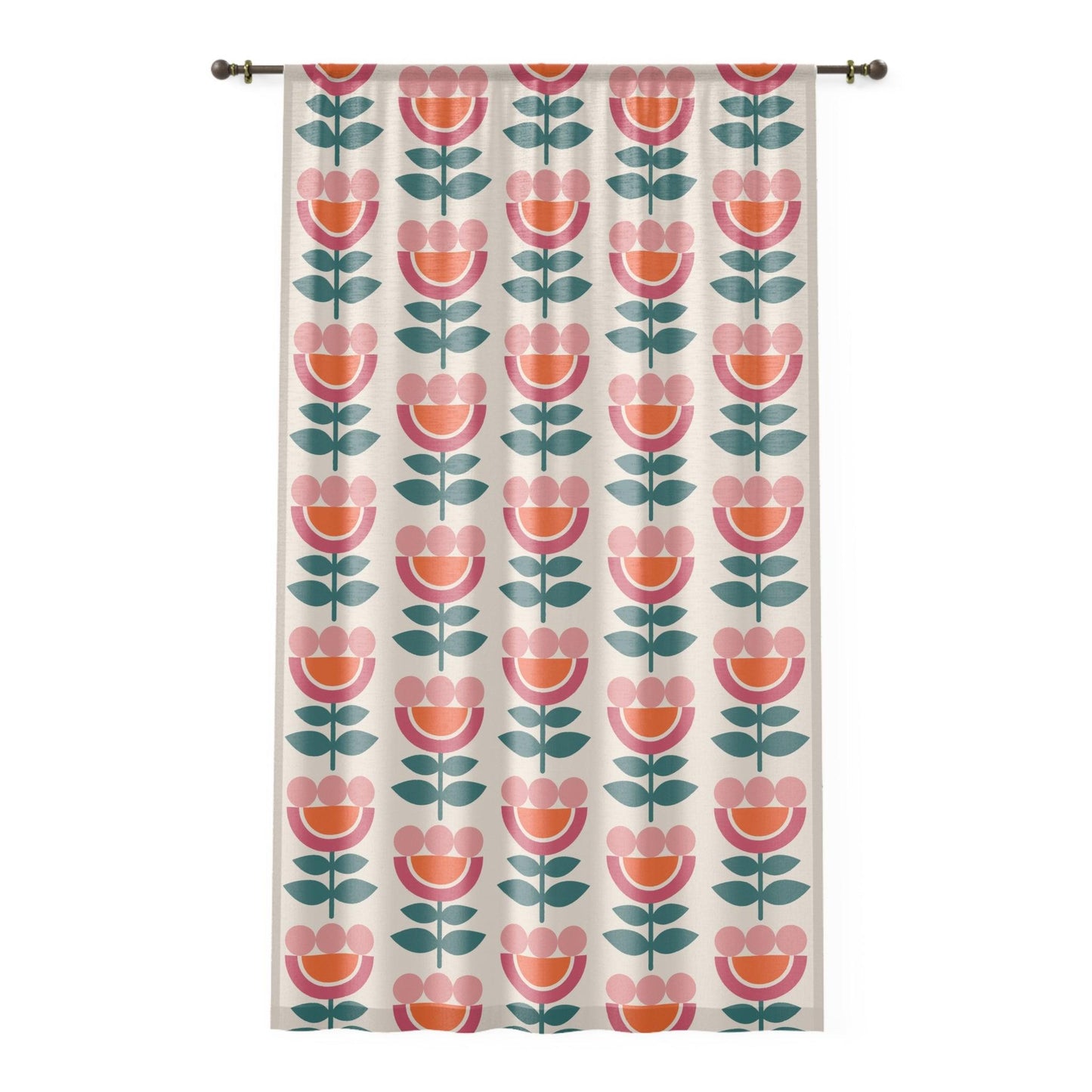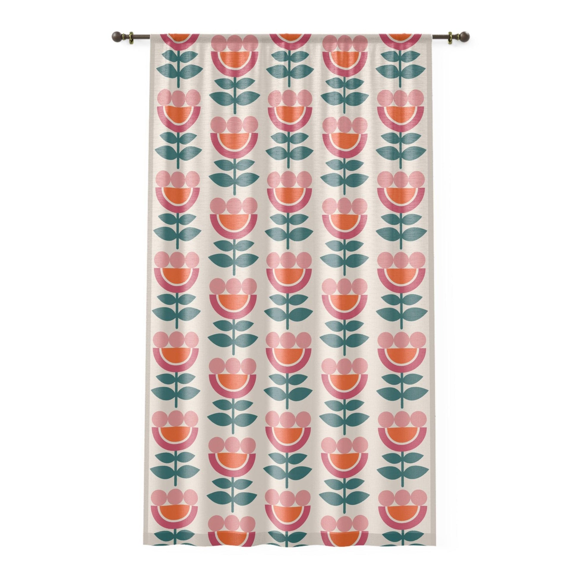 Retro Danish Flowers Scandinavian MCM Orange, Pink, Beige Sheer Window Curtain