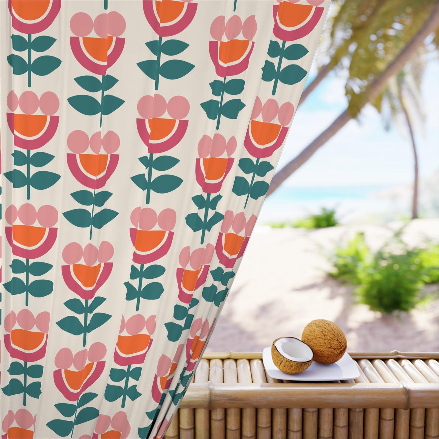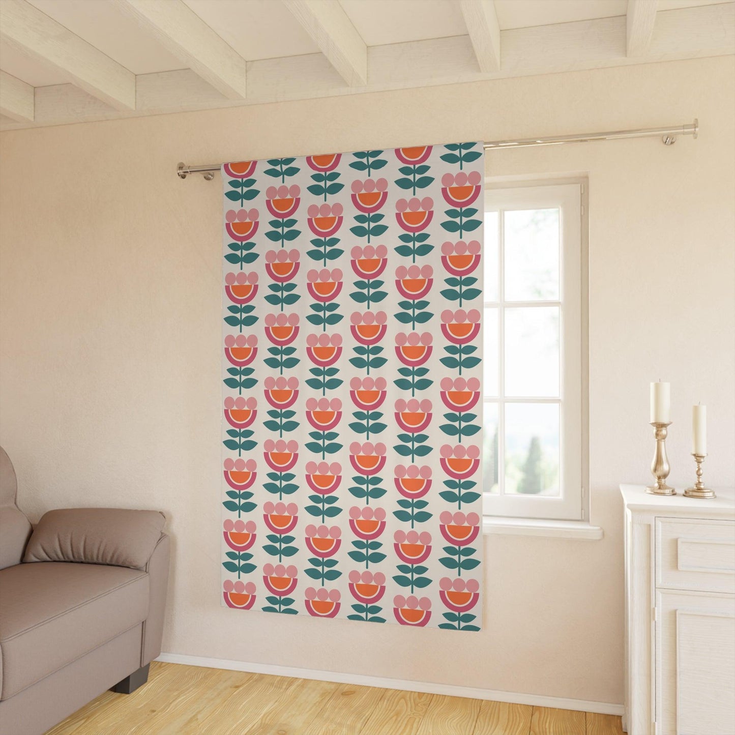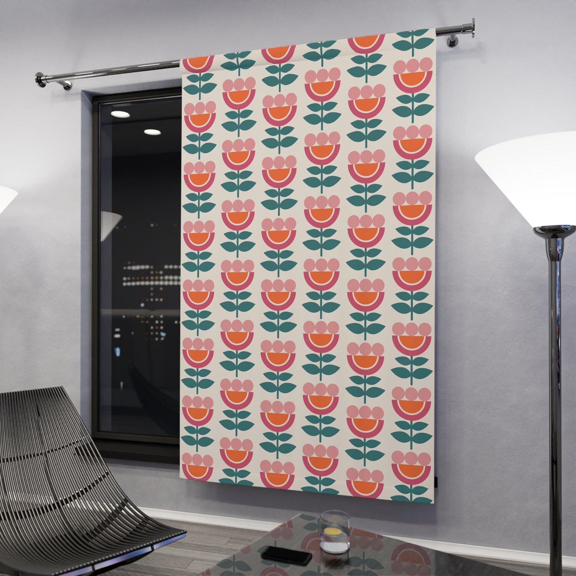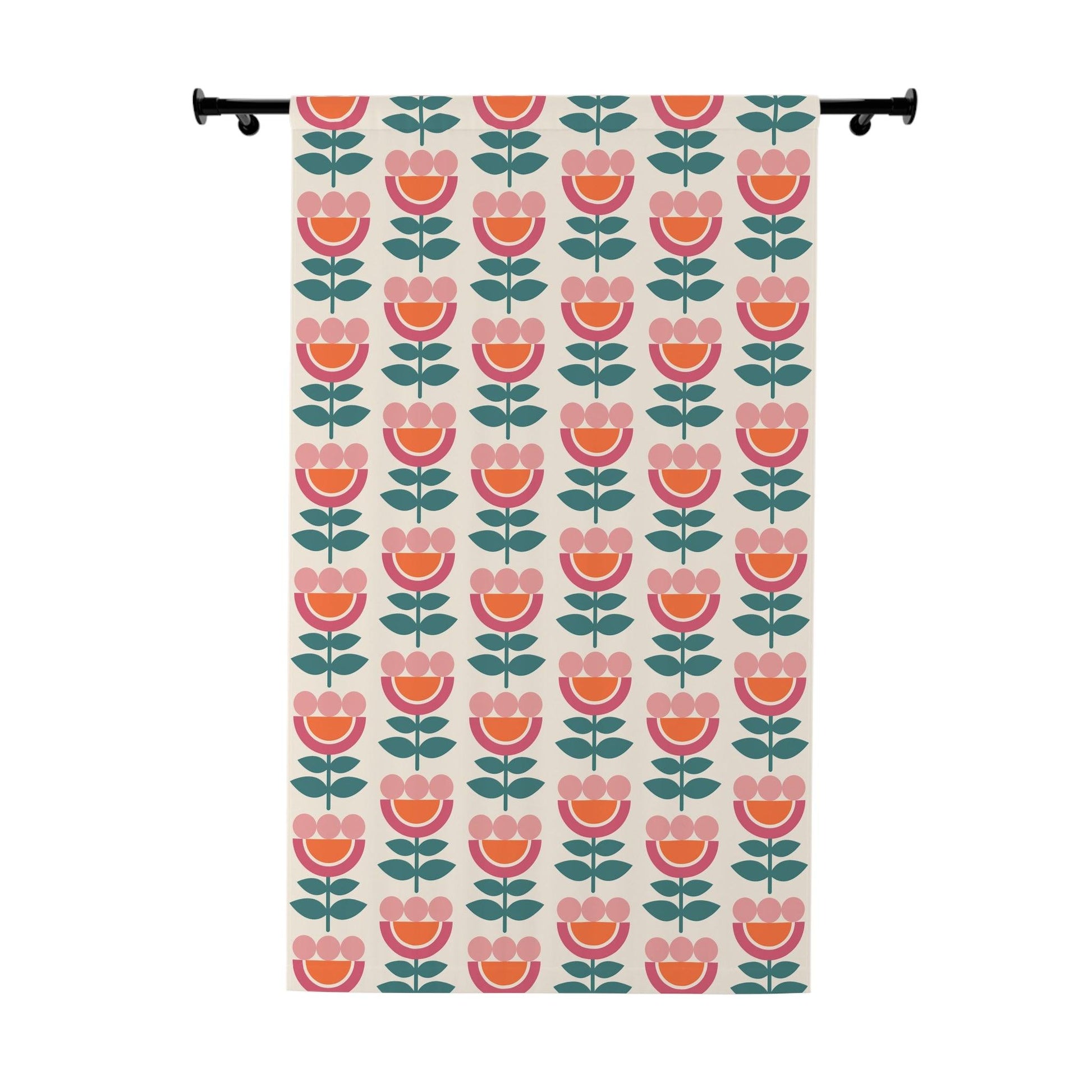 Retro Danish Flowers Scandinavian Mid Century Modern Multicolor Blackout Window Curtain