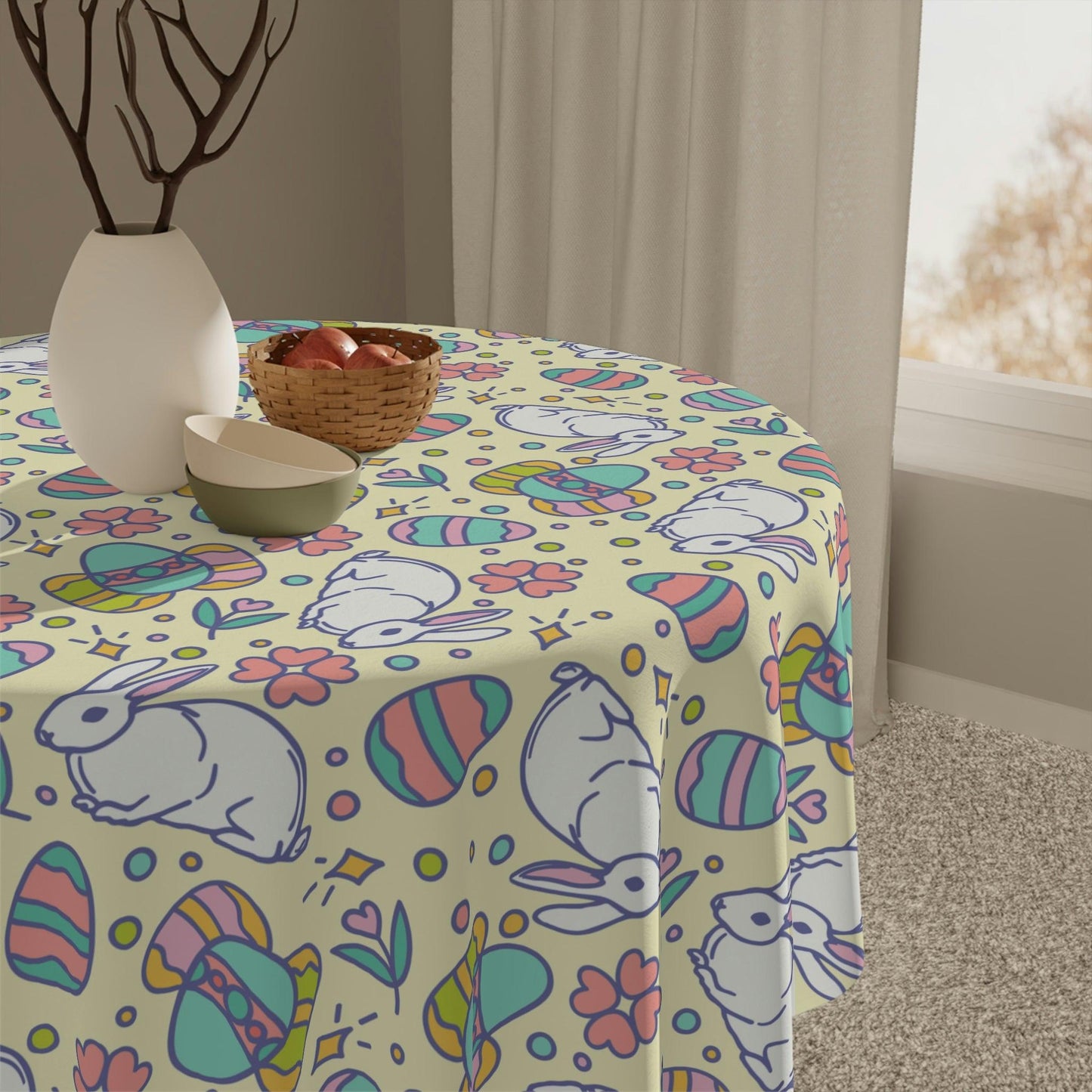 Bring Easter decor to your table with this sweet and whimsical tablecloth, done in a retro pastel mcm color palette! Whether you're hosting a family dinner, an Easter brunch, or just want to add a touch of festive nostalgia to your home, this tablecloth is an excellent choice. With its sweet retro style design and durable construction, this tablecloth will become a cherished part of your Easter traditions for years to come. *Printed in and shipped from the UK - Allow for 2 weeks shipping, after production.