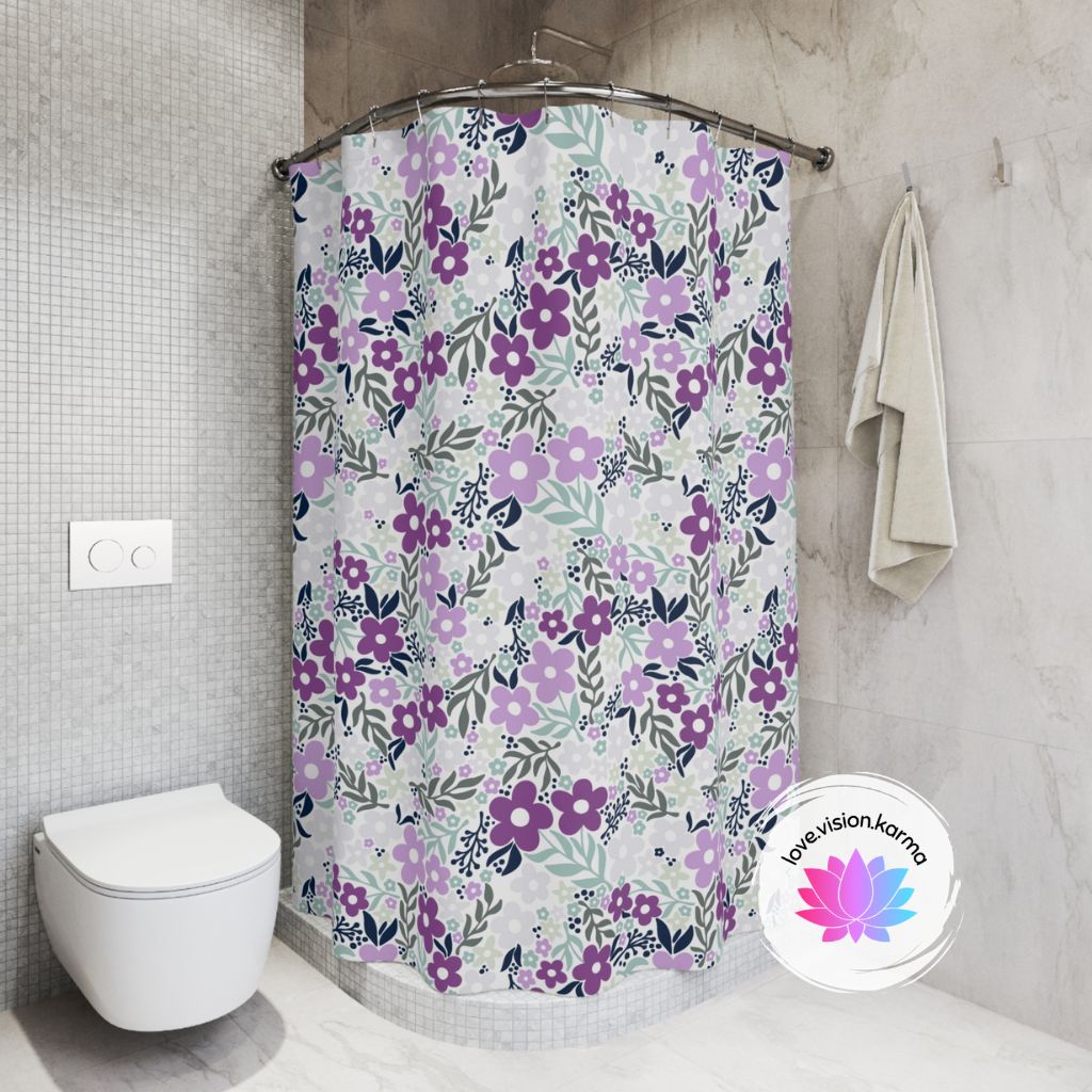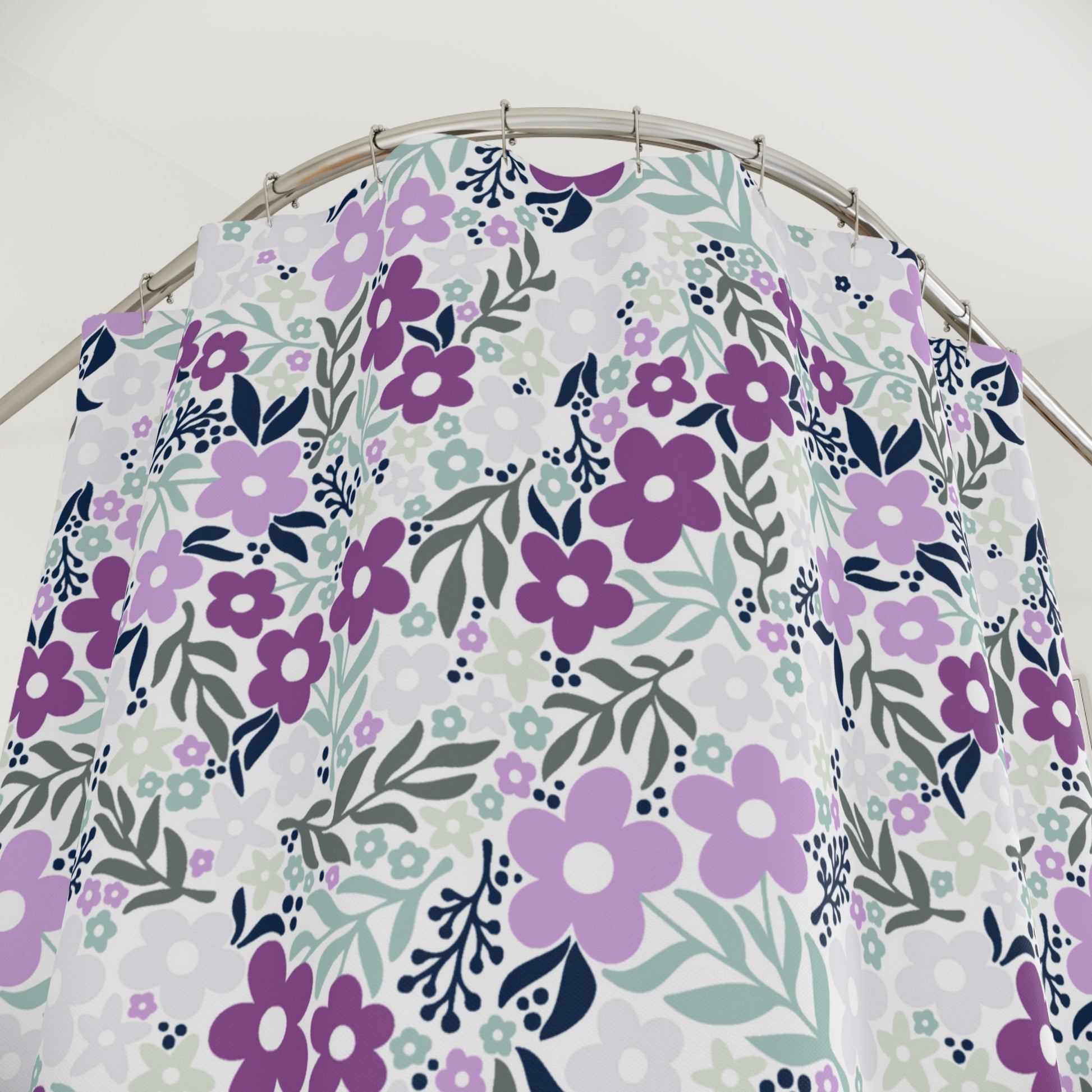 The minimalist and understated, yet elegant and eye-catching Scandi floral design, with a soft purple color palette, makes this shower curtain an easy backdrop for bathrooms of any style, from modern, mcm to bohemian and cottagecore! Matching bath mat available.