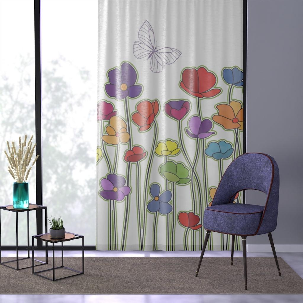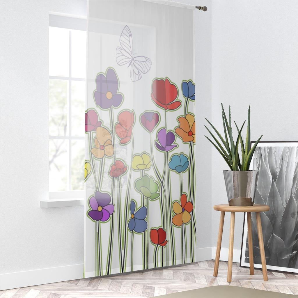 Retro Flowers & Butterfly Colorful Sheer Window Curtain