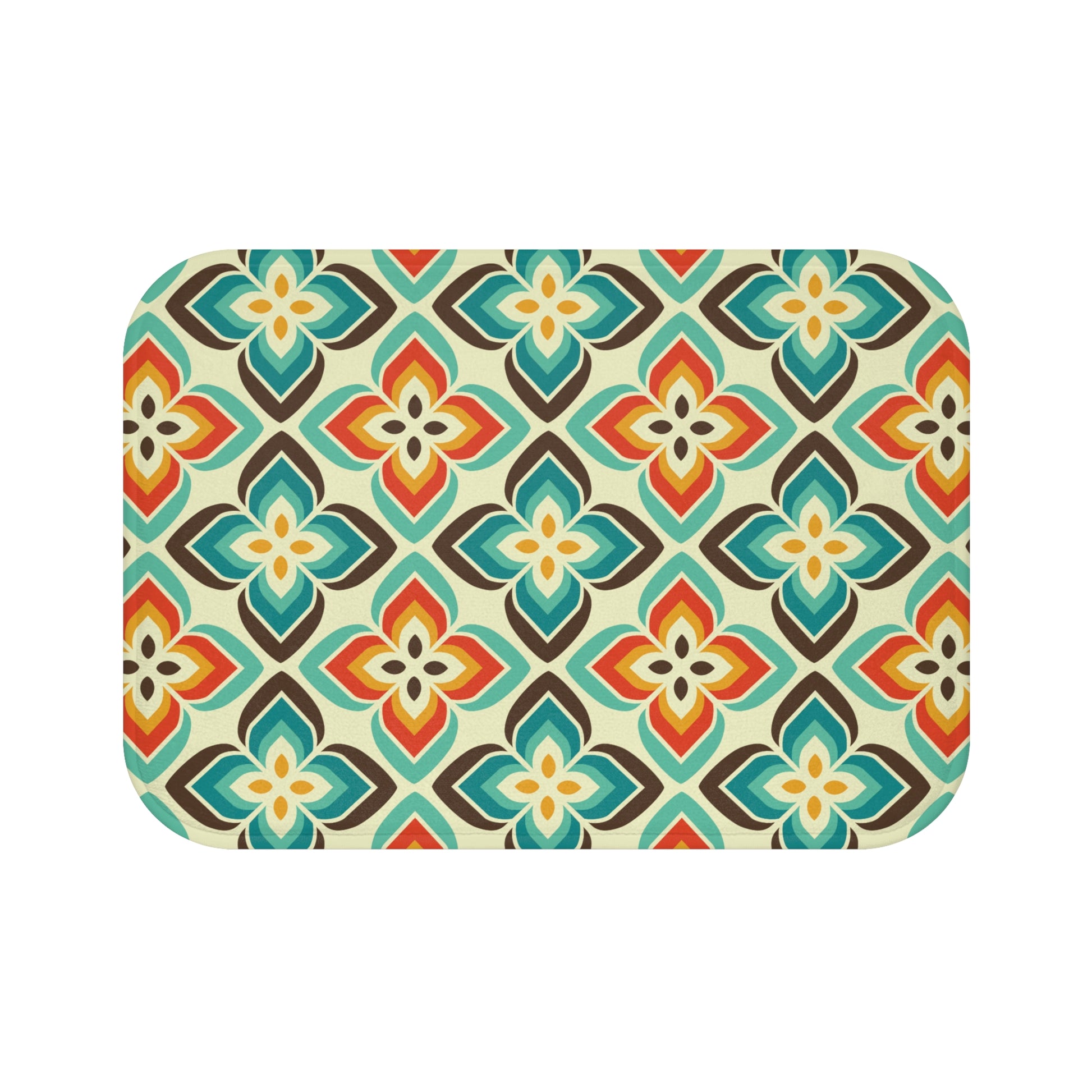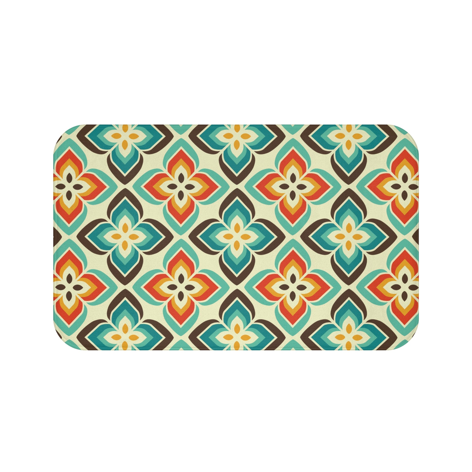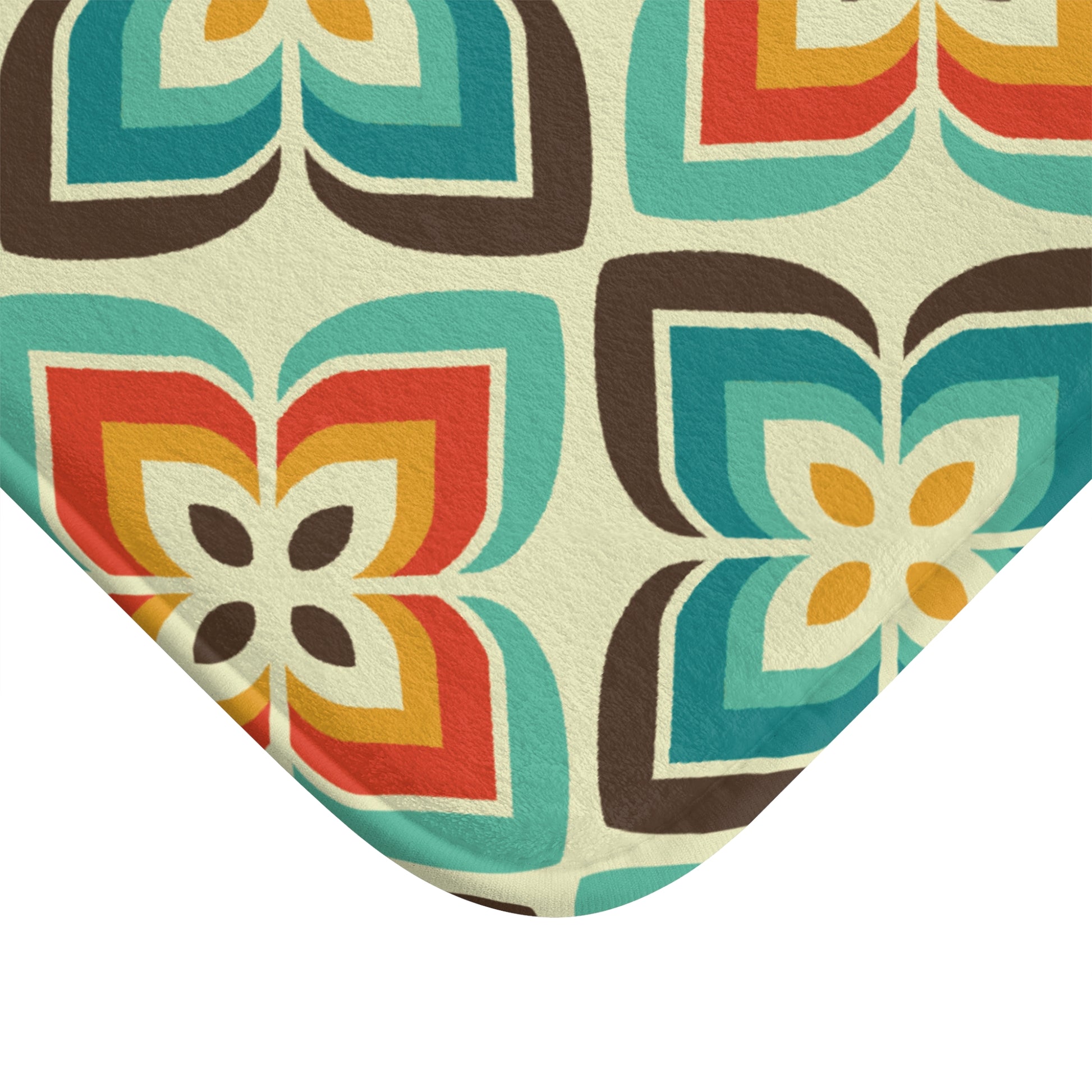 Retro 50s 60s Flowers Mid Century Blue & Orange Bath Mat