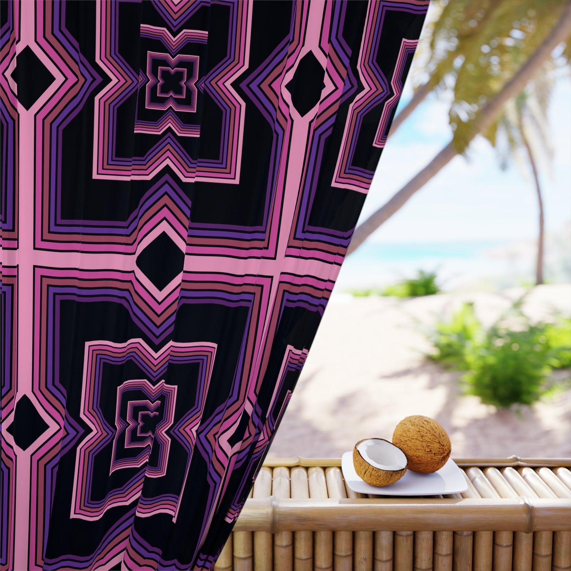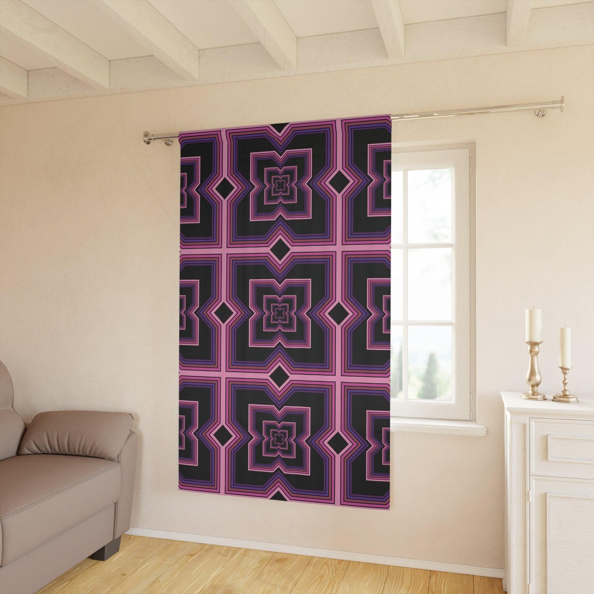 Retro Futuristic 80s 90s Vaporwave Pink, Black & Purple Blackout Window Curtain Panel