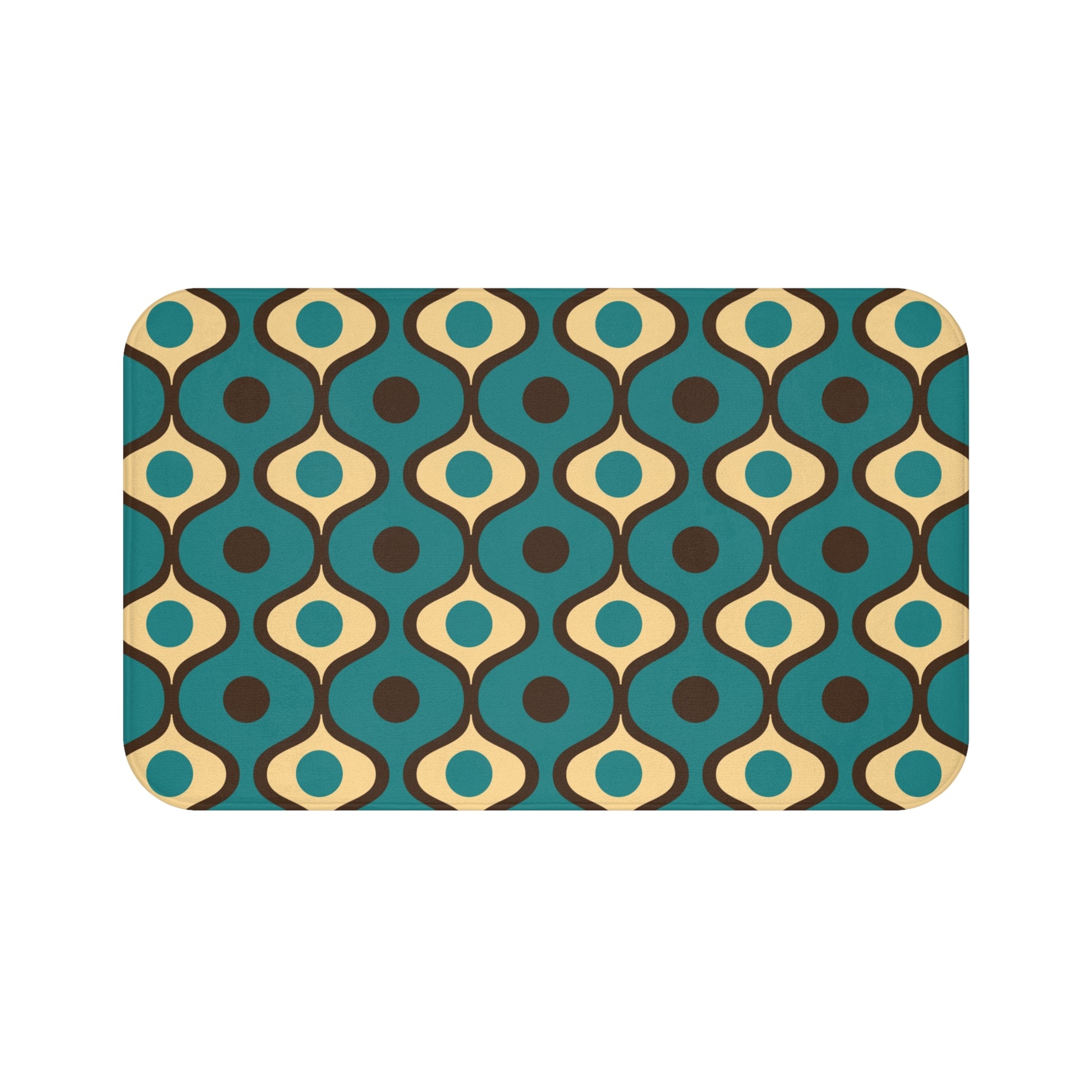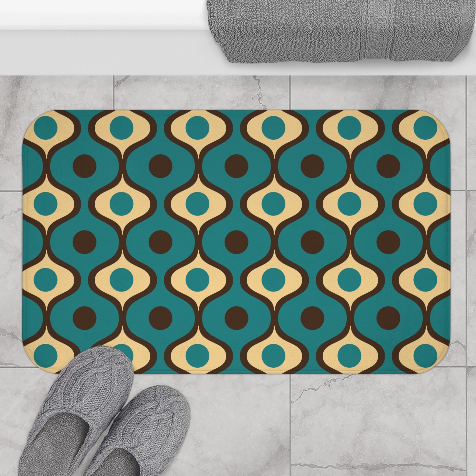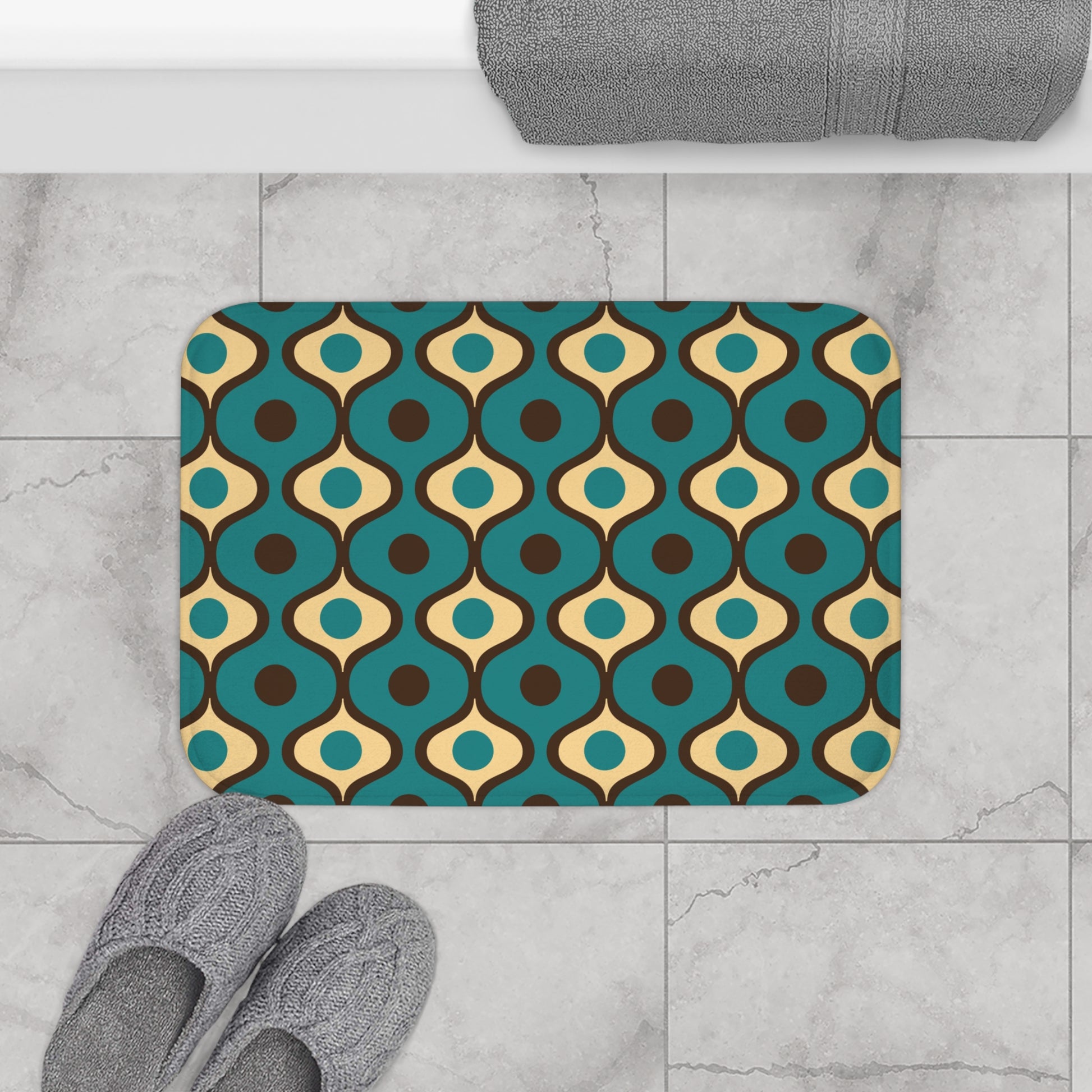 Retro 60s 70s Groovy Geometric Waves Mid Century Mod Blue & Brown Bath Mat