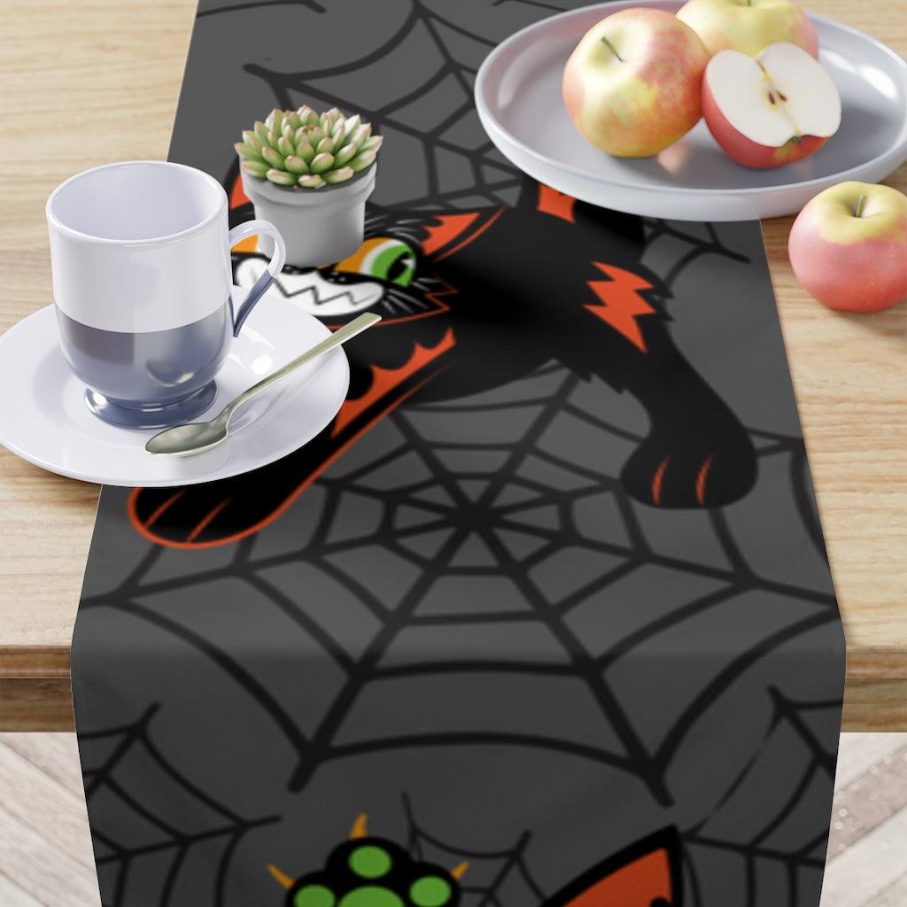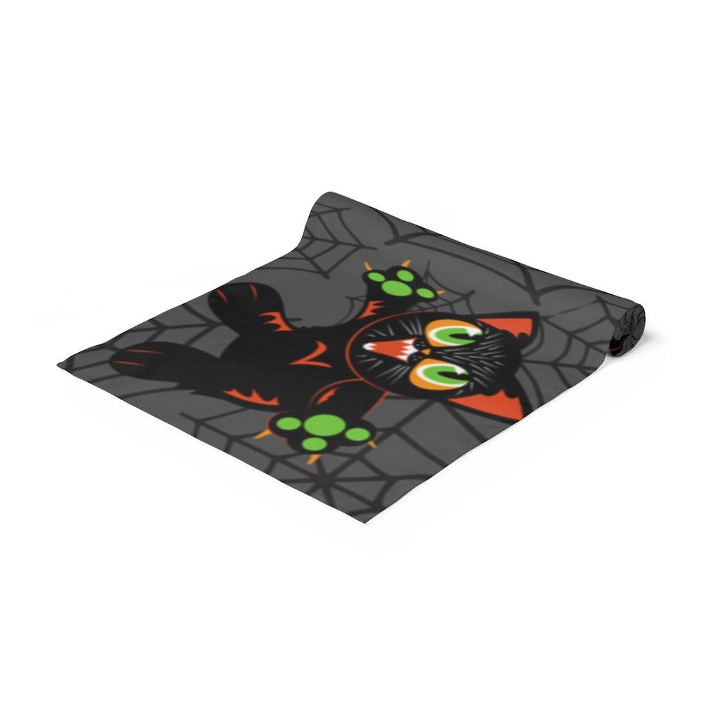 Retro Mid Century Black Cats Halloween Table Runner