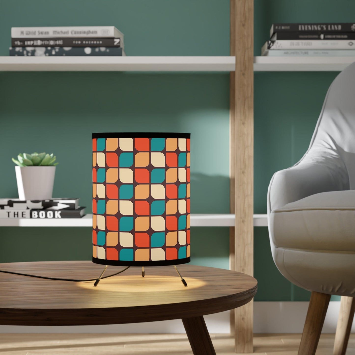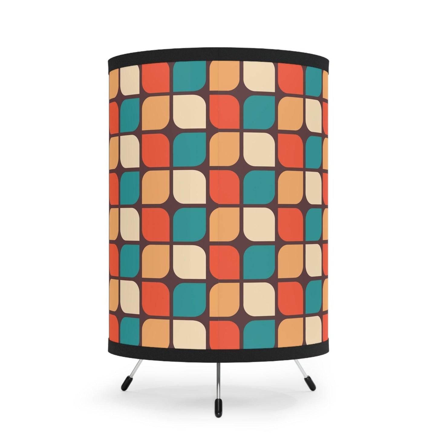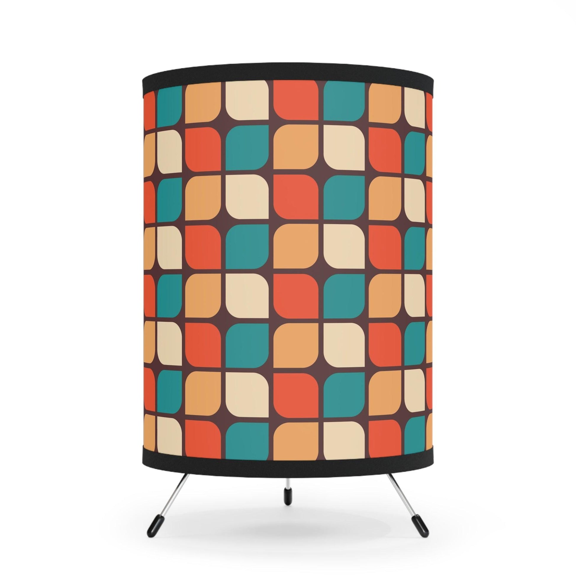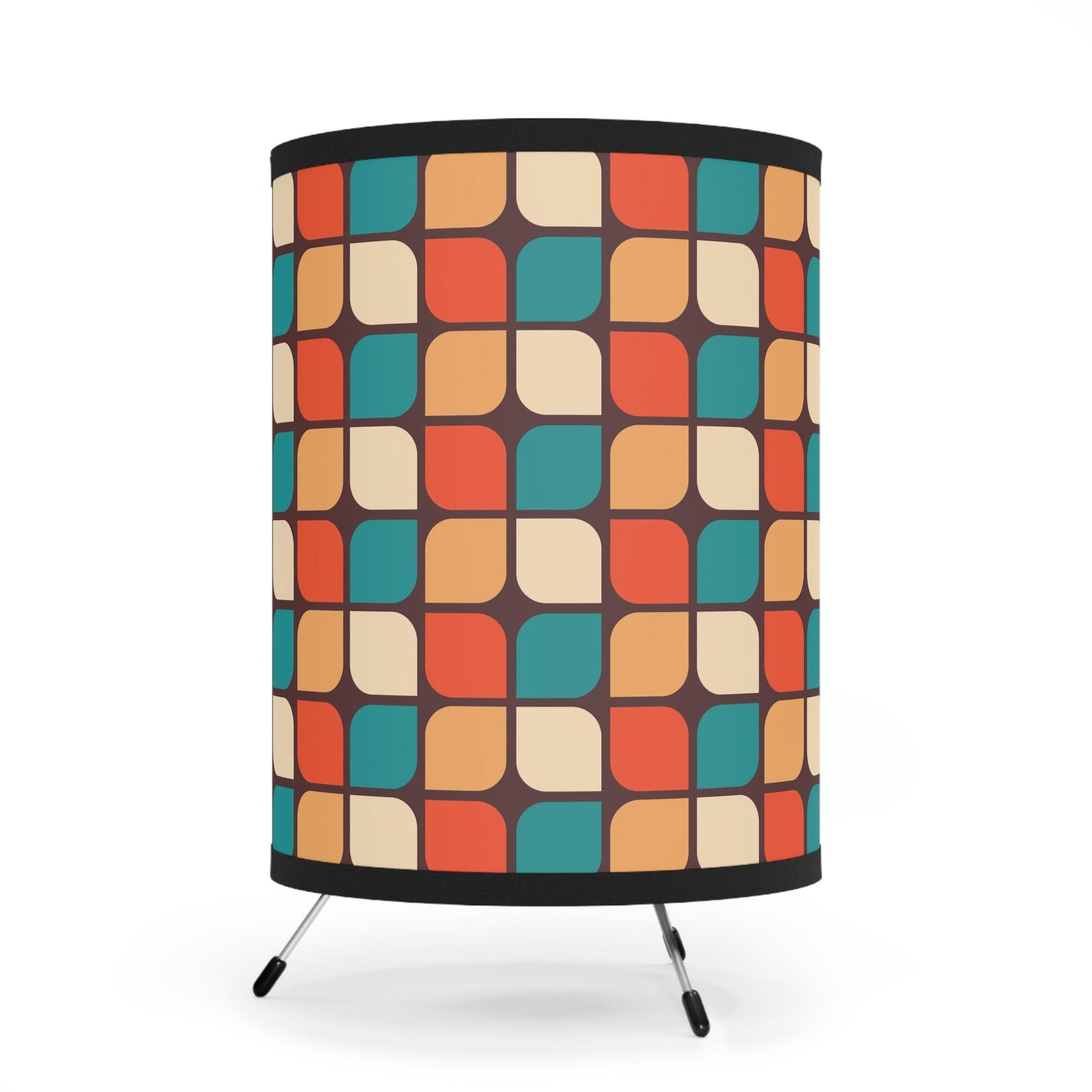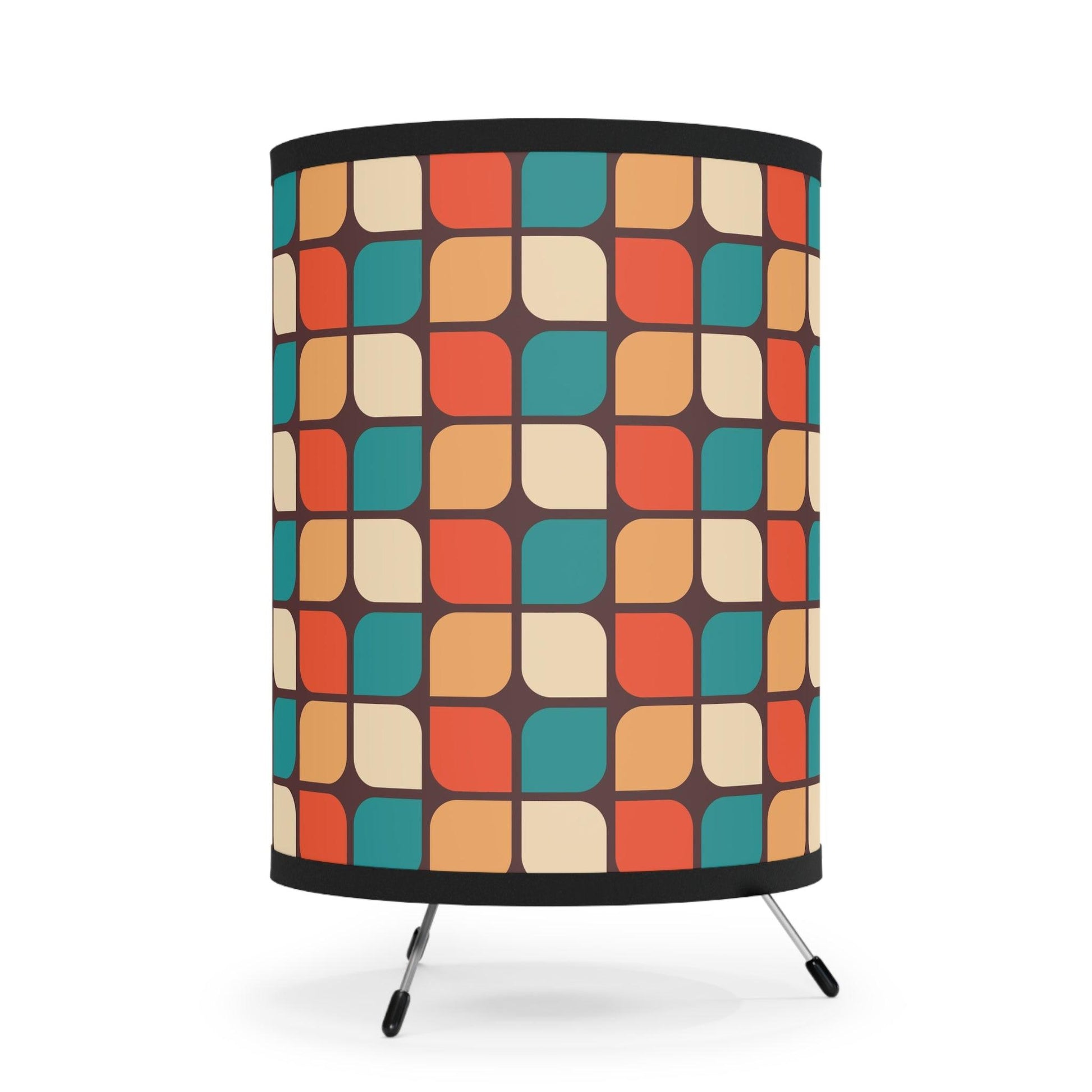 Our tabletop tripod lamp blends the charm of mid century design with modern functionality. The colorful 60s and 70s geometric design lampshade combined with the soft, warm glow of the light is perfect for adding a retro vibe to any space!