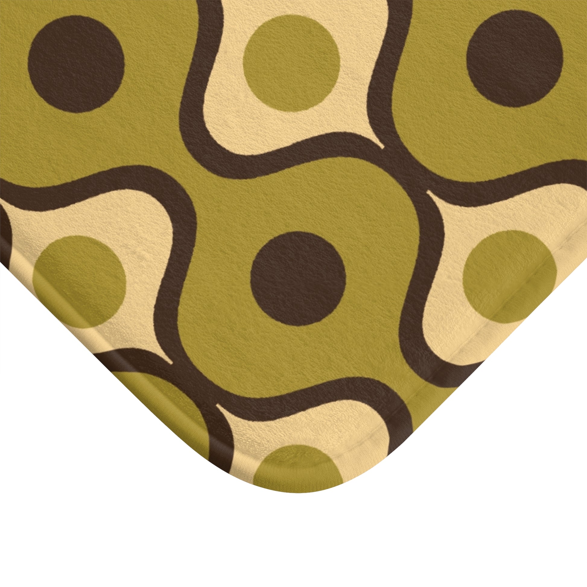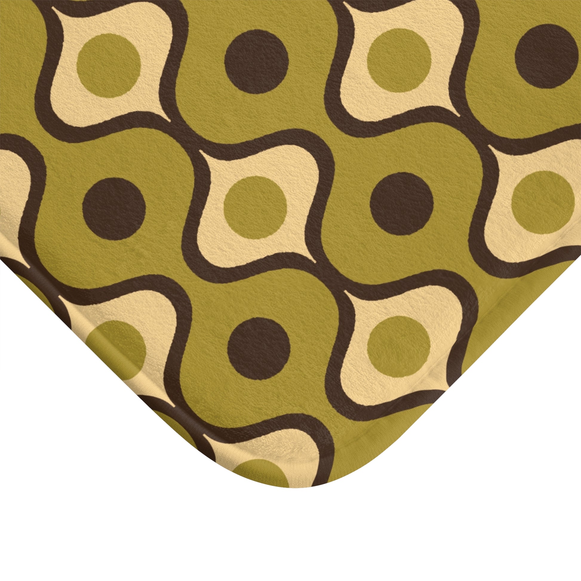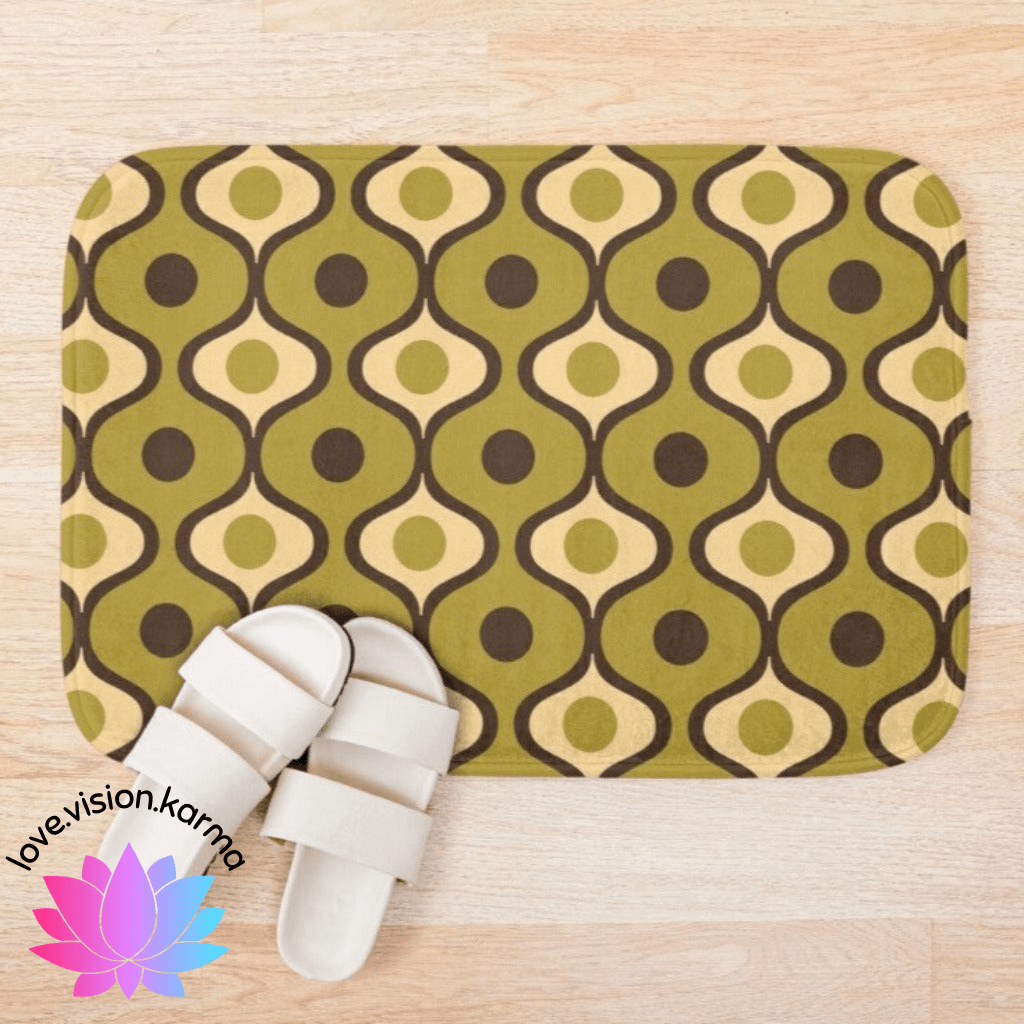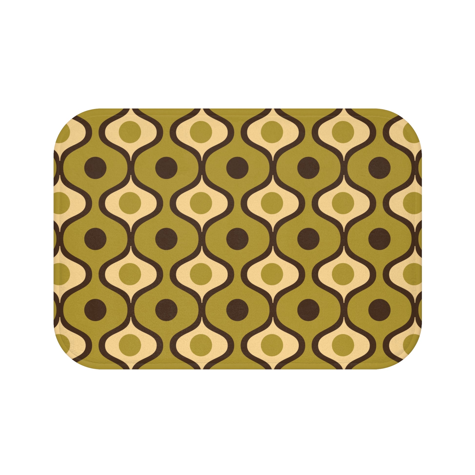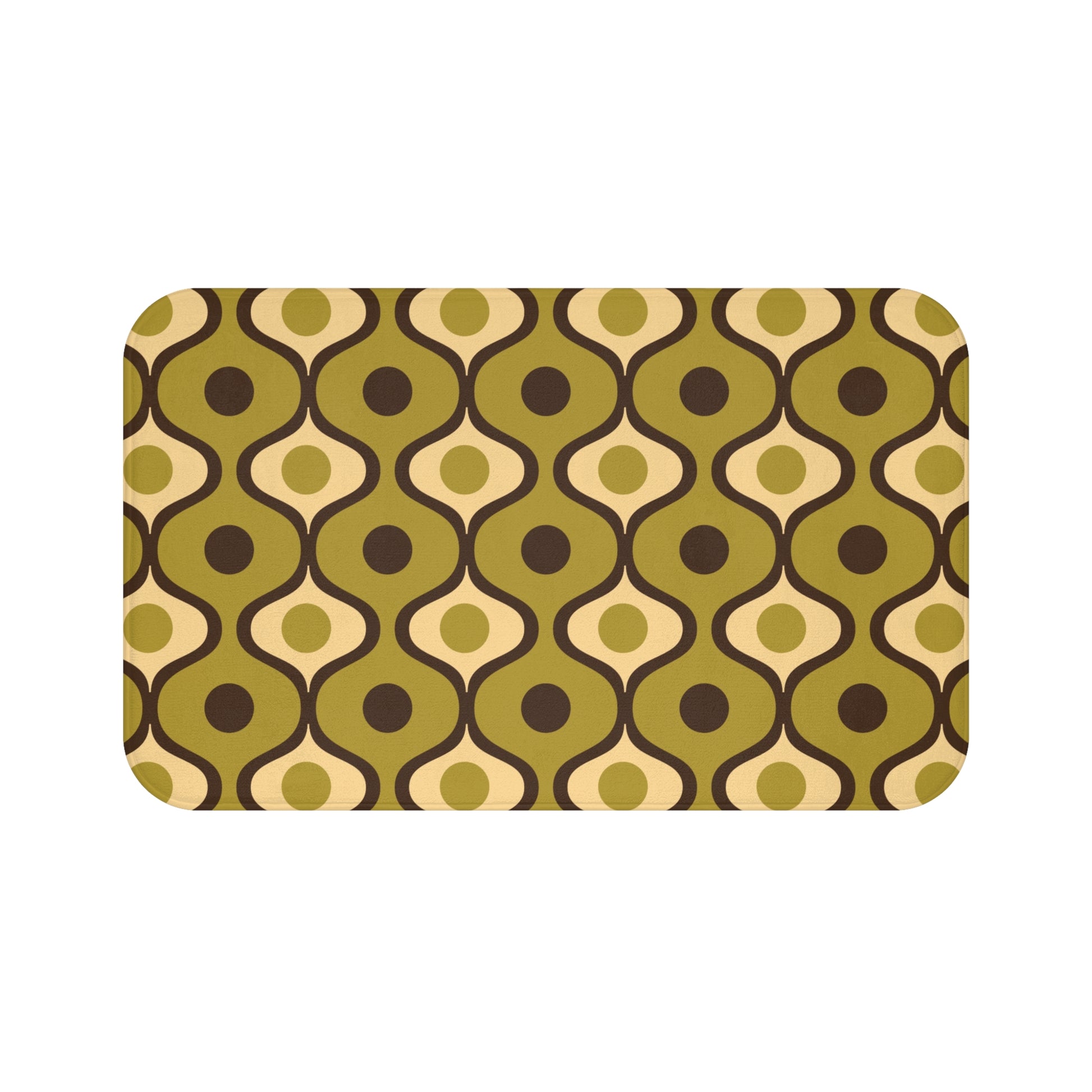 Retro 60s 70s Mid Century Geometric Waves Olive Green Bath Mat