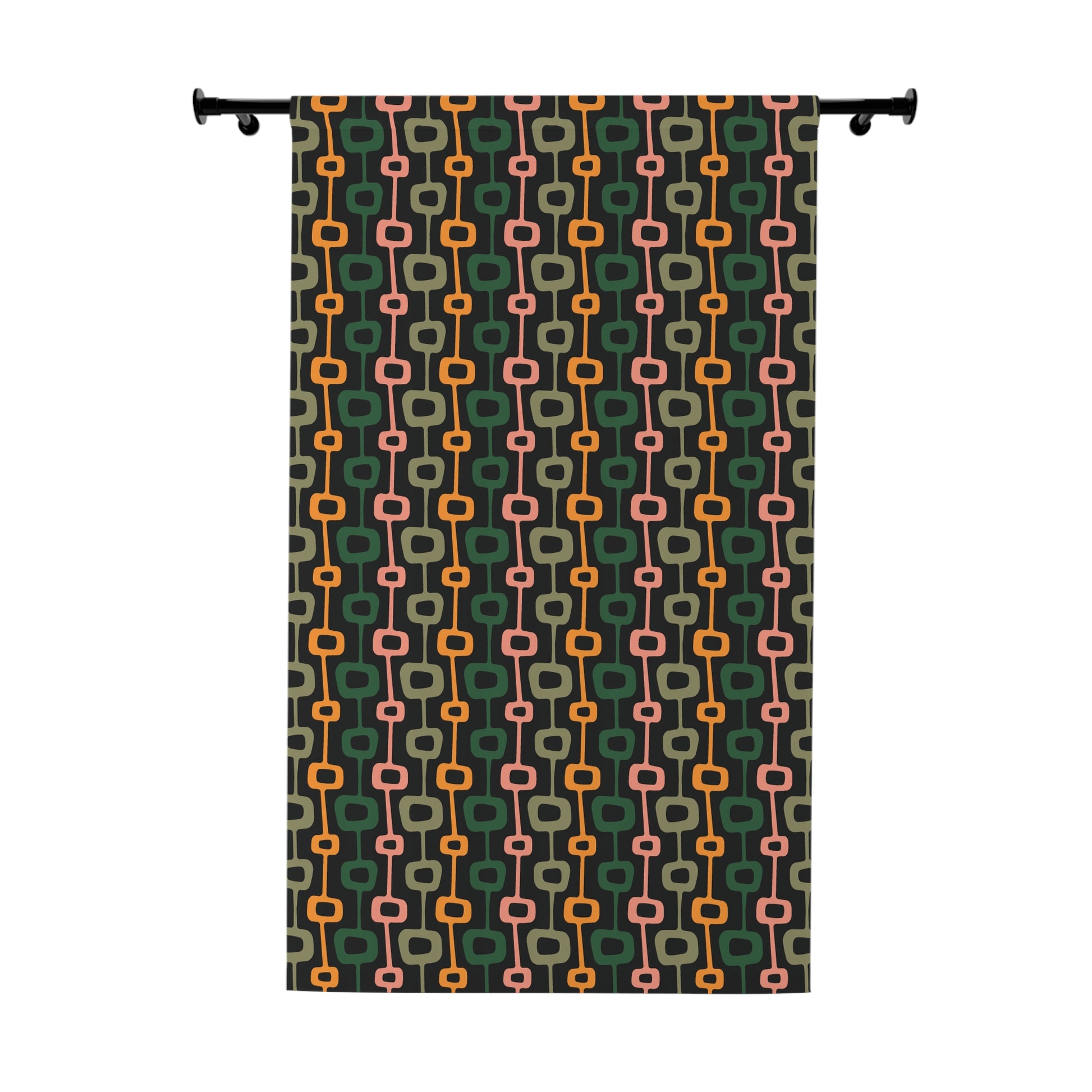 Retro Mid Century Mod Abstract Black, Green & Mustard Blackout Window Curtain