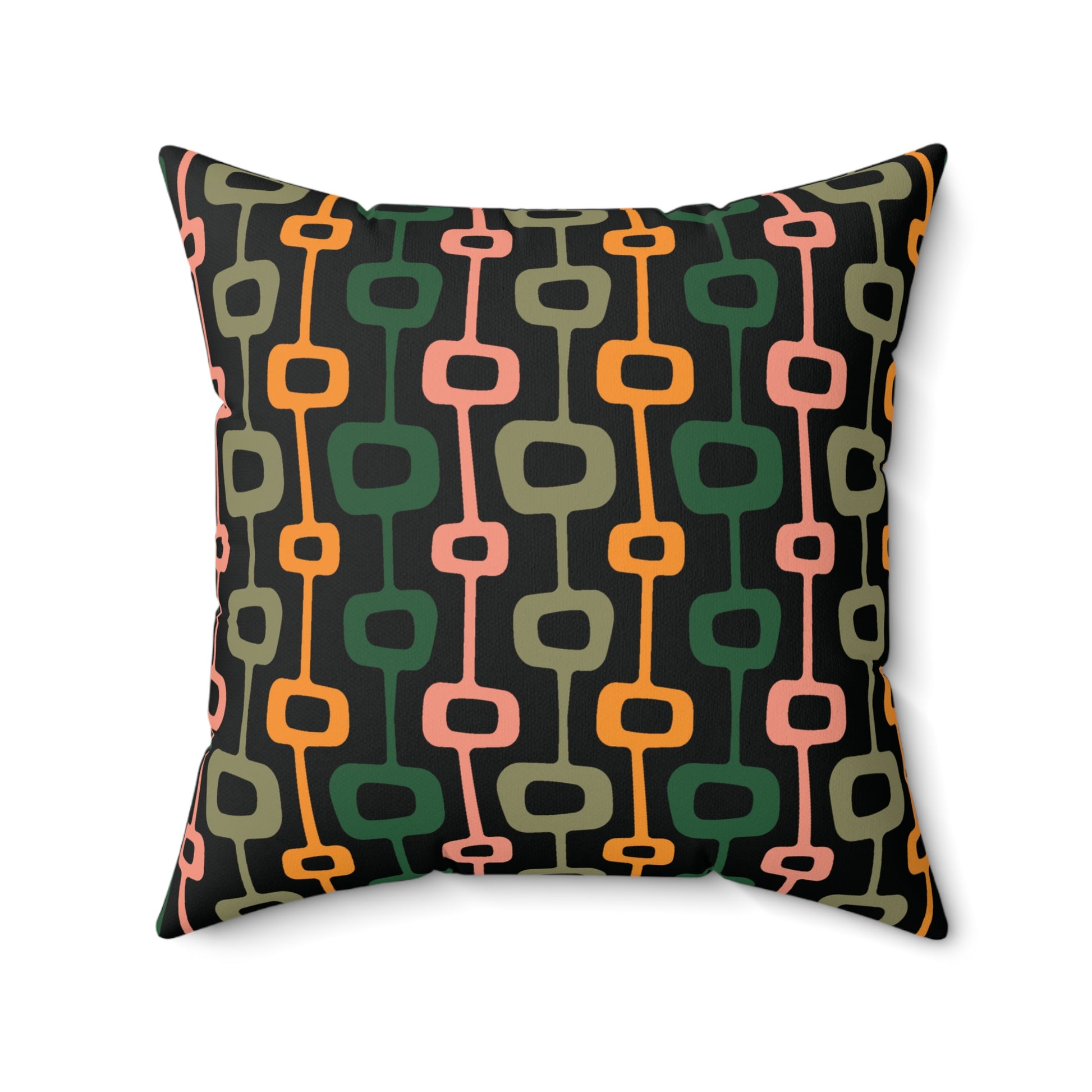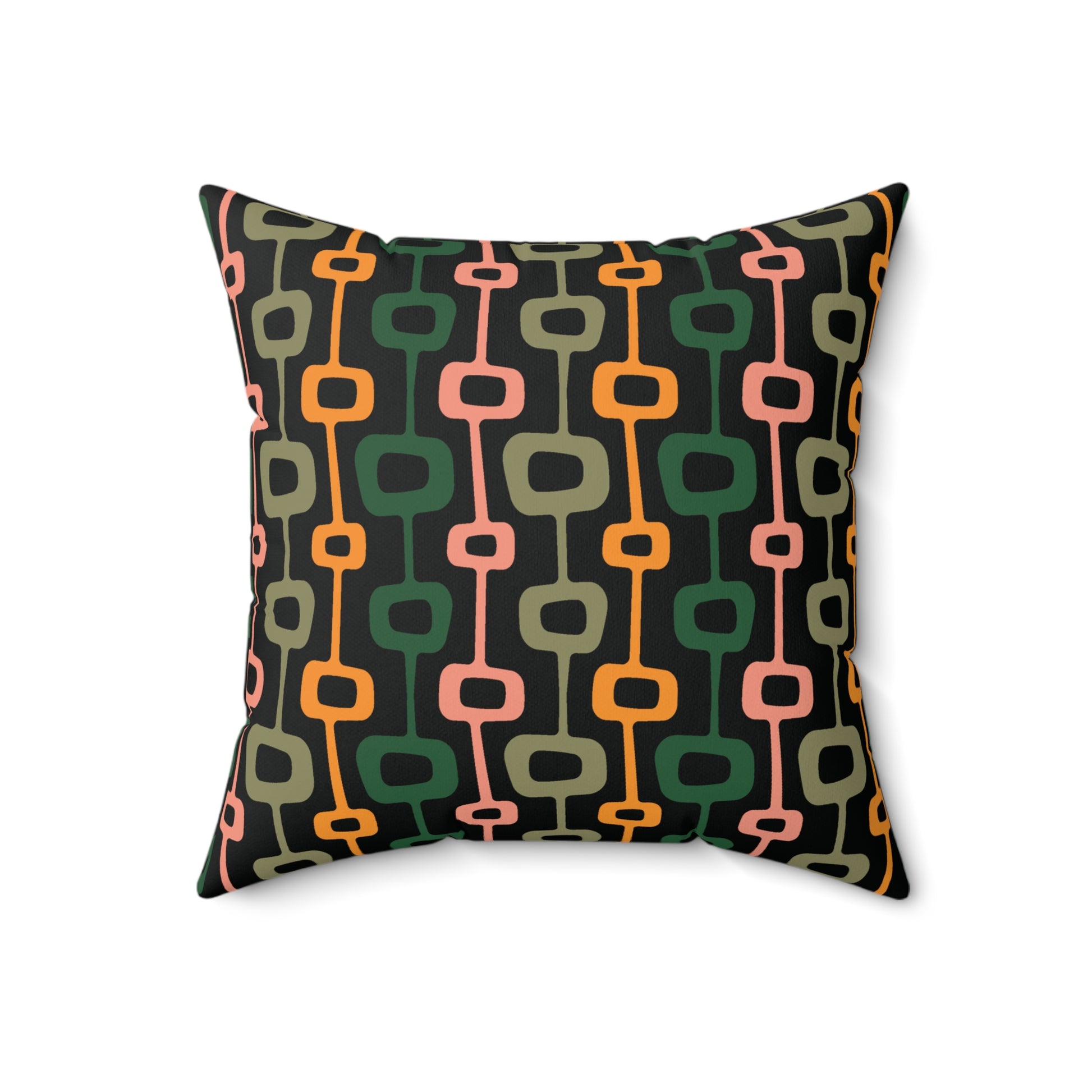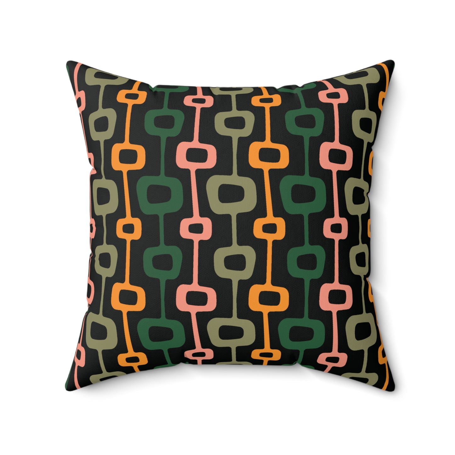 Retro 60s 70s Mid Century Mod Abstract Black, Green, Mustard Throw Pillow
