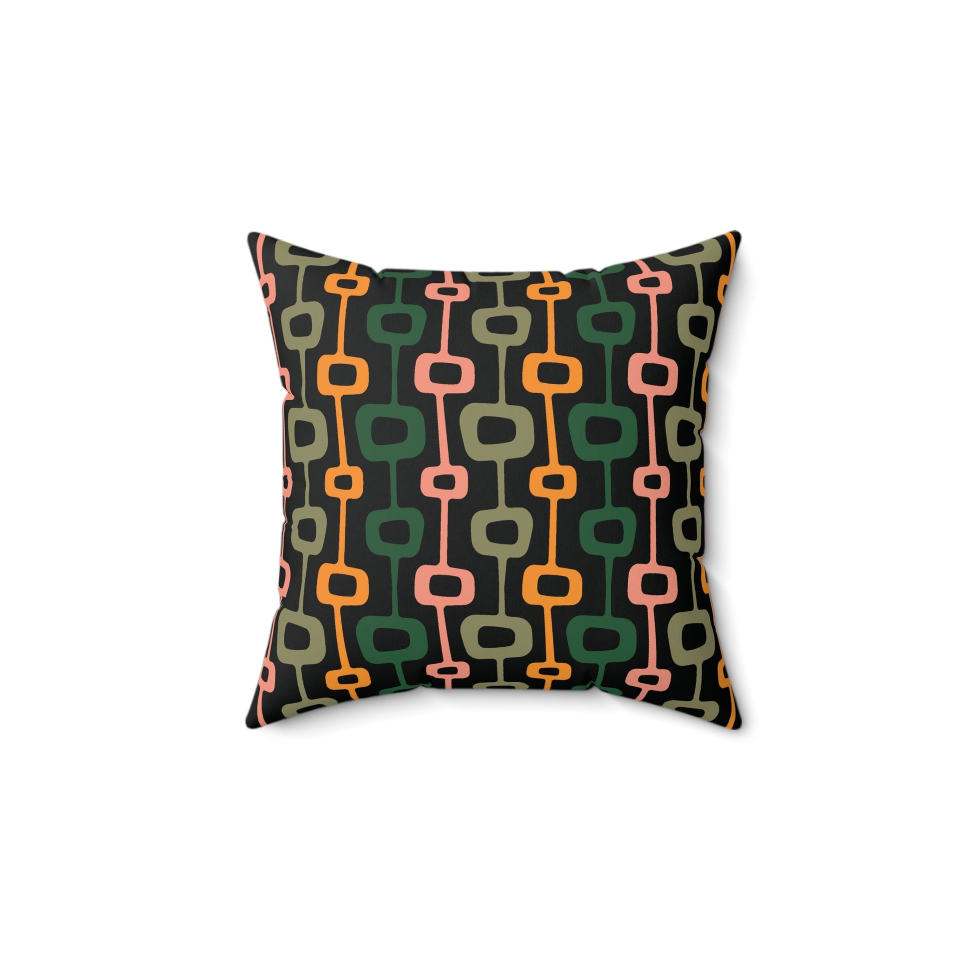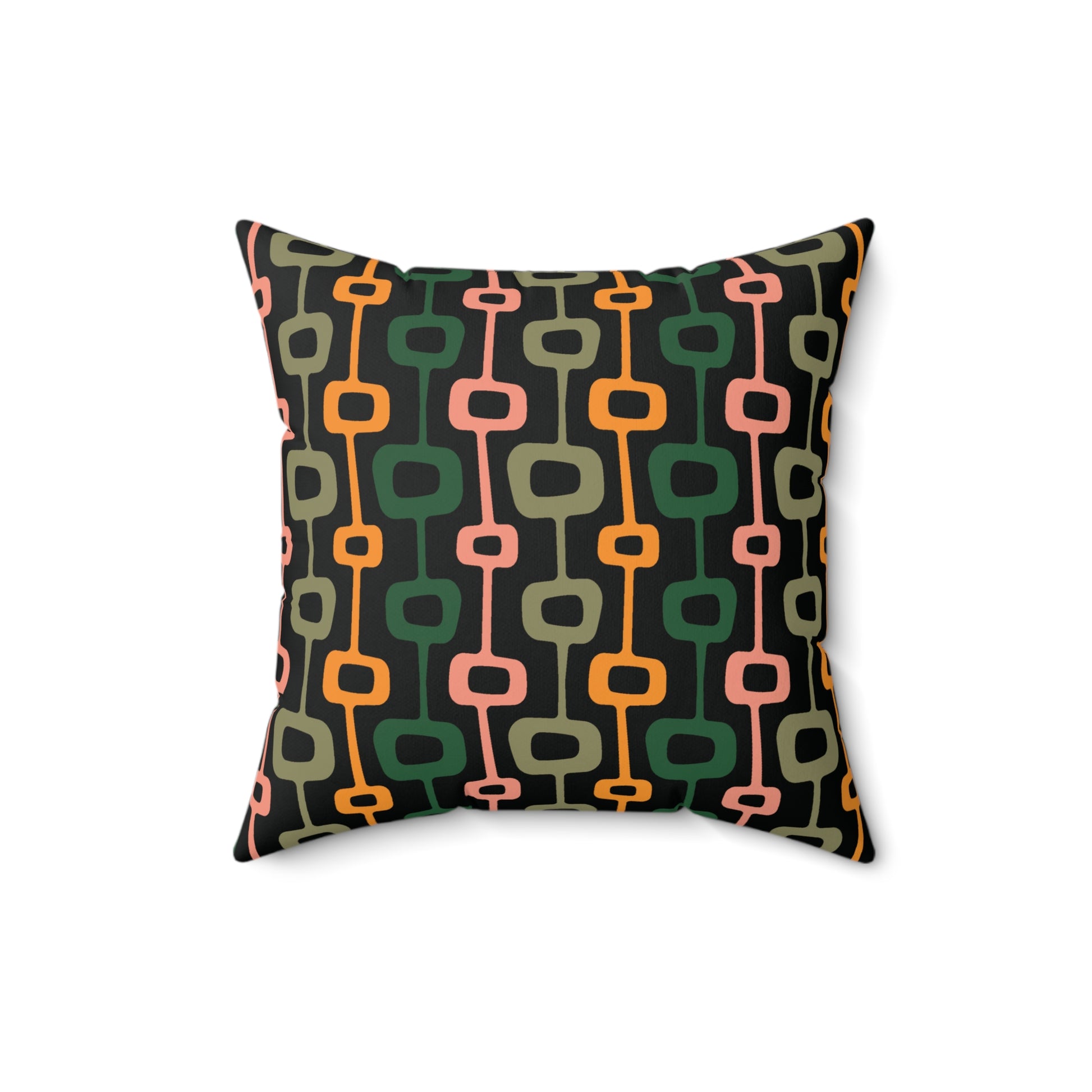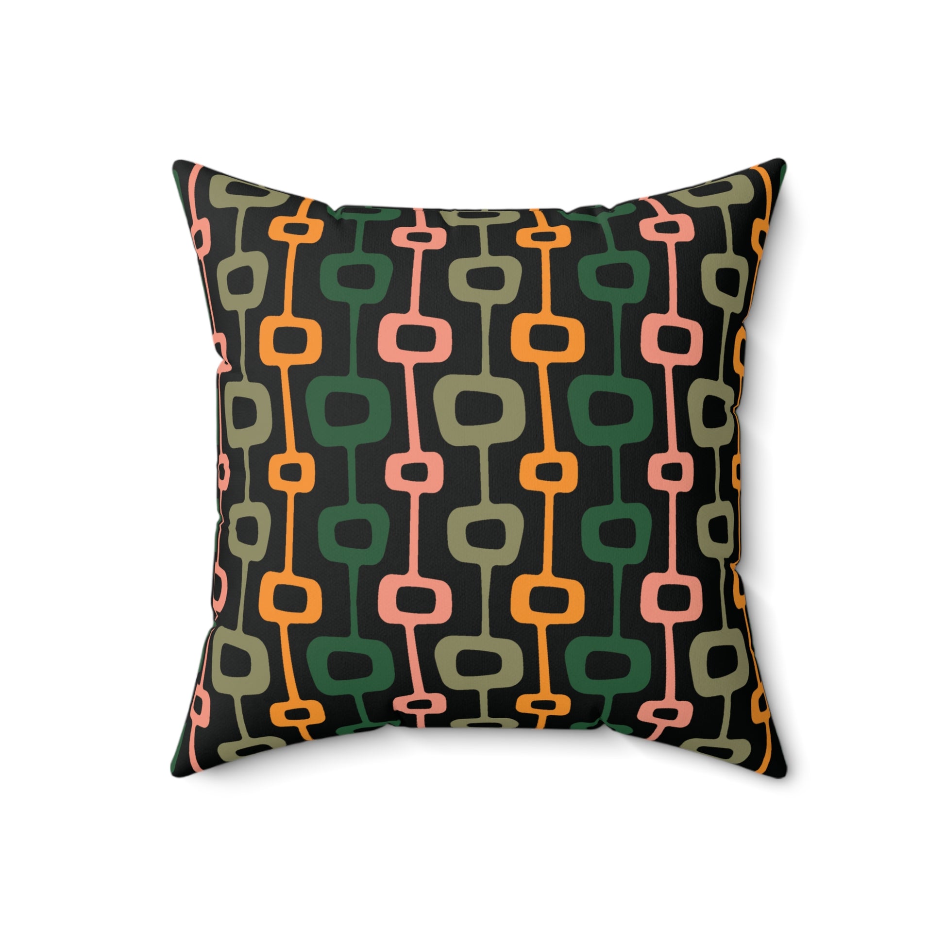 Retro 60s 70s Mid Century Mod Abstract Black, Green, Mustard Throw Pillow