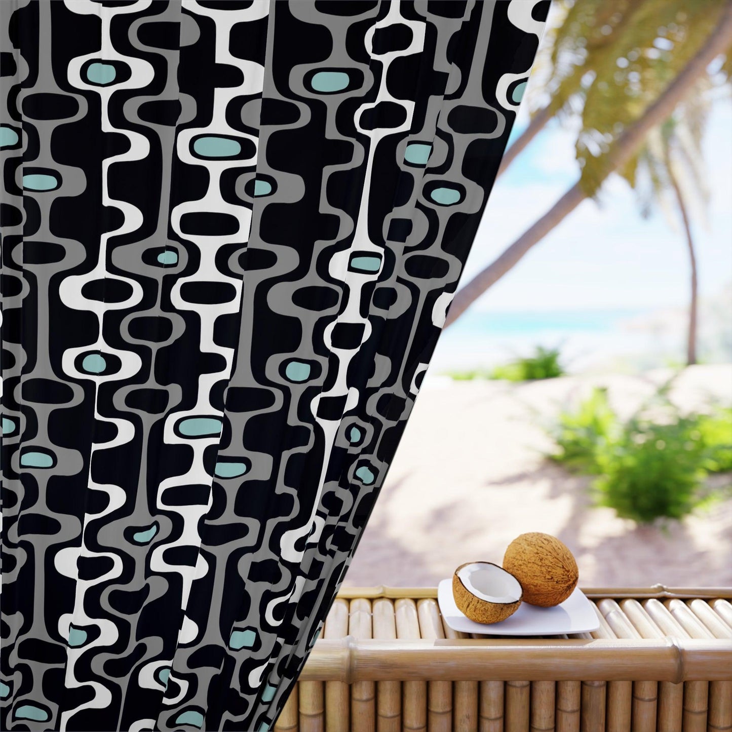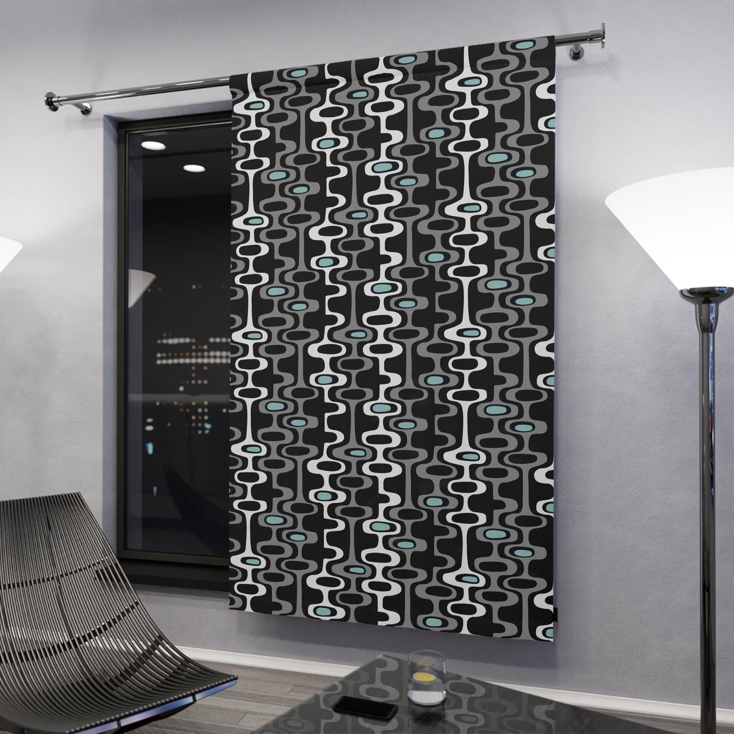 Retro Mid Century Mod Black, Gray & Blue Blackout Window Curtain