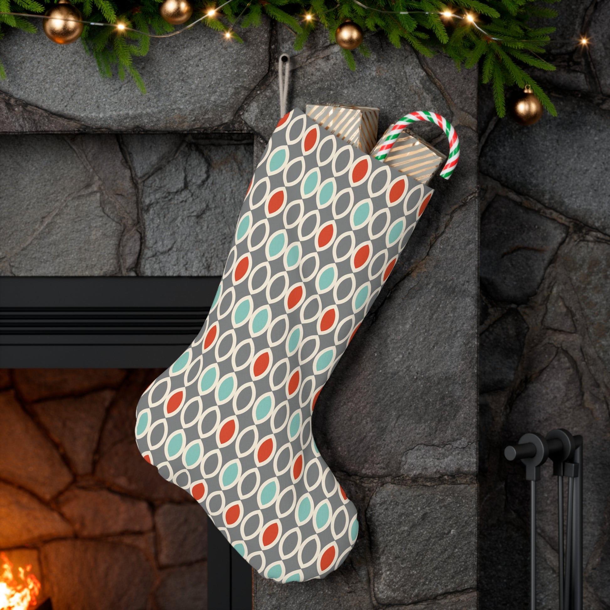 Retro Mid Century Mod Ovals, Gray, Blue and Orange Christmas Stocking
