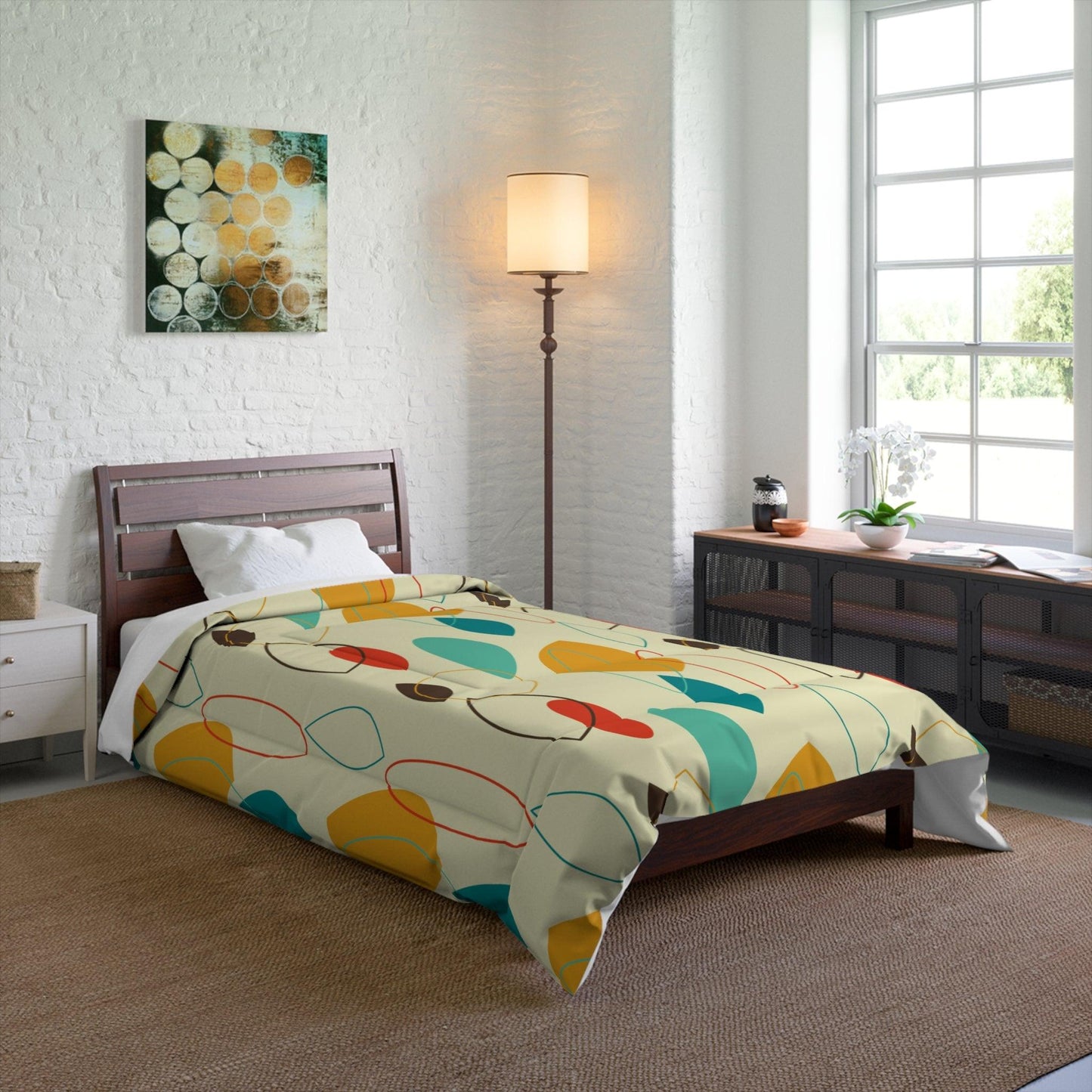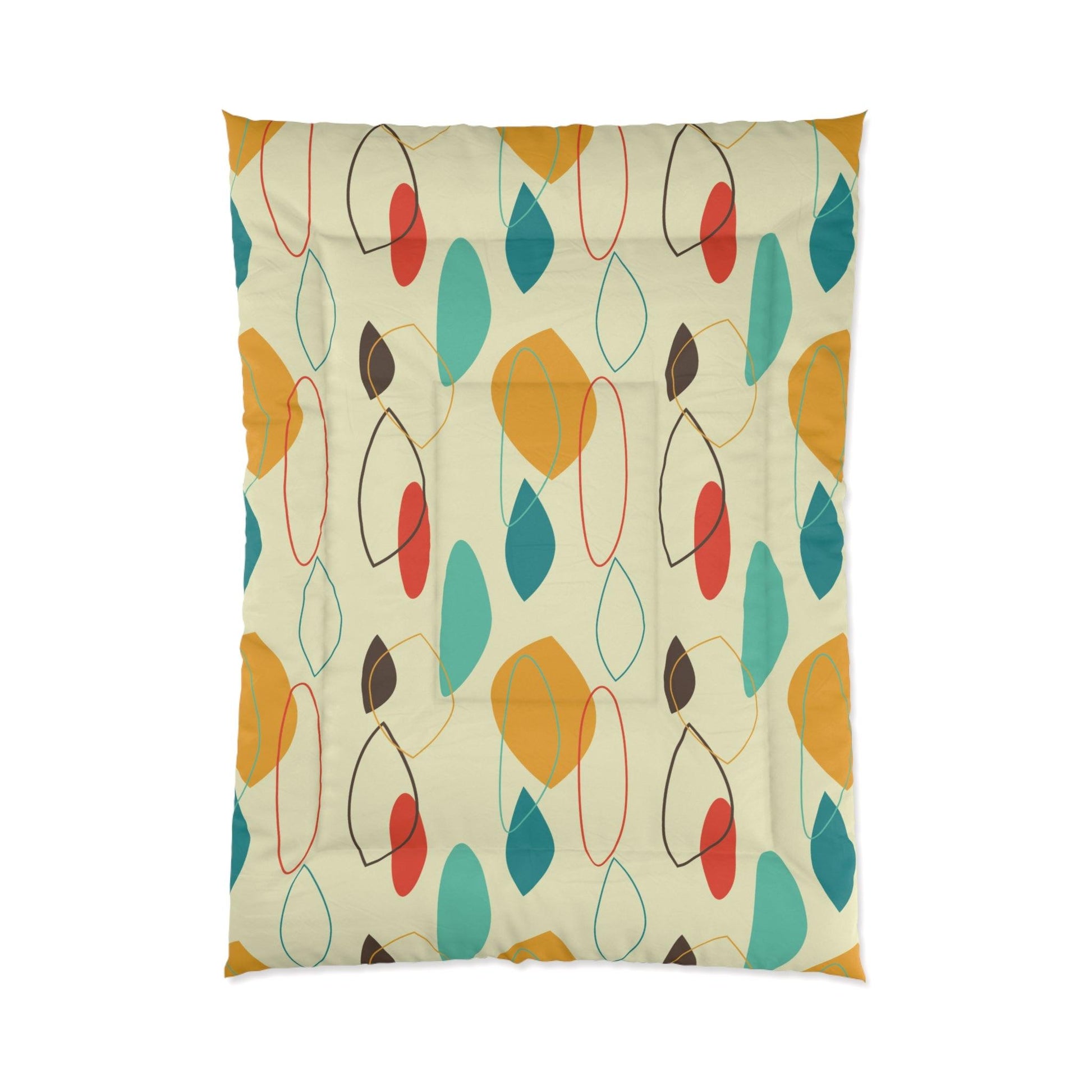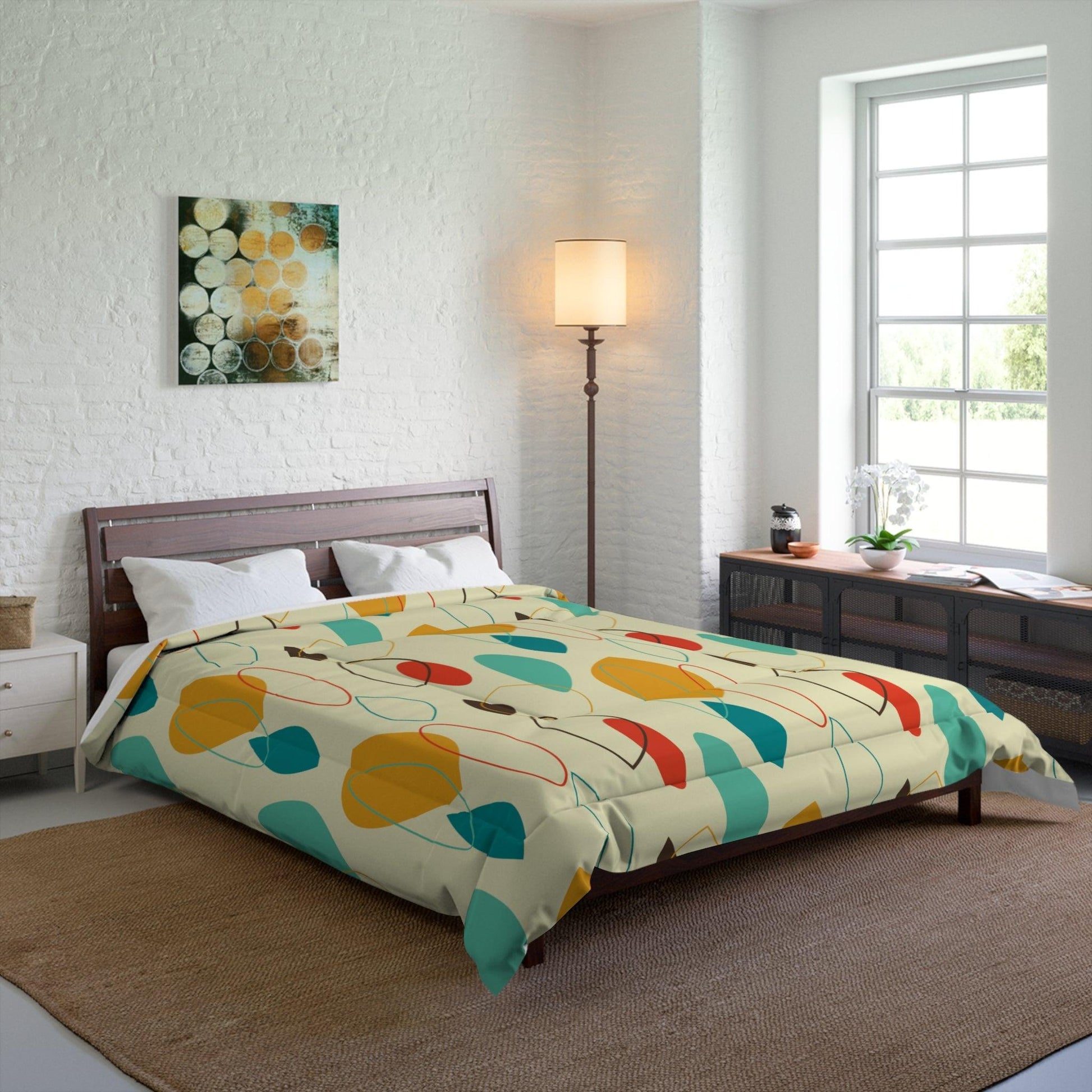 The abstract mid century mod design gives this lightweight comforter a lot of fun, retro style with a 1950s and 1960s color palette! This gorgeous comforter looks like it came right out of the mcm era, which is perfect for your retro aesthetic!