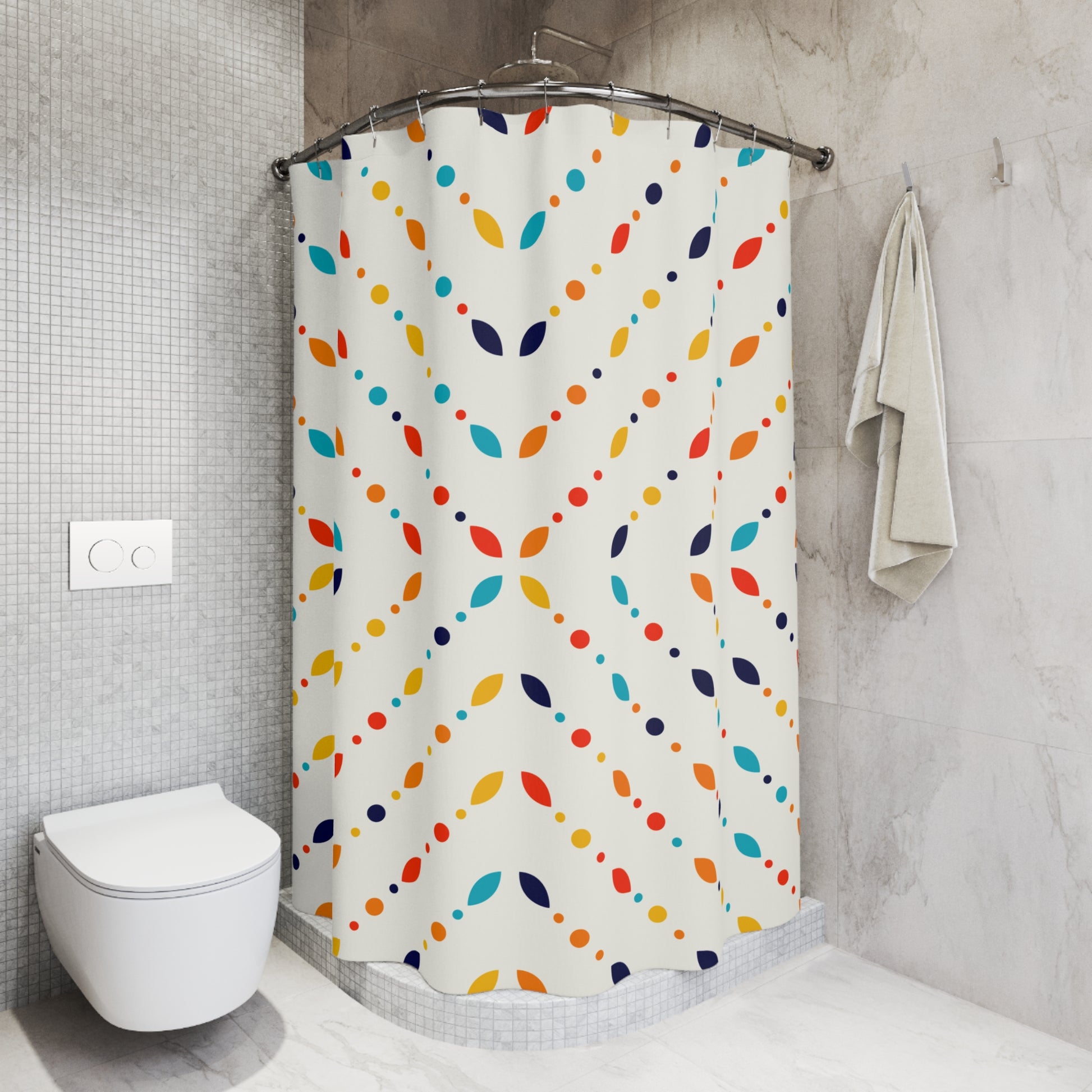 This shower curtain with its colorful and chic minimalist design, will deliver some serious mid century flair to your bathroom! Prepare to have the most stylish bathroom in the neighborhood! Changing your shower curtain is an easy way to bring some retro mcm style to your bathroom. Matching bath mat available.