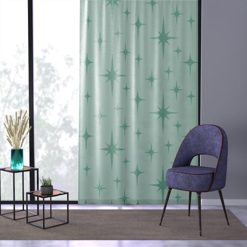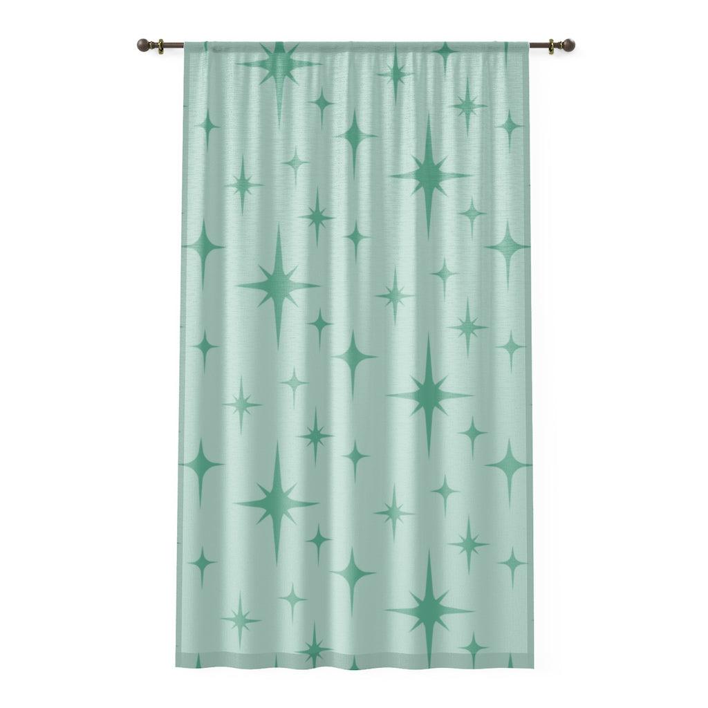 Retro Mid Century Starburst Mint Green Sheer Window Curtain