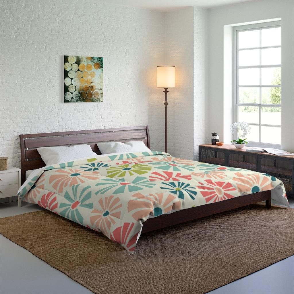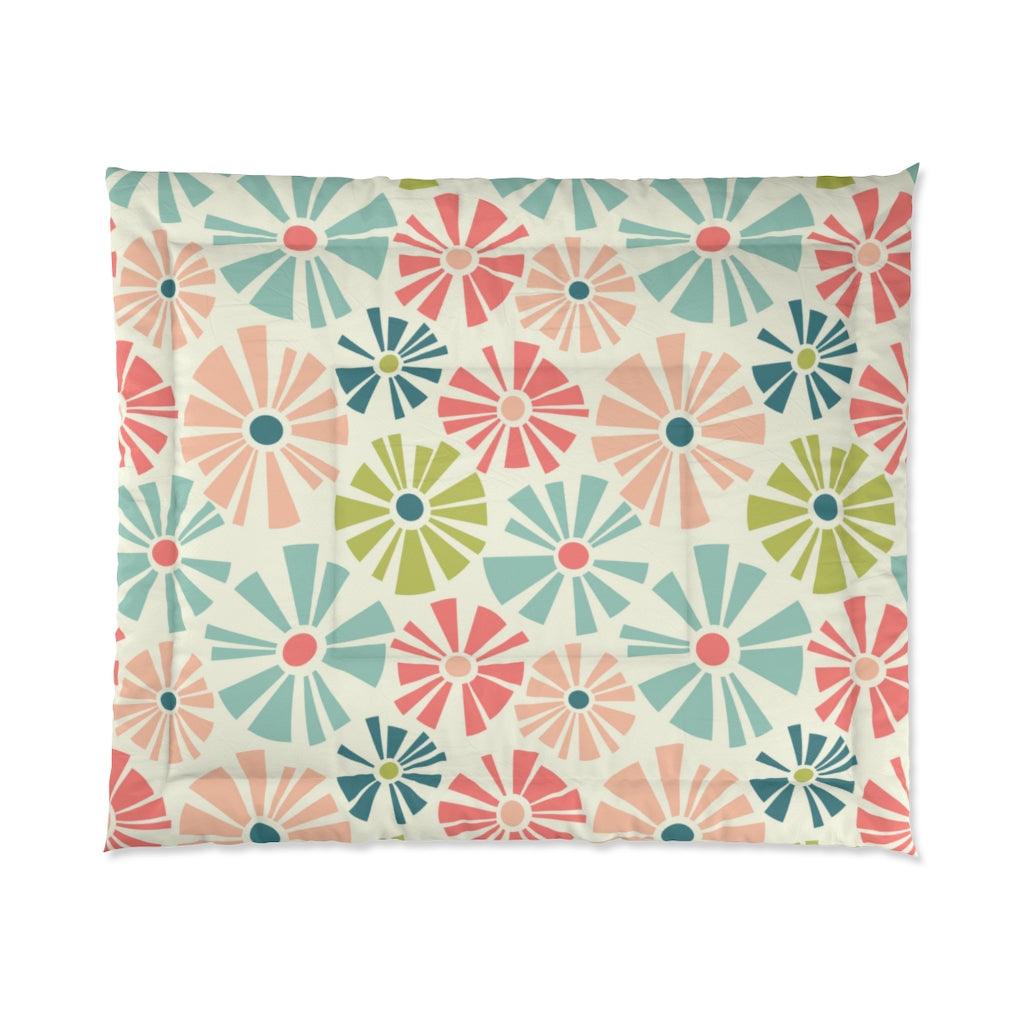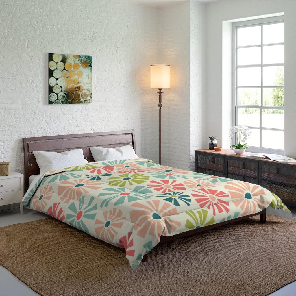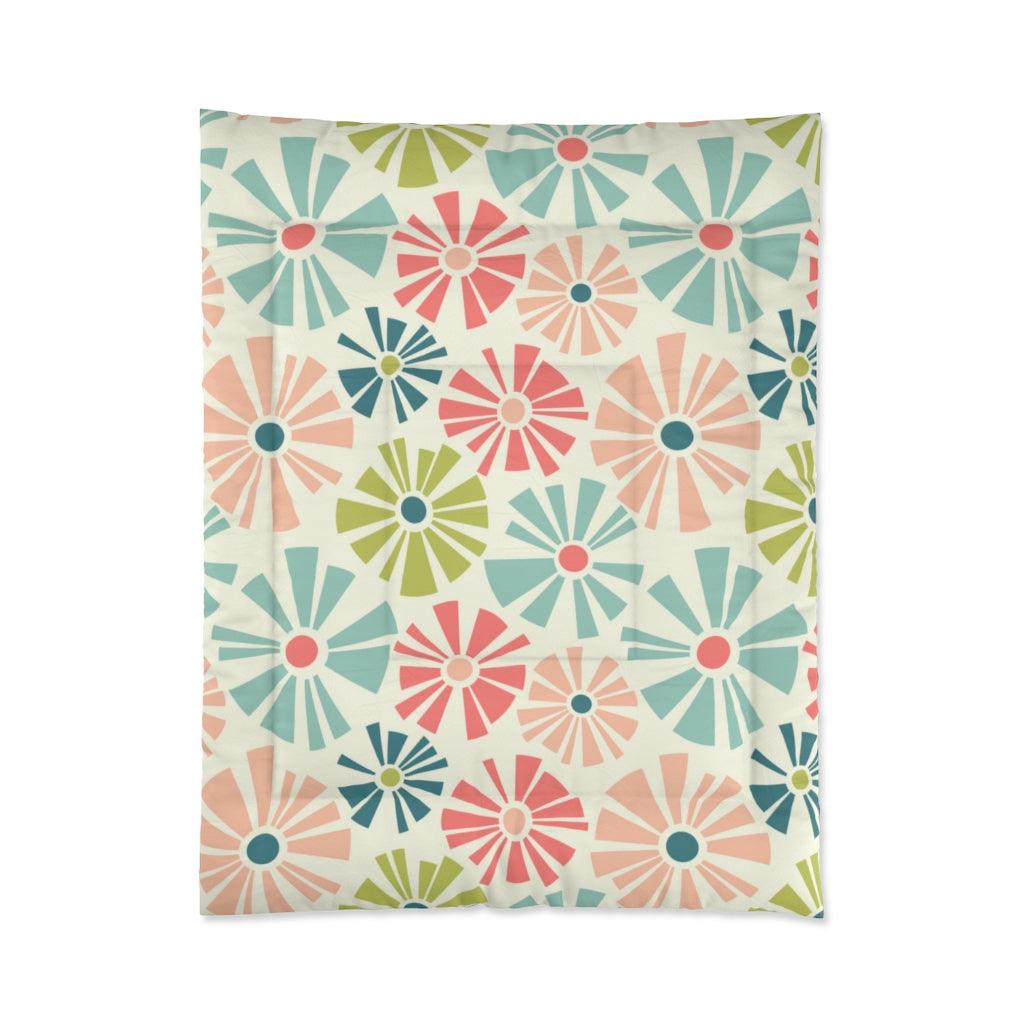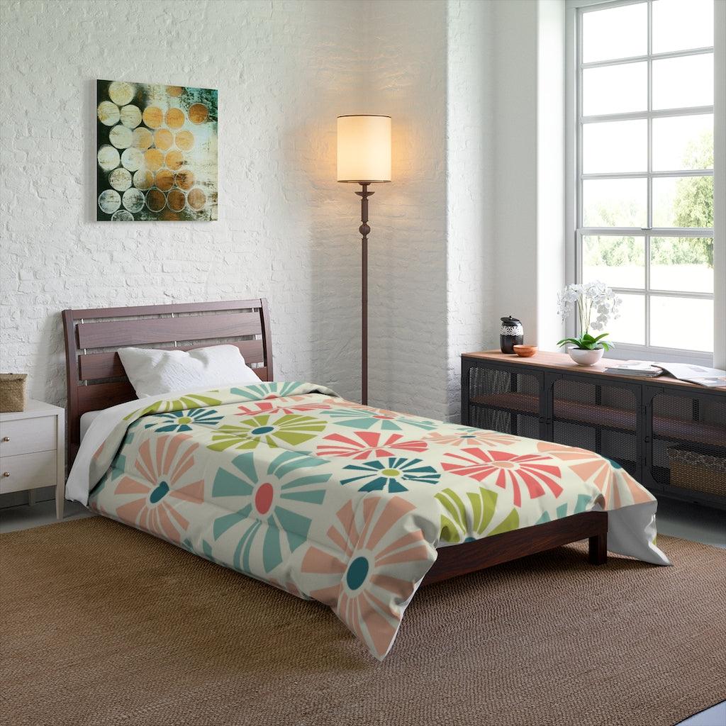 Retro Mod Flowers Boho MCM Multicolor Comforter