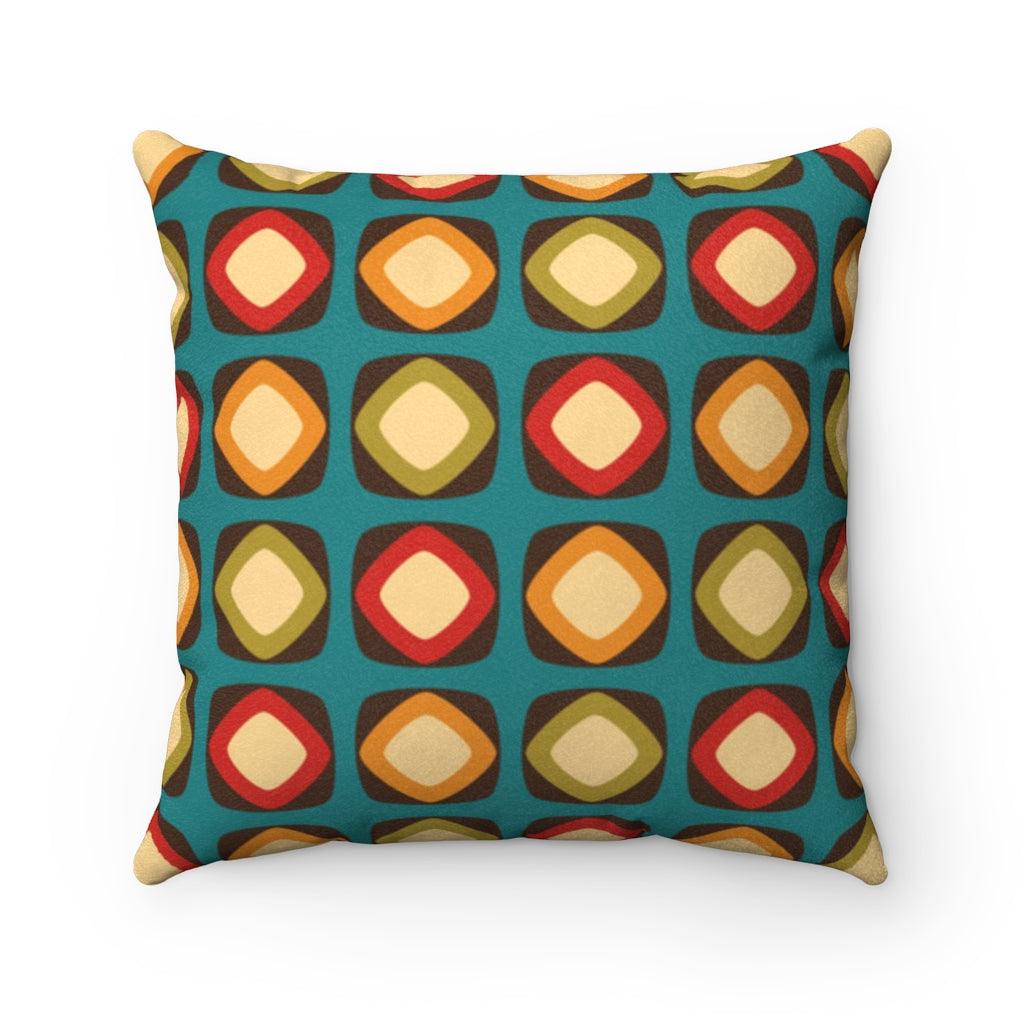 The colorful mod squares of this retro mid century design has this throw pillow bringing retro vibes to your favorite room in the house!
